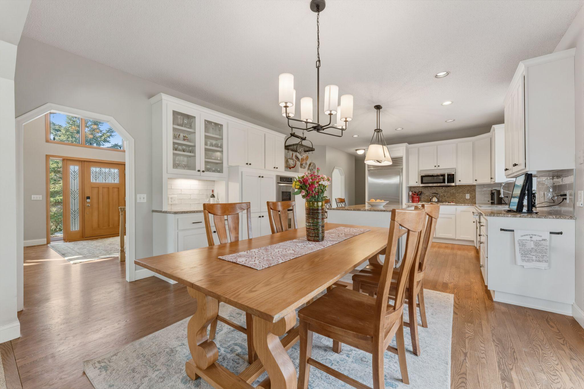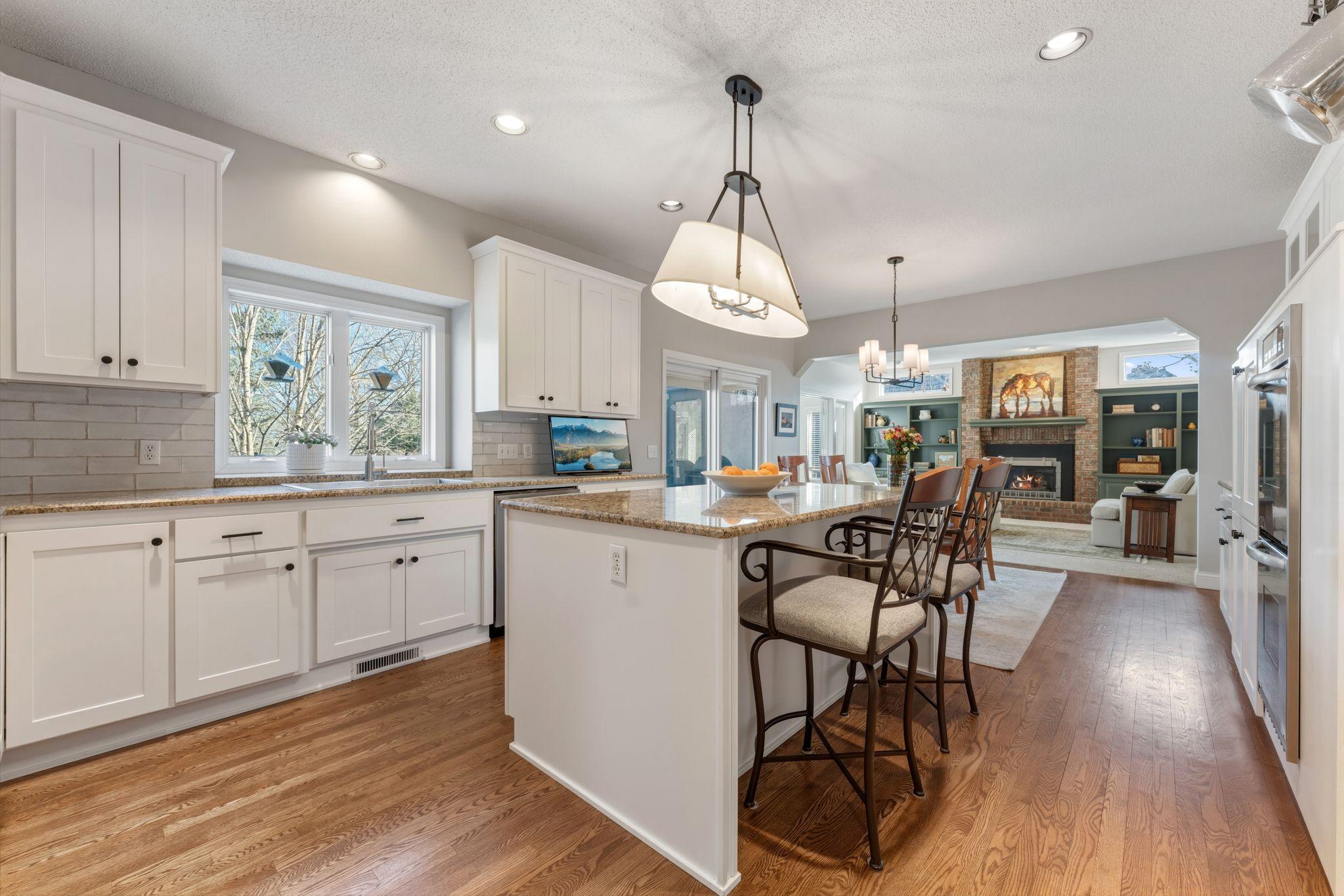 Beautifully maintained and thoughtfully updated, this spacious two-story walkout is tucked away on a quiet cul-de-sac on a large lot near the creek in desirable Eden Prairie. A welcoming two-story foyer sets the tone as you enter, leading to an open and inviting main level designed for both everyday living and entertaining. The living room features a cozy fireplace and flows seamlessly into the kitchen and informal dining area. The kitchen offers a granite center island, updated appliances, and refreshed cabinetry. Multiple living areas on the main floor provide flexibility, including a sunroom filled with natural light, a formal dining room, a den with built-ins, and a private office. A convenient laundry room and half bath complete the main level. Upstairs, you’ll find four bedrooms on one level, including a spacious primary suite with a beautifully remodeled bath. The finished walkout lower level expands the living space with a fifth bedroom, an additional bathroom, and generous media and recreation areas—perfect for relaxing, entertaining, or hosting guests. This home has been exceptionally cared for with numerous improvements, including a newer roof, remodeled kitchen and laundry room, updated primary bath, interior painting, and extensive outdoor upgrades such as paver walkways, driveway accents, and a fire pit area. The large lot and peaceful cul-de-sac setting offer both privacy and space to enjoy the outdoors. A rare combination of space, updates, and location—this home is truly move-in ready. Mortgage savings may be available for buyers of this listing.