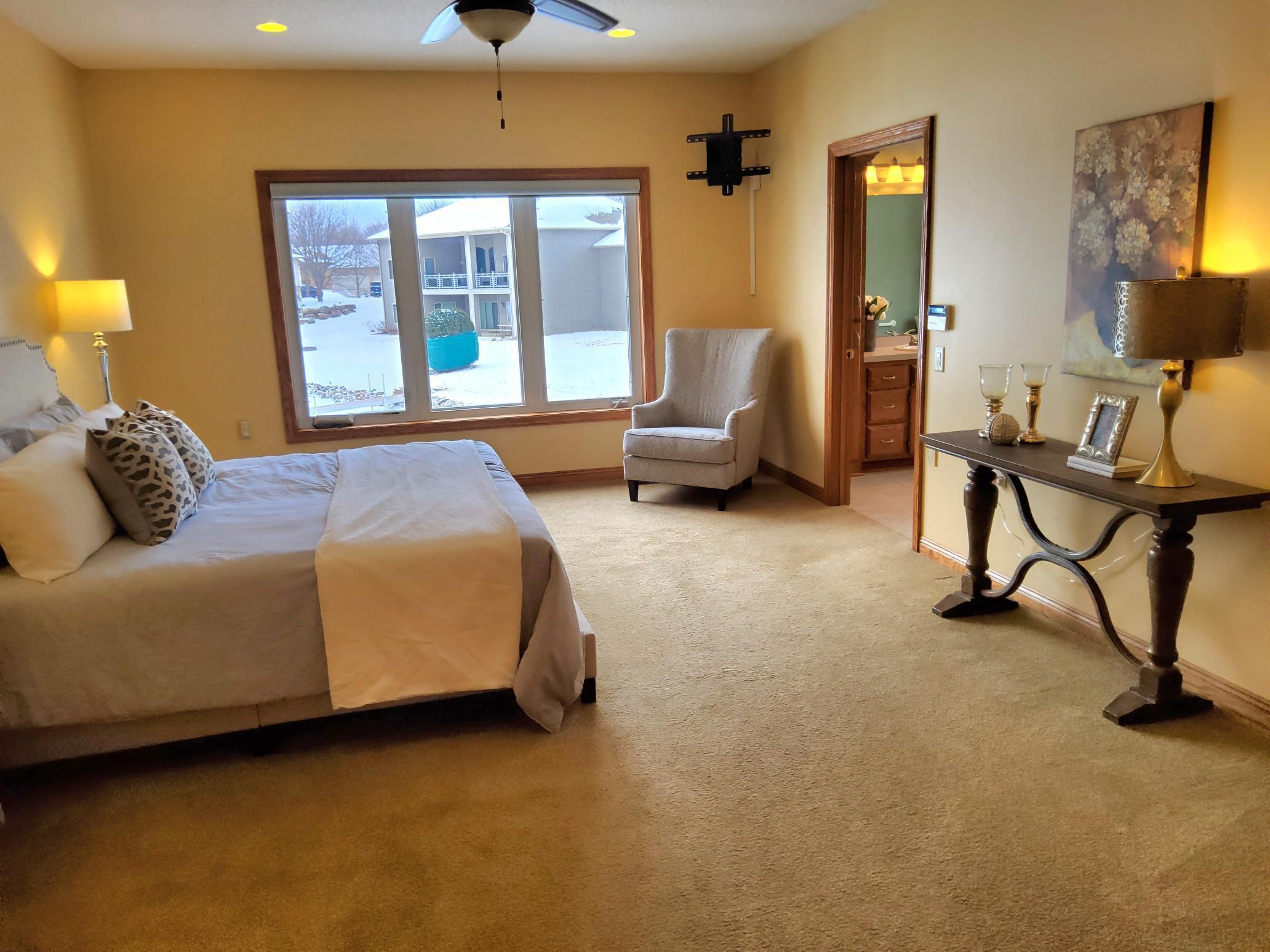 Discover your dream home in the Sanctuary of Blaine! This stunning 4-bedroom( Office is non-conforming bedroom), 3-bathroom residence is fully accessible and thoughtfully designed for comfort and convenience. Upon entering, you'll find a spacious layout featuring a grand foyer that flows into expansive living areas, perfect for both relaxation and entertaining. The gourmet kitchen is equipped with state-of-the-art appliances and a breakfast bar, ideal for culinary enthusiasts, while offering wonderful views of the serene pond. Paddle boats and kayaks can be used on the Pond and docks allowed. Each of the four bedrooms is generously sized, providing ample space for rest and personal retreats. The three bathrooms are designed for functionality and accessibility, ensuring comfort for all guests and family members. Step outside to beautifully landscaped grounds that offer tranquil outdoor living. Enjoy your morning coffee or dine alfresco on the deck or patio, surrounded by nature's beauty. walkout lower level invites Stylish entertaining, featuring a separate theater room complete with a customized sound system for unforgettable movie nights. This remarkable home is equipped with smart-home technology, including discreet speakers to enhance your living experience. Located just minutes from local attractions, restaurants, and a premier golf course, this property combines modern living with a tranquil setting. Quick closing available! Don't miss the chance to make this fully accessible home your Forever Home!