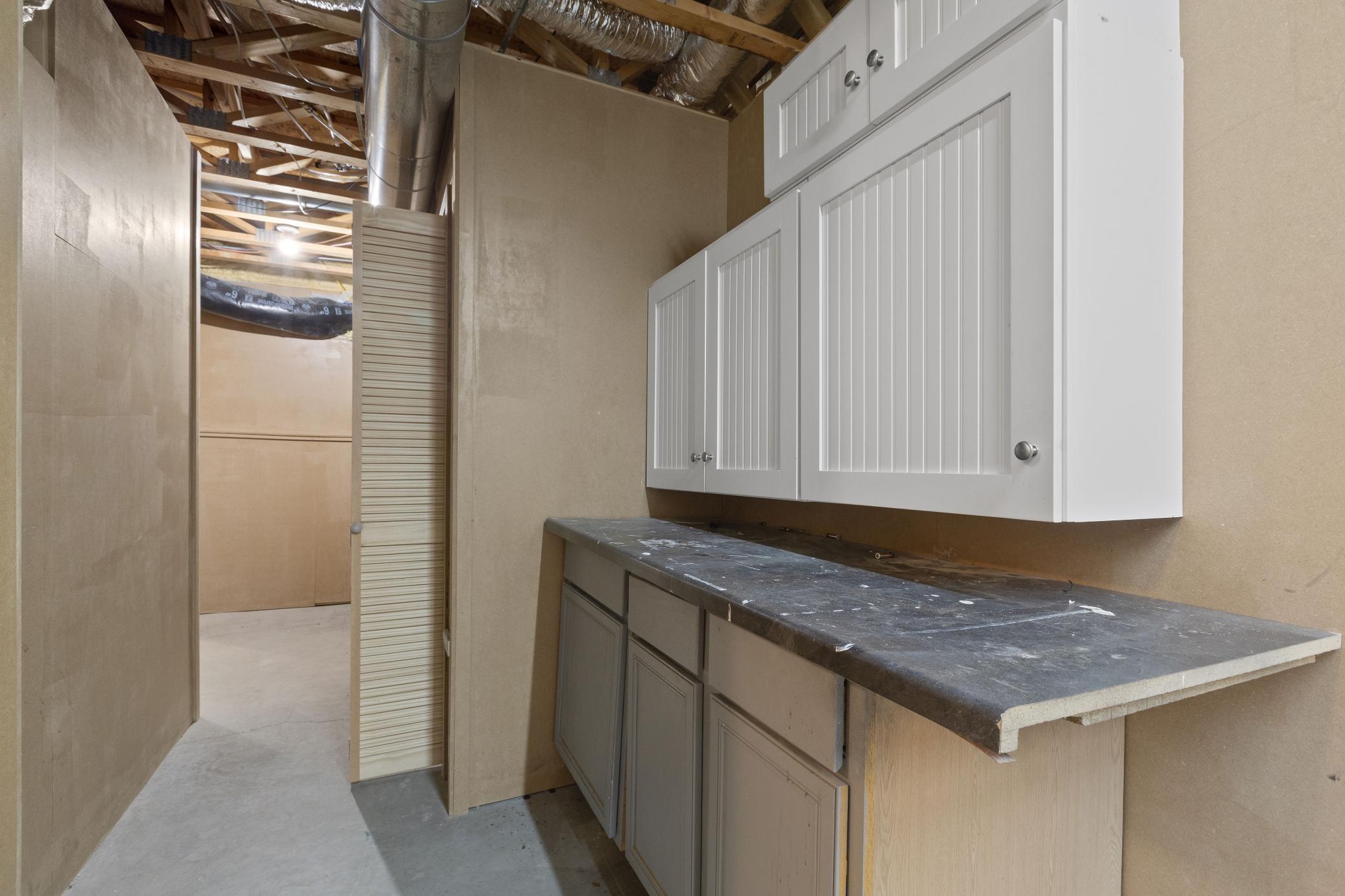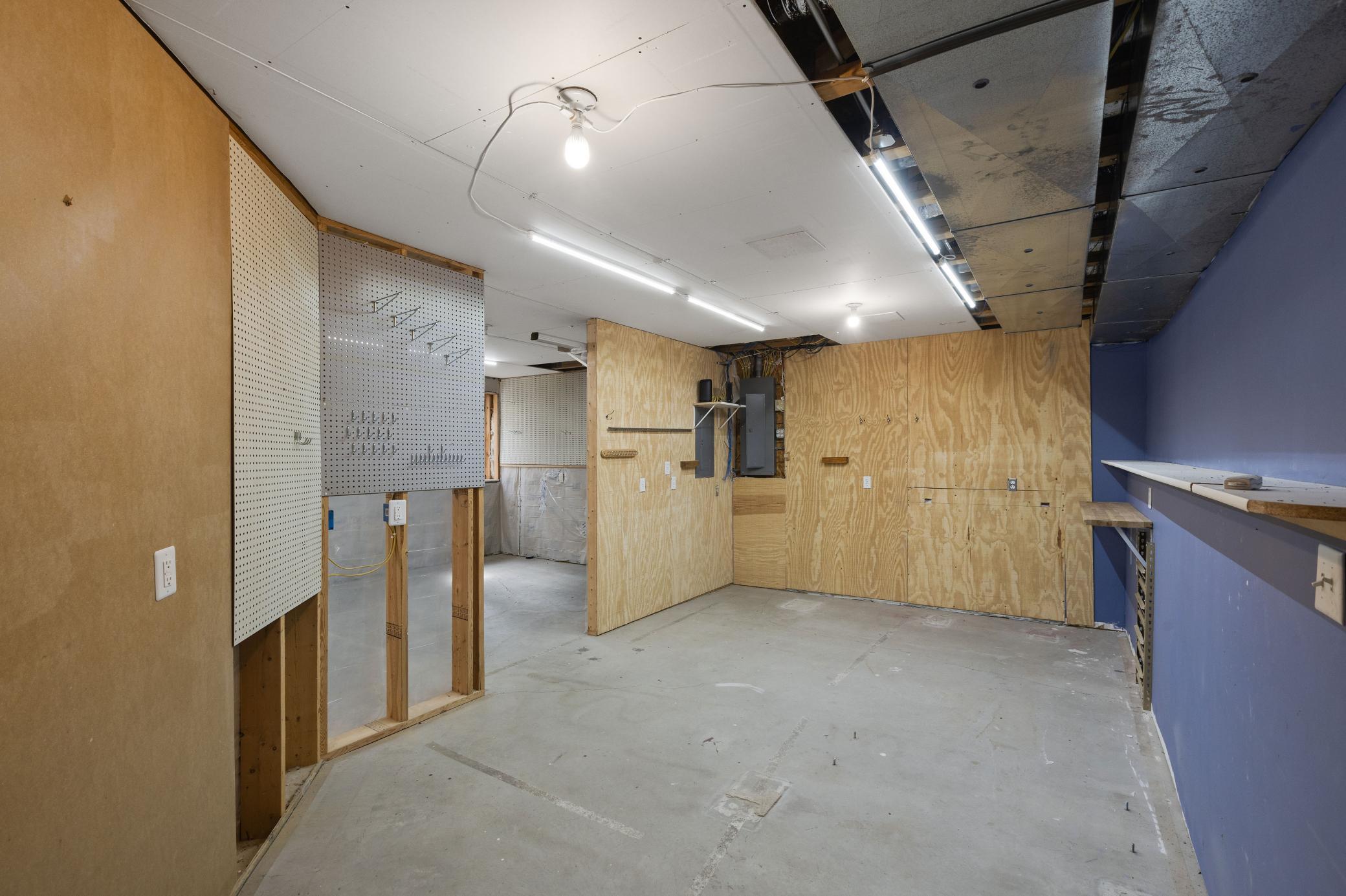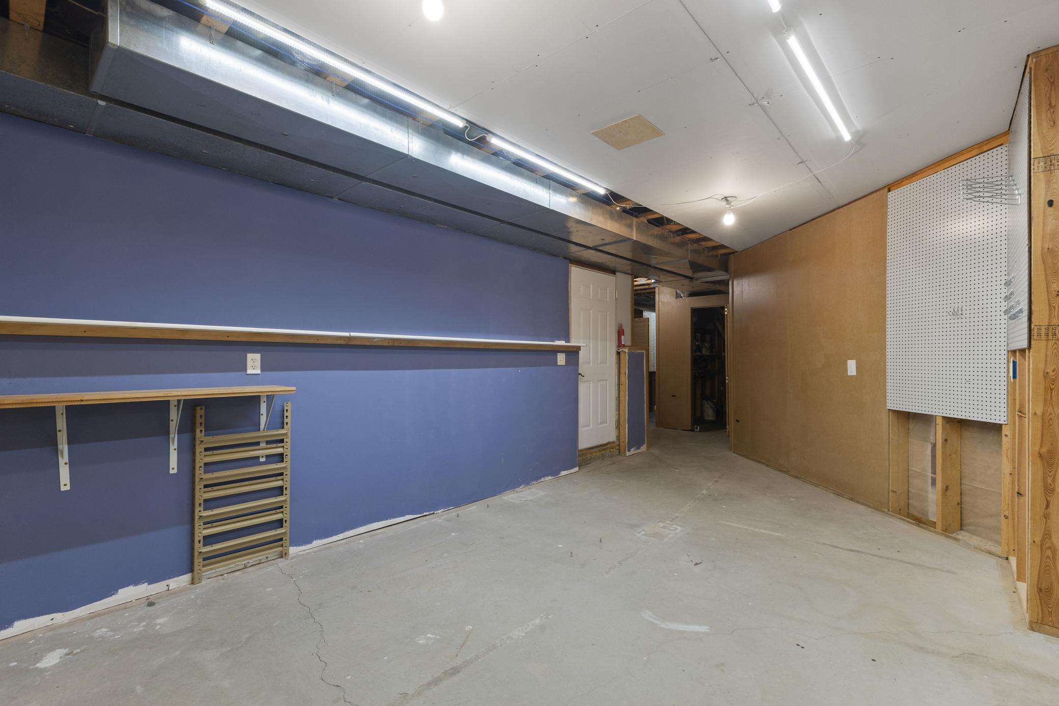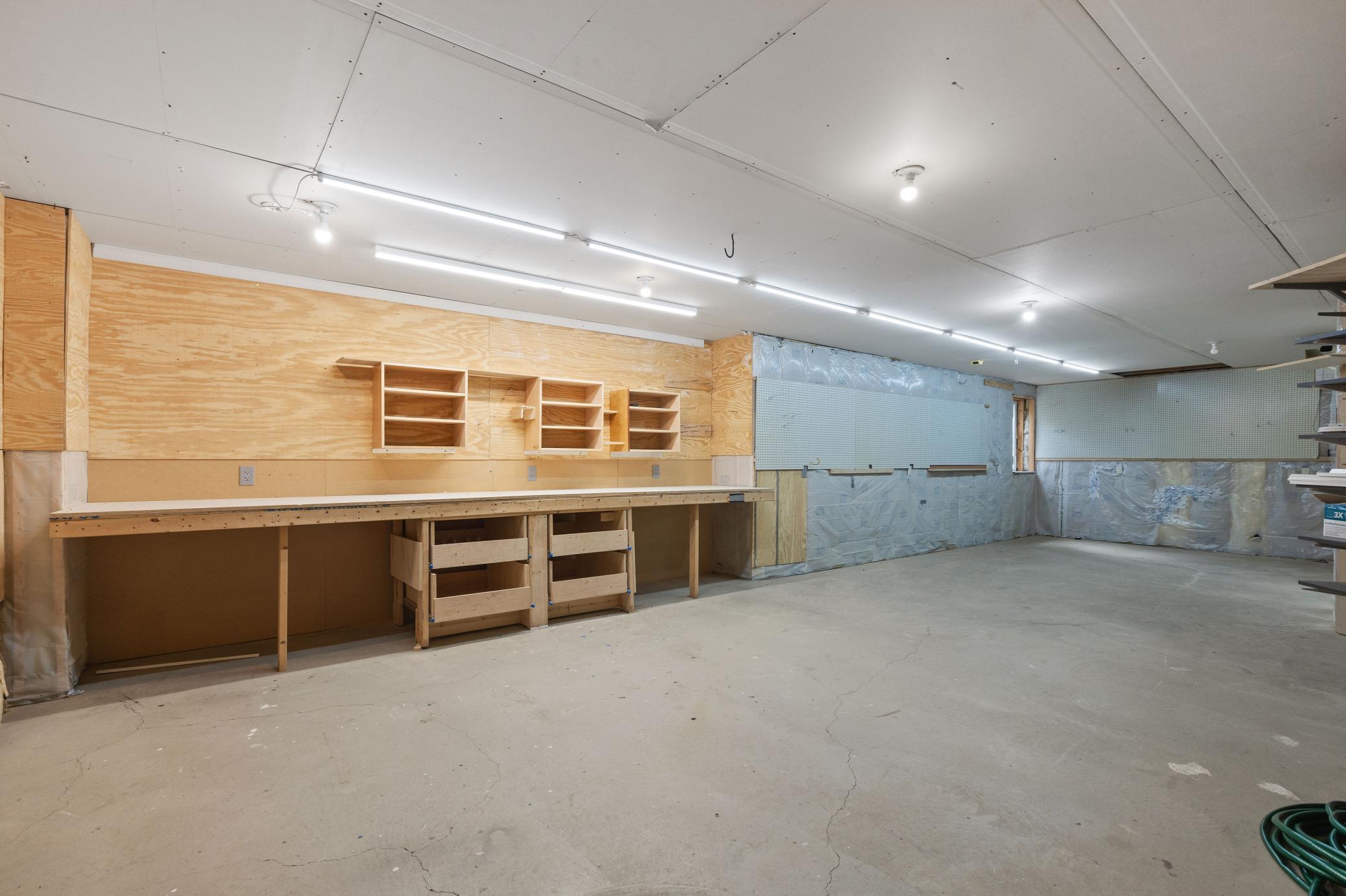 Great workshop in the lower level. Built in work surfaces, storage etc. also has access to garage without going through main floor.