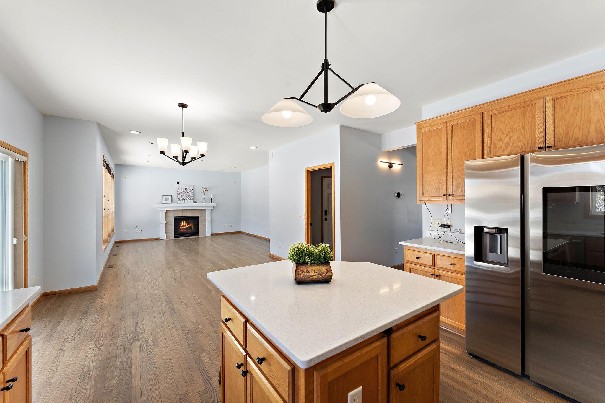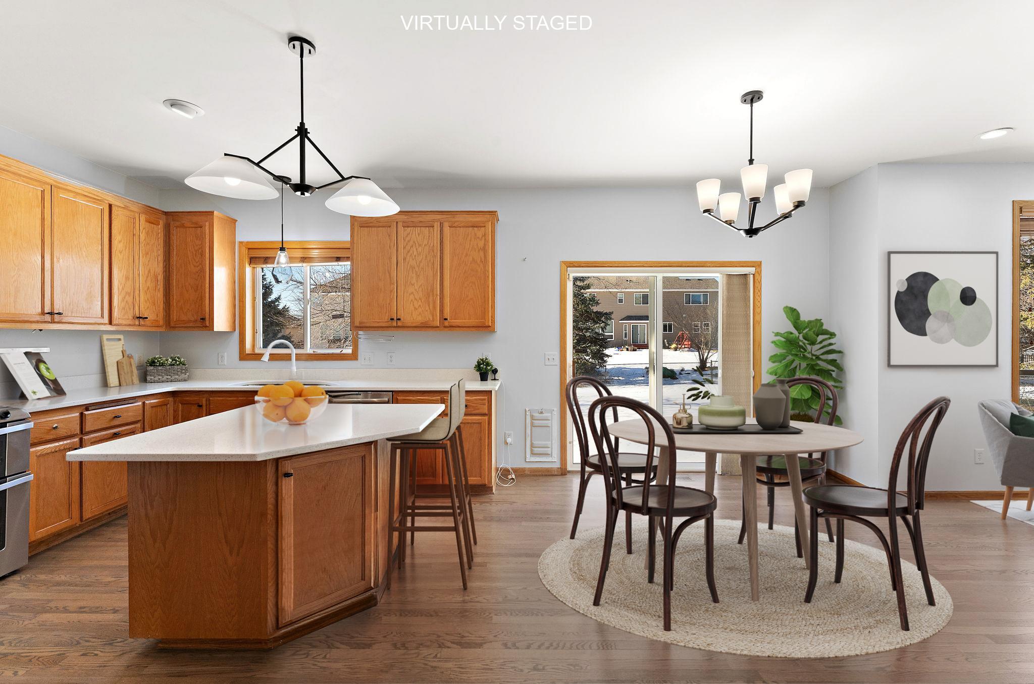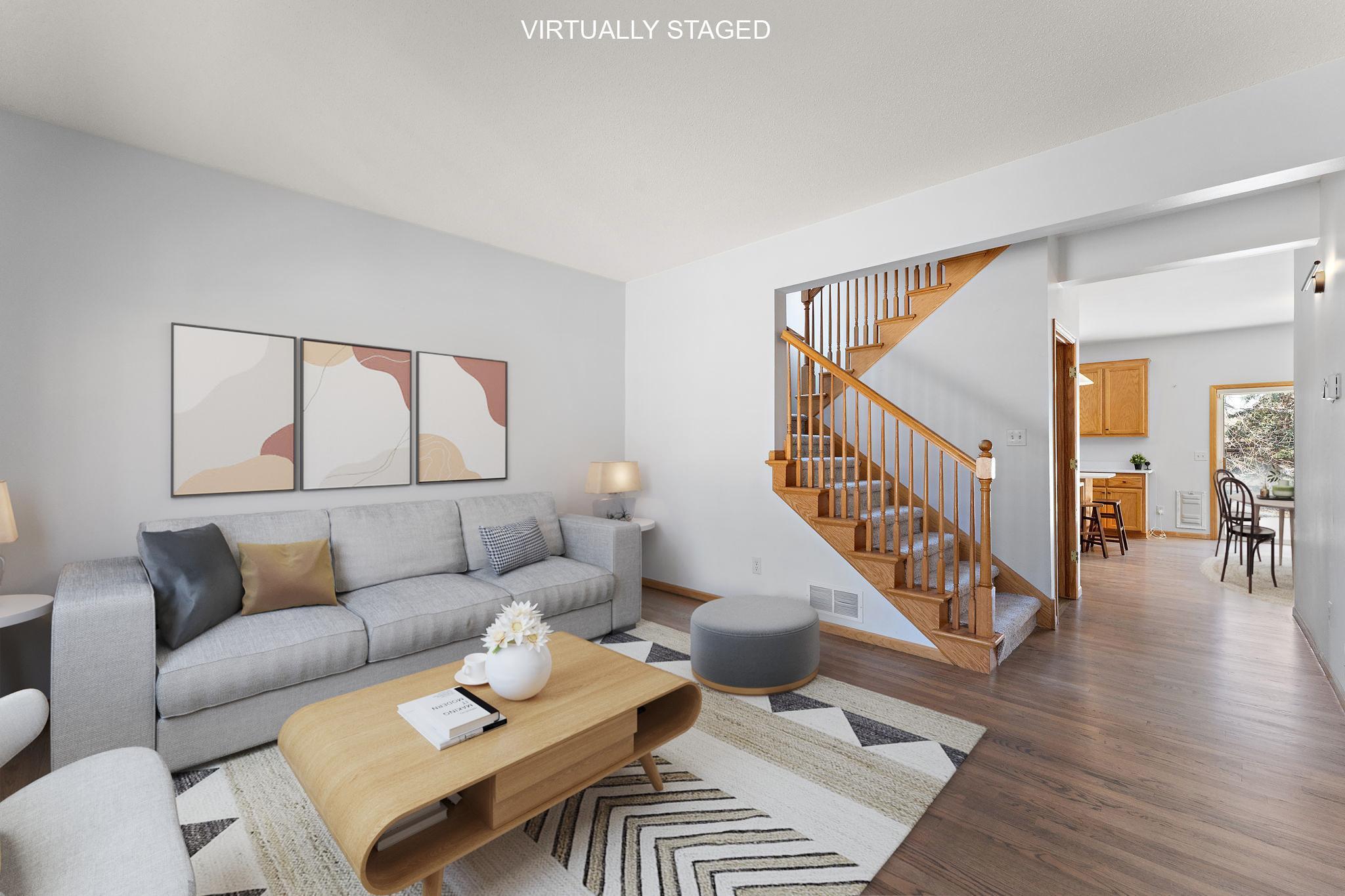 Splendidly updated two-story in prime Eagle Valley! Be instantly impressed by newly refinished hardwood floors throughout the main level and a cozy, statement gas fireplace. The open, sun-filled kitchen features stylish quartz countertops, a generous center island, and flows beautifully for everyday living and entertaining. Abundant natural light pours in from east- and west-facing windows. Upstairs offers four spacious bedrooms, a convenient laundry room, and a romantic owner’s suite complete with a private full bath. The finished lower level is bright and designed for entertaining, featuring a wet bar, a dedicated movie room with ambient lighting, built-in speakers, and premium theater wiring—easily convertible to a fifth bedroom if desired—plenty of flexible spaces throughout, including a basement office and a charming under-stairs kids’ nook. Move-in ready with extensive updates and smart-home features: new carpet (2025), hardwoods added on main level (2023), newer HVAC/AC/furnace (2017) with upgraded motors and two-zone readiness, new siding and roof (2020), updated family room and fireplace mantel, repainted doors, and top-down blinds. Enjoy a smart sprinkler system, smart locks, Ring doorbell and patio camera, smart garage opener, ADT security, Ethernet wiring, auto-sensor bath lighting, humidity-sensing fans, a weatherproof pet door, and a deep 22’ garage with a fantastic mudroom. Located within the East Ridge High School boundary and close to parks, golf, and shopping, this is a rare opportunity to own a high-quality home in one of Woodbury’s most desirable communities.