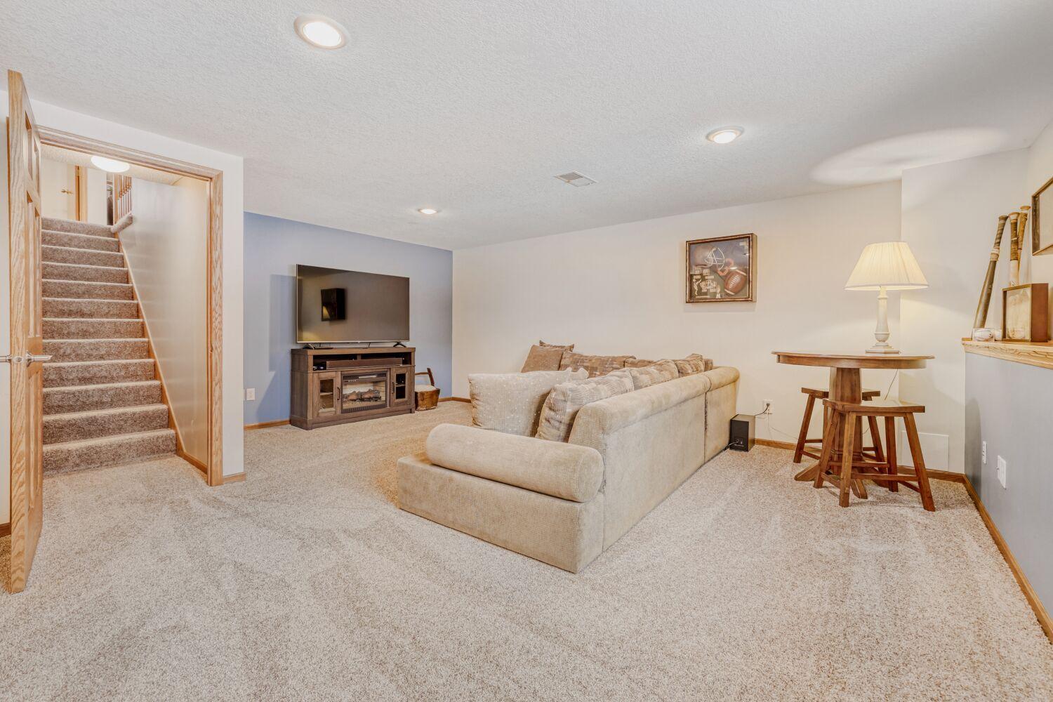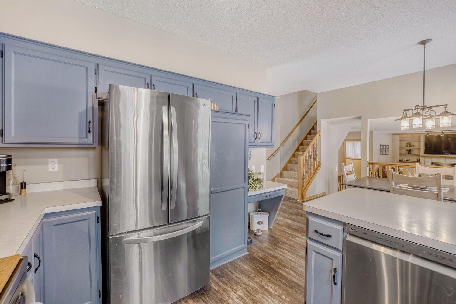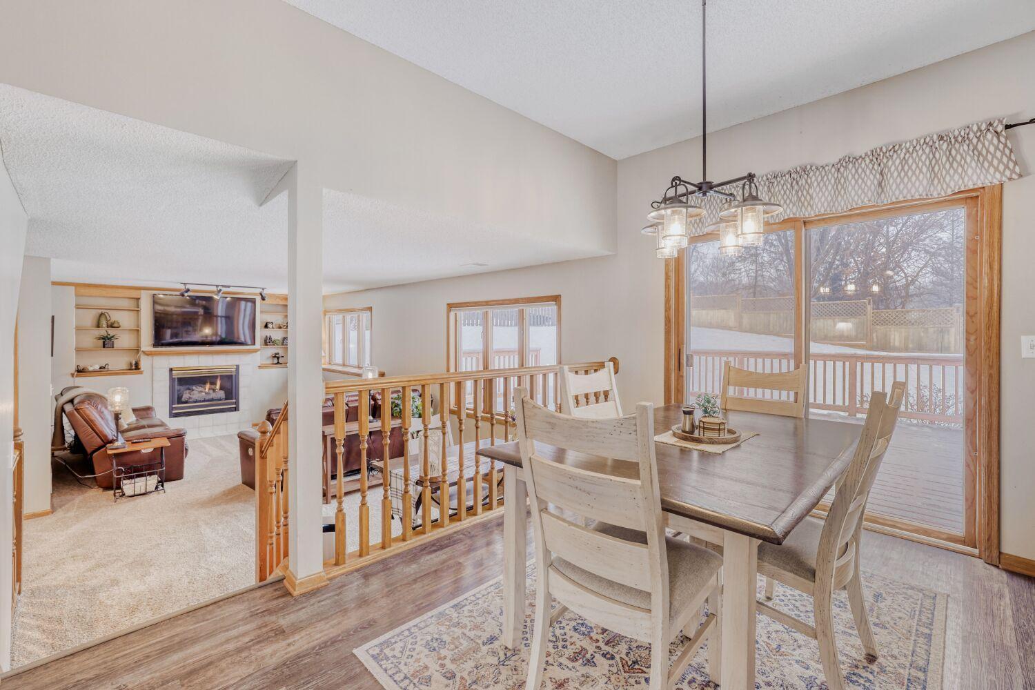 This inviting 4-bedroom, 3-bath home offers tasteful curb appeal with a concrete driveway and a spacious 3-stall garage. Inside, you’ll appreciate the solid 6-panel doors, durable LVP flooring, and cozy neutral finishes throughout. The main level features a bright living room with a large window for natural light, an informal dining area that leads out to a generous 16x14 deck, and an inviting kitchen with stainless steel appliances and a kitchen window. Just a few steps down from the dining room, the cozy family room centers around a charming gas burning fireplace, perfect for relaxing evenings. Upstairs you’ll find three bedrooms, including a primary suite with a walk-in closet and private full bath, plus a shared full bath for added convenience. The lower level includes a comfortable amusement room and an additional ¾ bath, while main level laundry adds everyday ease. Recent updates include: new furnace, AC, new cement driveway and steps, new deck, new LVP on main level floors, new carpet on all levels, and new appliances! Enjoy the backyard with a privacy fence and a great location close to Royal Valley Park’s wetlands and wooded trails, plus easy access to downtown Elk River.