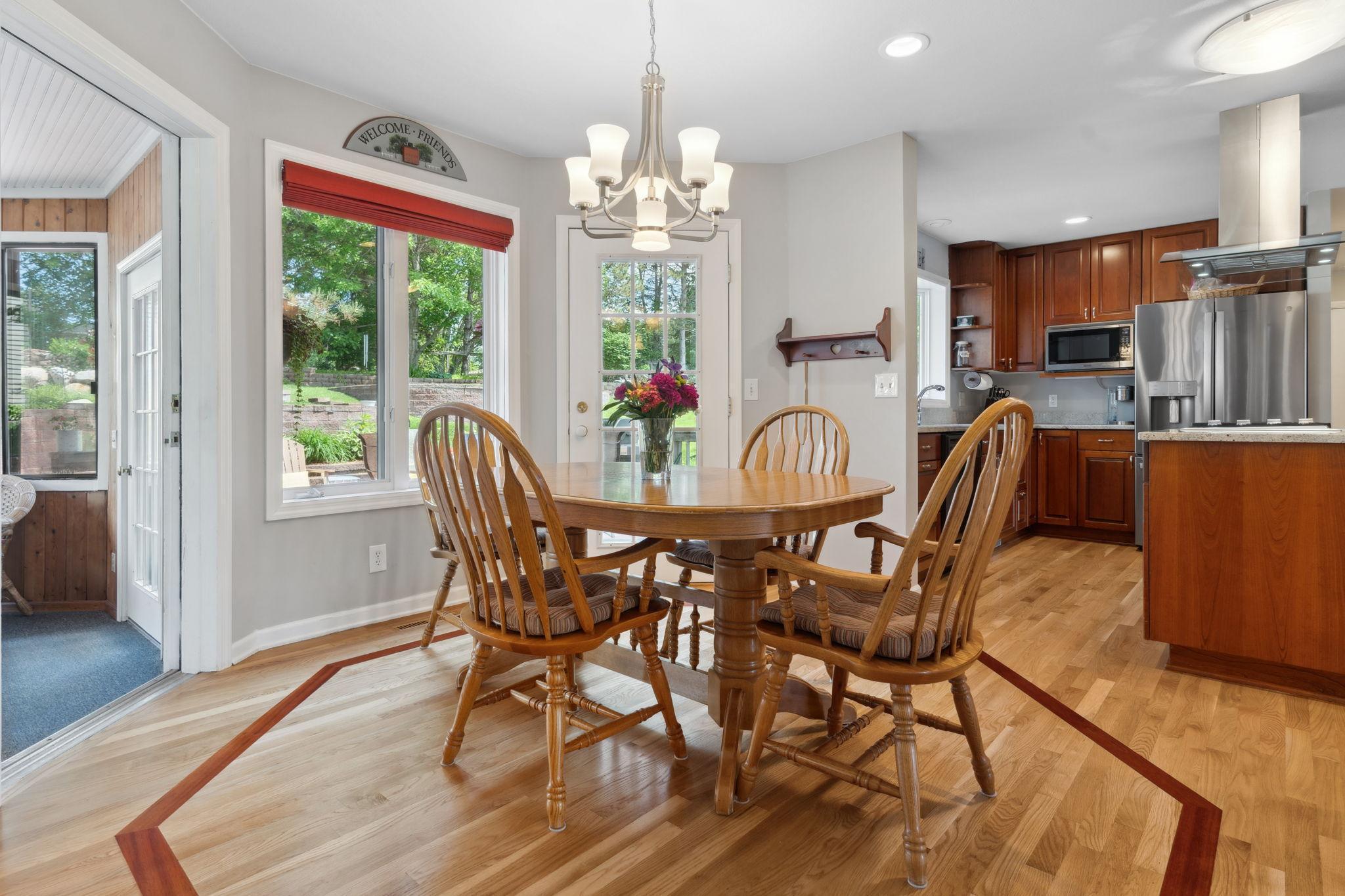 Nestled in the River Bluff Estates neighborhood, this charming cul-de-sac residence has been meticulously maintained by its devoted owner agent for over three decades. This home boasts upgrades of; SS Kitchen appliances, Kobe vent hood over a Wolf gas cooktop, epoxy flooring in the garage, and remodeled bathrooms, granite counter tops, heated primary bathroom floor. Natural light floods through windows with fresh paint and hard wood floors, real hard wood doors, plush carpeting. Escape to the three-season sunroom, or enjoy a large deck for entertaining. Outside, a meticulously manicured yard offers a picturesque backdrop, flower gardens, vegetable gardens waiting to share the harvest for outdoor enjoyment. Embrace the vibrant community spirit of River Bluff Estates amidst top-tier schools and convenient amenities. With grocery stores, dining options, and recreational facilities just moments away, every convenience is within reach. The HOA docs prohibit short term rentals and some long term rentals too. See HOA docs for more details. A few exclusions: The hanging Stained glass window in the foyer and the small Tree to the right of the front yard will be removed prior to closing.