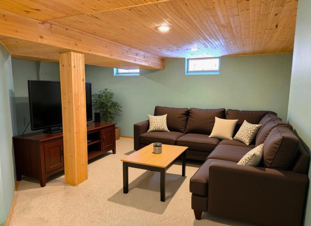 basement: mostly finished for additional living space with large closets for extra storage. older carpet but recently cleaned.