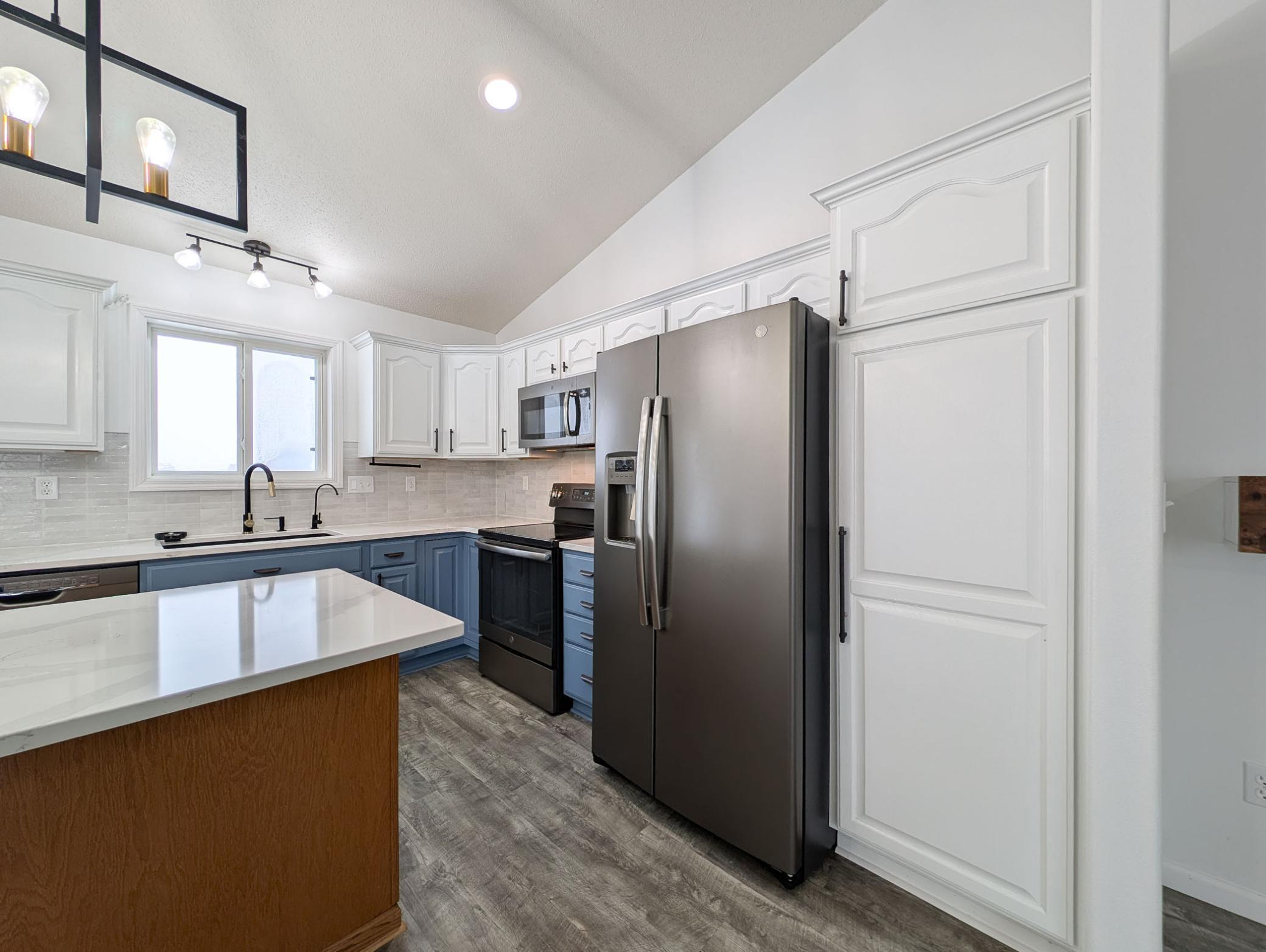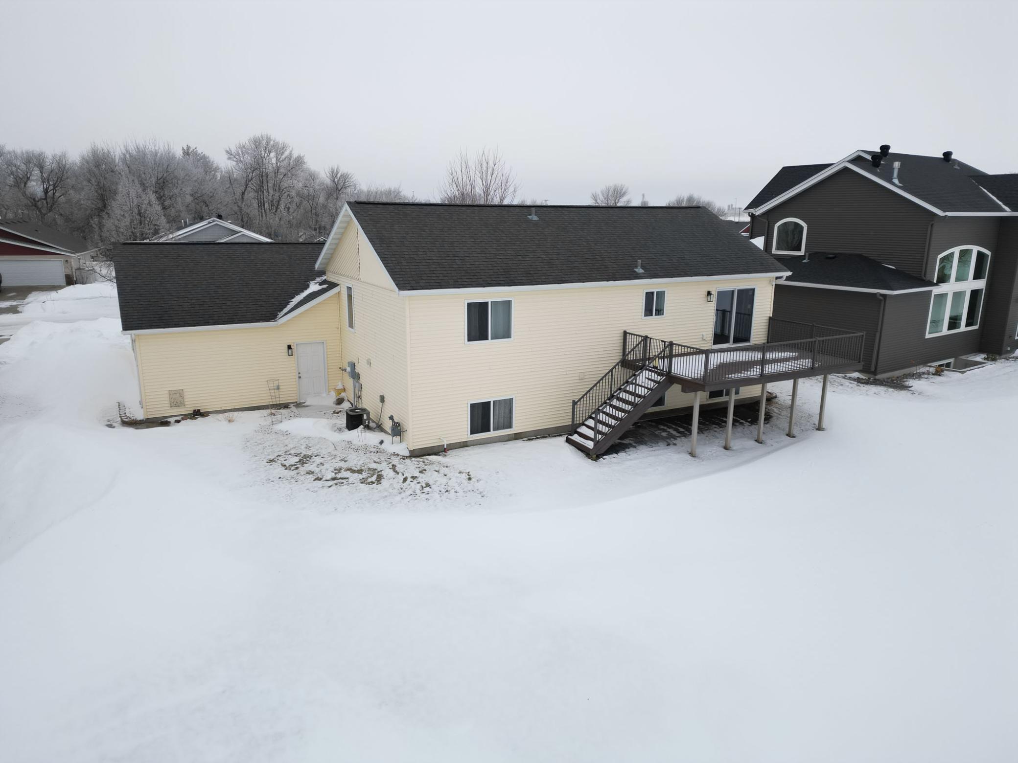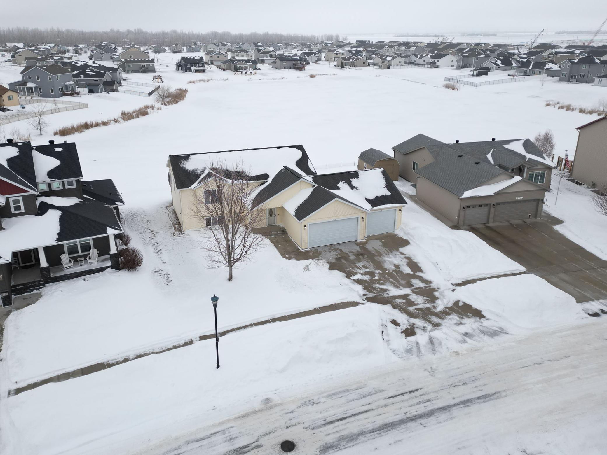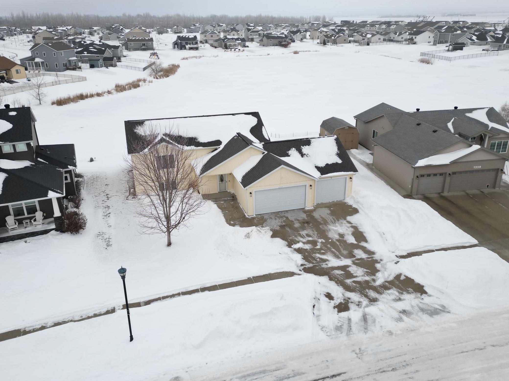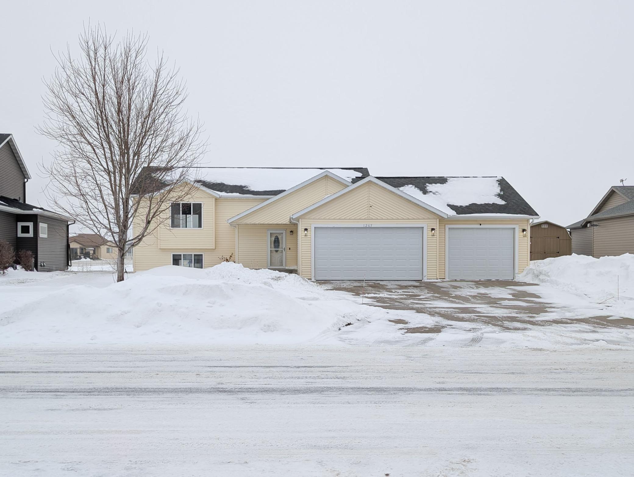 Enjoy living in a home situated on a LARGE LOT of 15,000+ sq ft with mature trees, a huge well-maintained yard with underground SPRINKLER system supplied by the pond water, and peaceful POND views—a rare find in the FM area. A spacious foyer leads upstairs to a bright, open floor plan featuring 2 bedrooms, a large LIVING ROOM that flows into the KITCHEN and DINING AREA. The kitchen features an island, stone surfaces throughout, top-quality appliances, and a stylish backsplash. The PRIMARY SUITE is a true retreat, offering dual closets and a Hollywood-style bathroom with a dual-sink vanity and a large WALK-IN TILE SHOWER WITH GLASS DOORS. The dining area opens through a patio door to a 12 X 20 MAINTENANCE-FREE DECK overlooking the POND. Views can be enjoyed from every level, perfect for quiet mornings, gatherings with friends, or evening sunsets. Downstairs you will find a large additional bedroom, a full bathroom, and a spacious FAMILY ROOM provide plenty of space for family, guests, or hobbies. You can use some space from huge family room to make 4th bedroom. There is also a storage room, generous utility area, and laundry with WASHER & DRYER INCLUDED making daily living easy and convenient. This well-kept home offers about 2,500 sq ft of living space, 3 bedrooms, 2 bathrooms, and an oversized 3-STALL OVERSIZED GARAGE with roughly 925 sq ft of finished space, EPOXY FLOORS, and gas plumbing—a rare feature in this area. Beautiful hard-surface flooring and gray-tone carpet complement the top-quality finishes. Priced at $370,000 with low specials and taxes, this home delivers exceptional value. Homes with LARGE LOTS, POND views, and this level of space and quality are hard to find—MAKE THIS YOUR HOME TODAY!