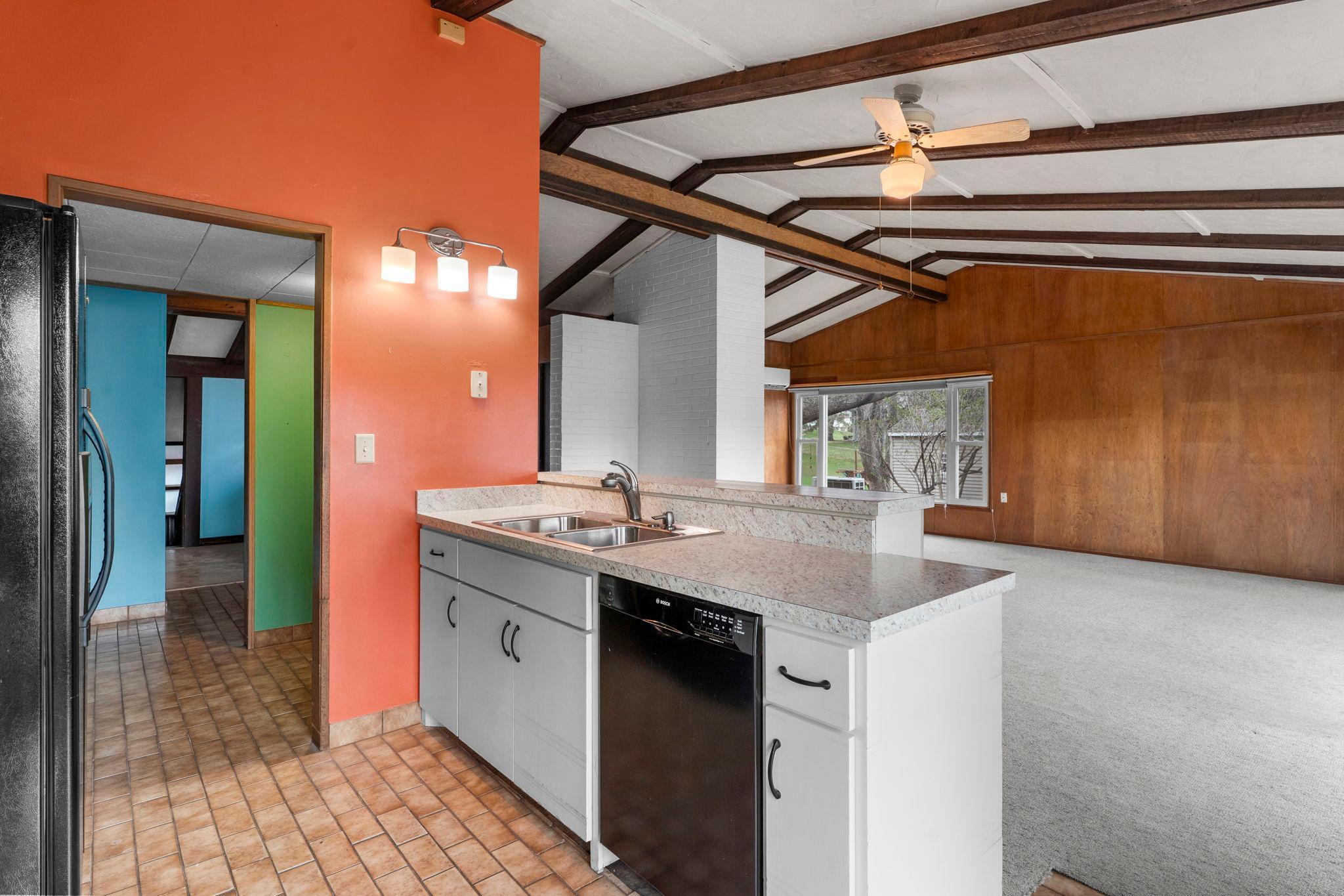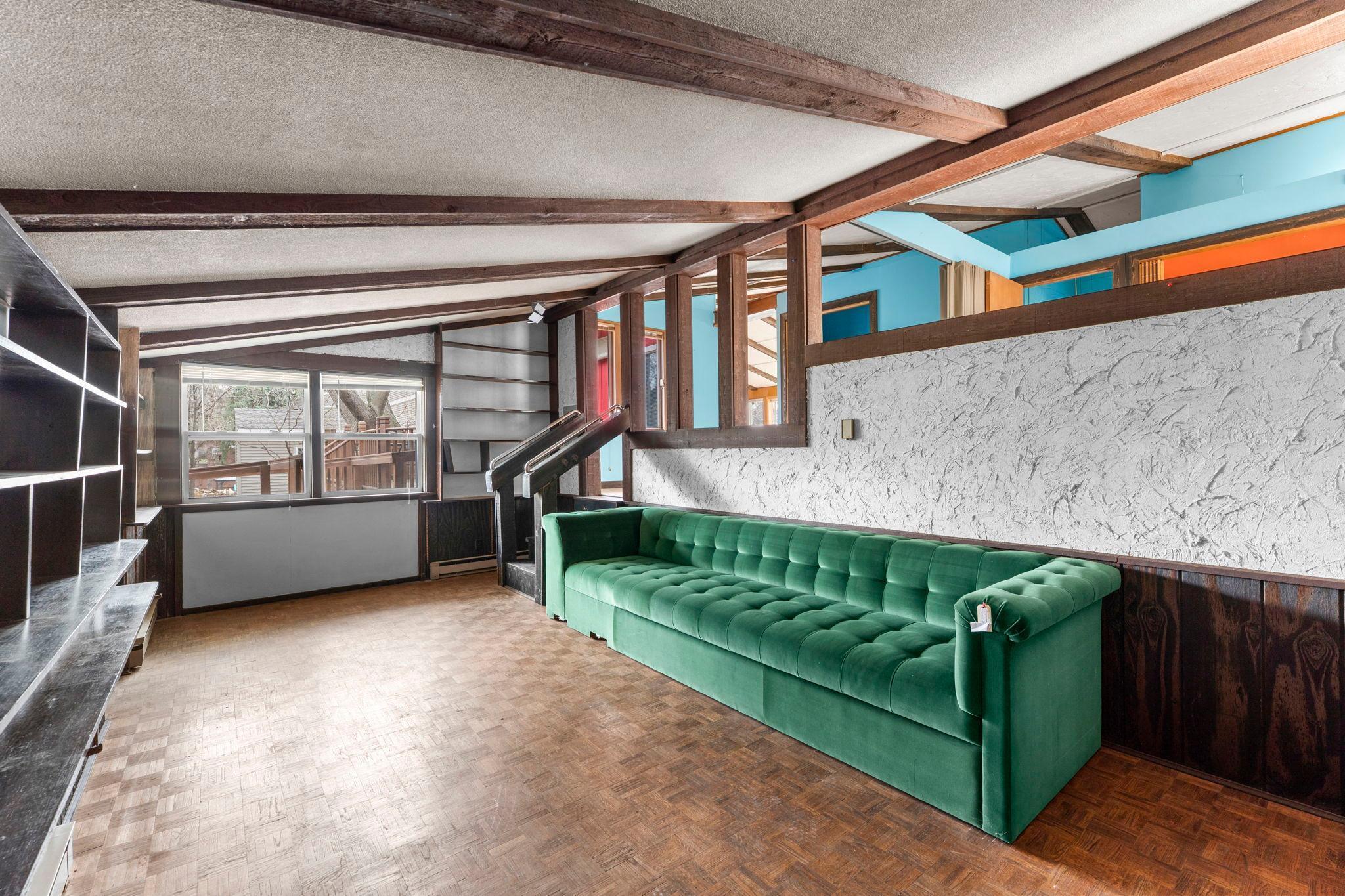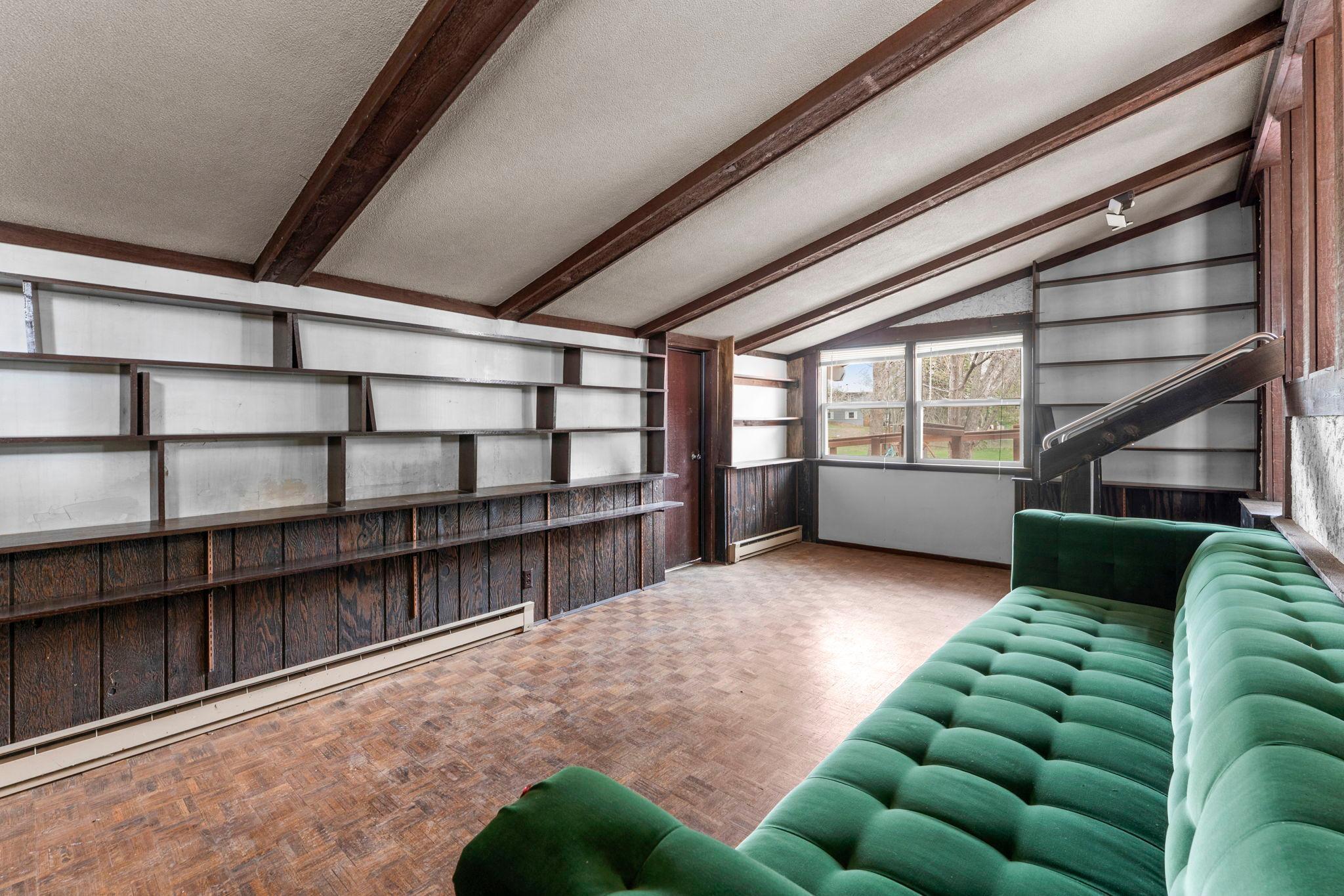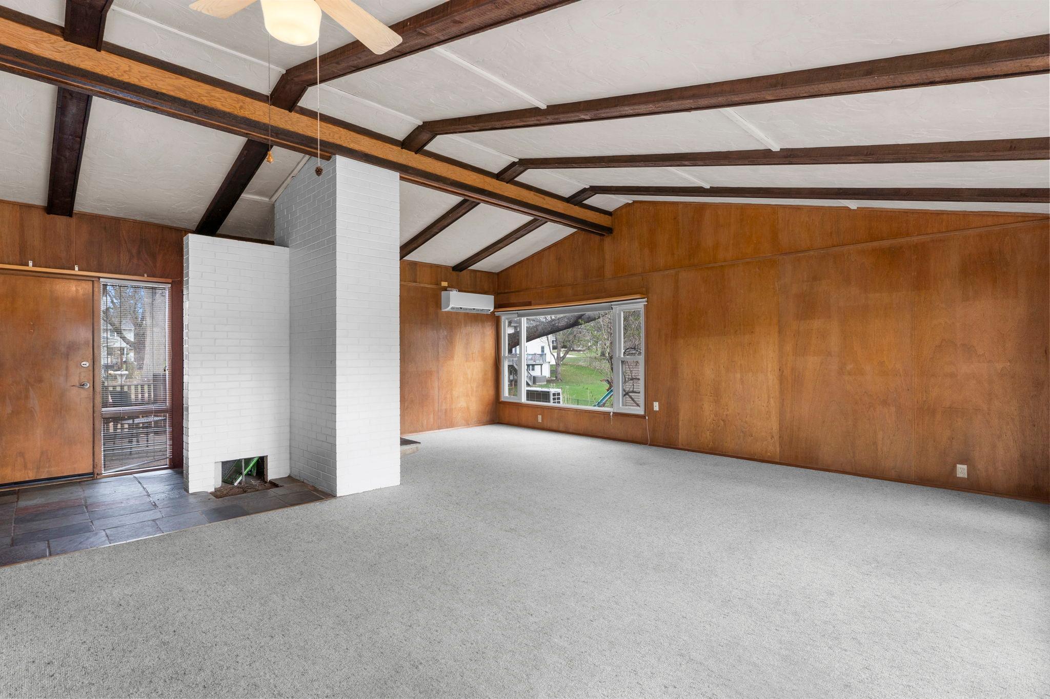 Public Remarks: Easy, one-level living in a convenient West Bloomington location! This thoughtfully designed slab-on-grade home offers all living facilities on the main level, including a primary bedroom and washer/dryer hookup just off the kitchen for everyday ease. An accessible ramp enhances functionality and provides comfortable entry. Inside, you’ll find a welcoming and practical layout highlighted by soaring vaulted ceilings with warm wood beams. Expansive living spaces are filled with natural light from large windows, while a cozy wood-burning fireplace with floor-to-ceiling brick creates a striking focal point. This home offers a great opportunity to bring your own ideas and cosmetic updates to truly make it your own. Whether you're a first-time buyer looking to build equity or seeking a sought-after Bloomington location to downsize and simplify, this property delivers flexibility and value. Enjoy the outdoors with a beautiful yard surrounded by mature trees, an oversized two-car garage, and a spacious deck.