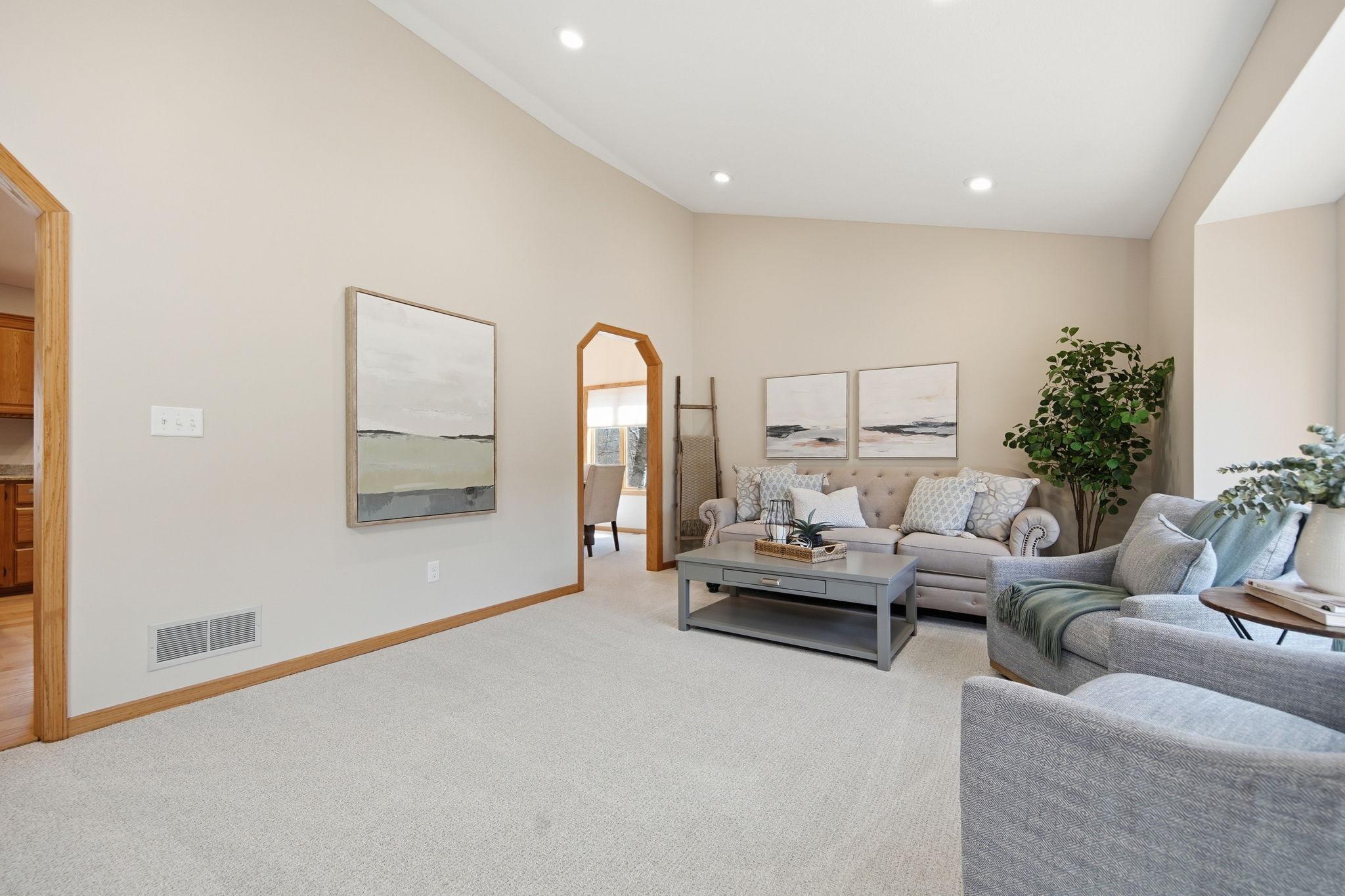 The main floor entry is inviting and spacious and opens to your main floor living spaces. The main floor is a perfect blend of function and flow and features a large, vaulted living room, both formal and informal dining spaces, family room with a brick surround wood-burning fireplace and walks out to your private deck & 3 season porch. The views and natural setting of the 3-season porch are tranquil and inviting.
