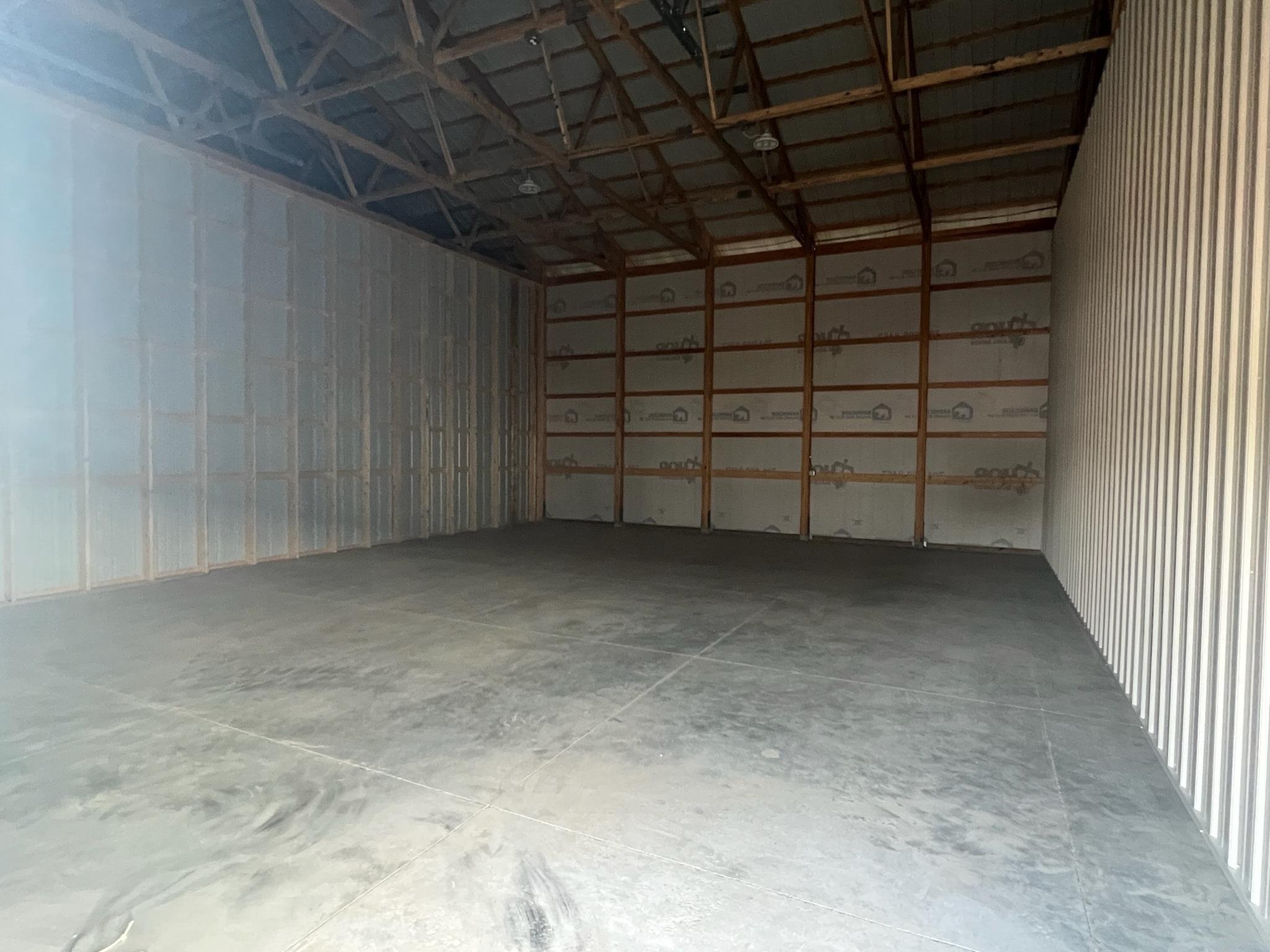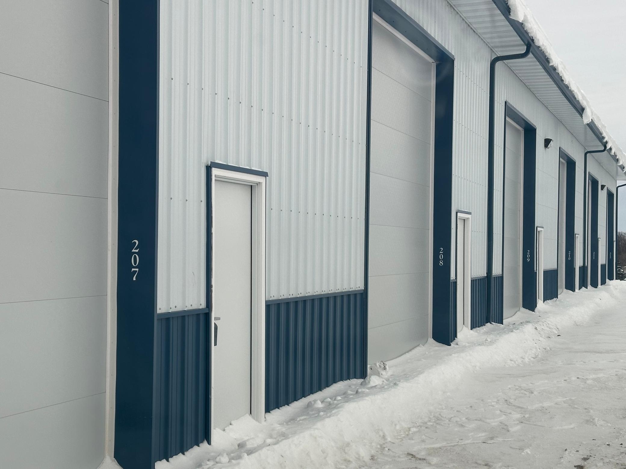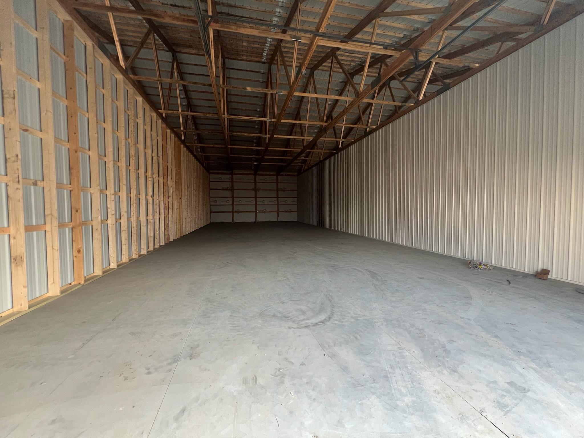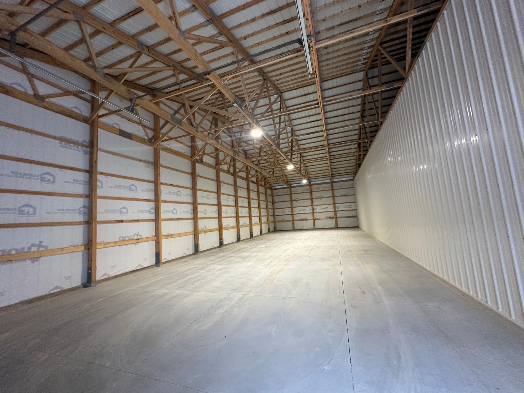 Introducing a brand-new 2024 premium storage unit located in a professionally maintained association complex. Built in August 2024, this post-frame structure offers exceptional durability, oversized clearance, and high-quality materials throughout make it ideal for boats, recreational equipment, contractor storage, vehicles, or shared multi-family personal use. Constructed with pre-engineered double wood trusses (7'6" spacing), 16' sidewalls, and an 81' x 180' x 18' 4" building envelope, the facility is engineered for strength, longevity, and functionality. The unit features wood-frame construction, a metal roof, steel siding, and a concrete slab foundation with footings, providing a stable, low-maintenance solution for long-term storage needs. All have rough-in wiring for electric overhead garage doors. Exterior finishes include Classic Rib 26-gauge steel in Dark Blue and Brite White, all backed by a 40-year paint warranty. Each unit includes 14' x 16' insulated overhead doors (Midland 2" Energy Saver Series) with torsion springs, PVC weather stripping, radius track and inside slide locks. Gutters and downspouts on both sides help maintain proper drainage. Interior demising walls feature non-insulated 2x6 framing with liner steel on one side for added rigidity and separation. All utilities are managed as common elements of the development, ensuring simple ownership with no separate utility billing. The grounds and roads are maintained by the association, with annual HOA dues of $850 covering snow removal, site upkeep, and exterior maintenance. Unit number to be assigned (within units 207–212); updated legal descriptions will be provided upon assignment. This newly completed facility is an outstanding option for lake-area users, small business owners, or investors seeking a stable, low-maintenance asset in a growing area.