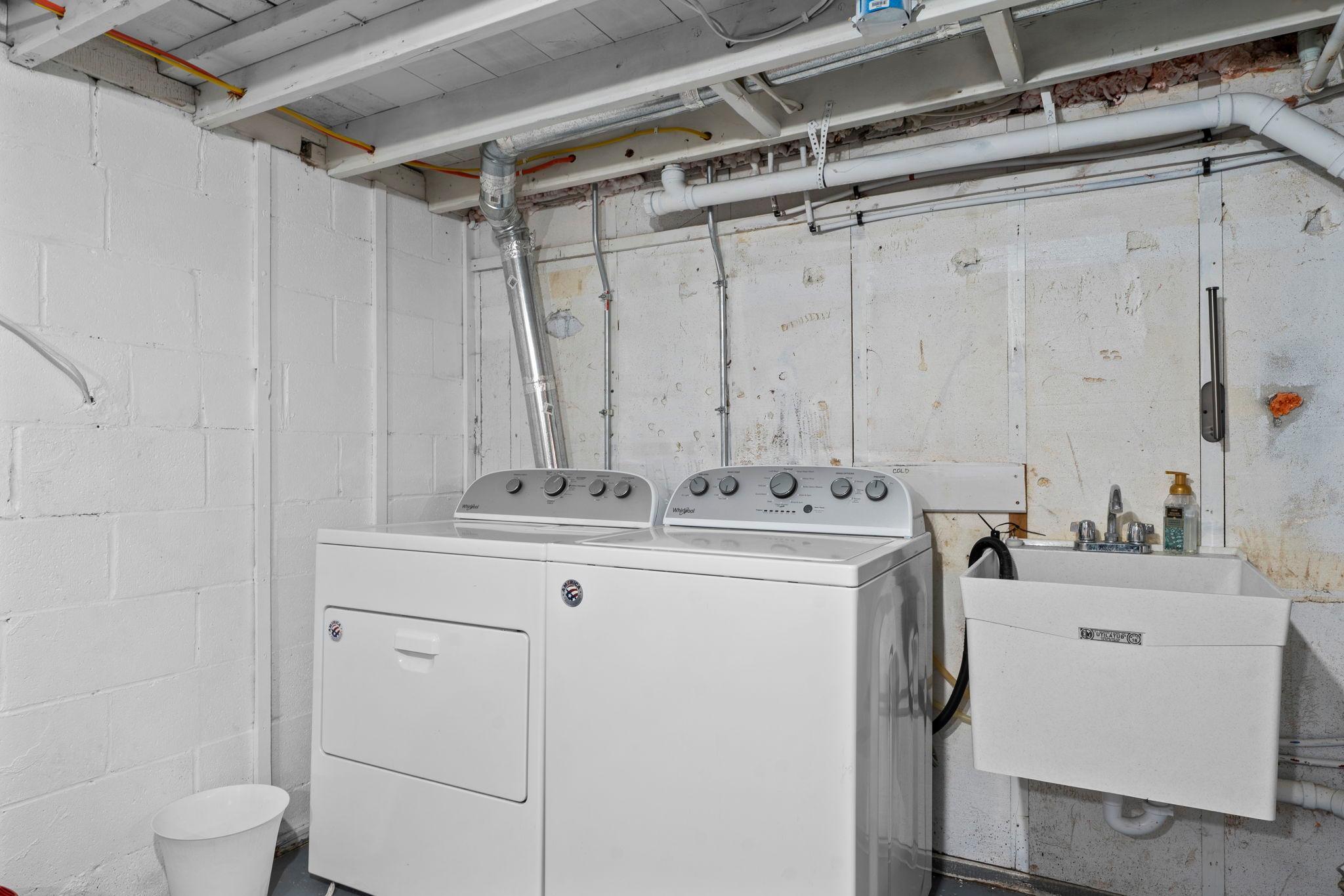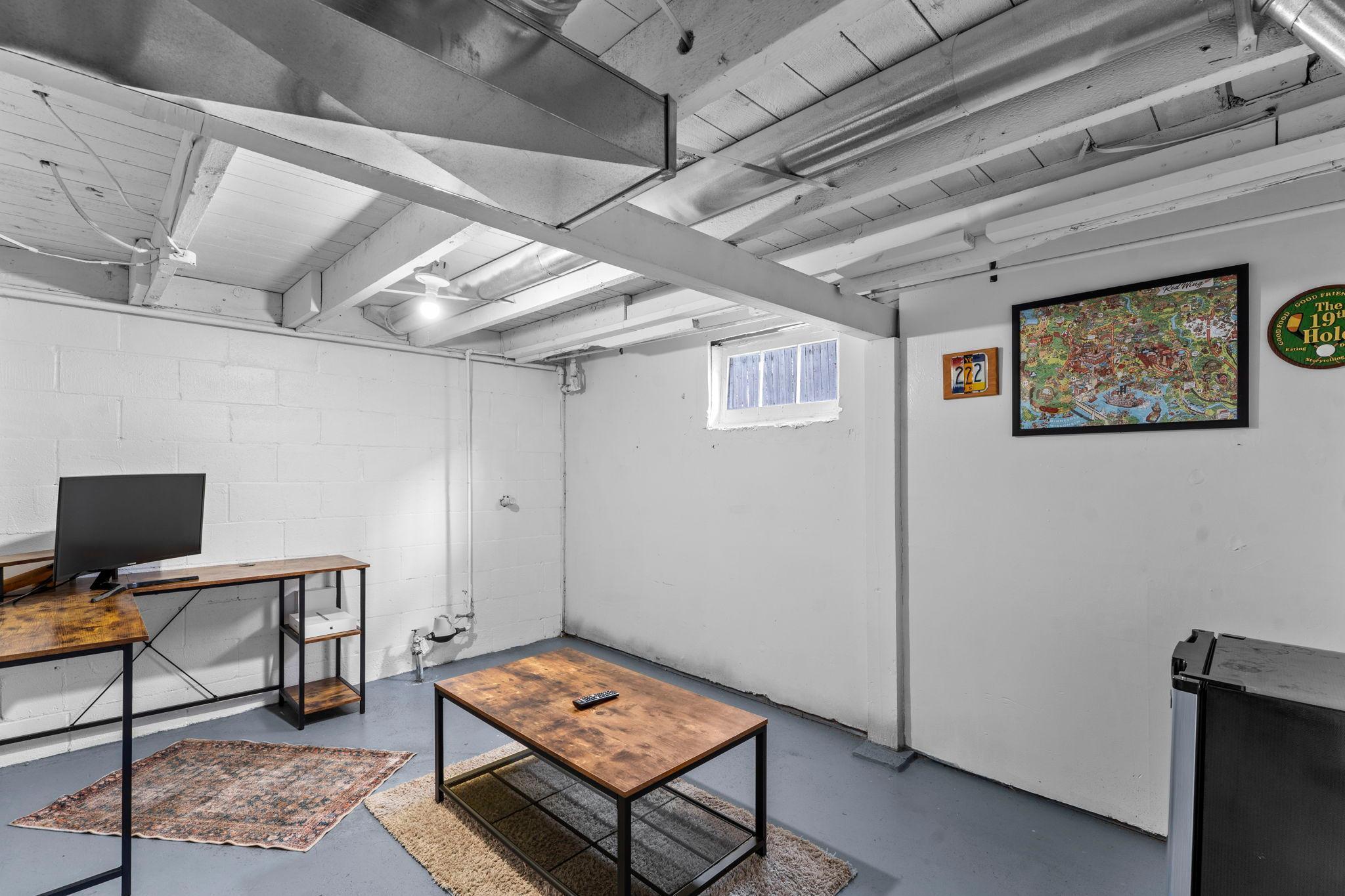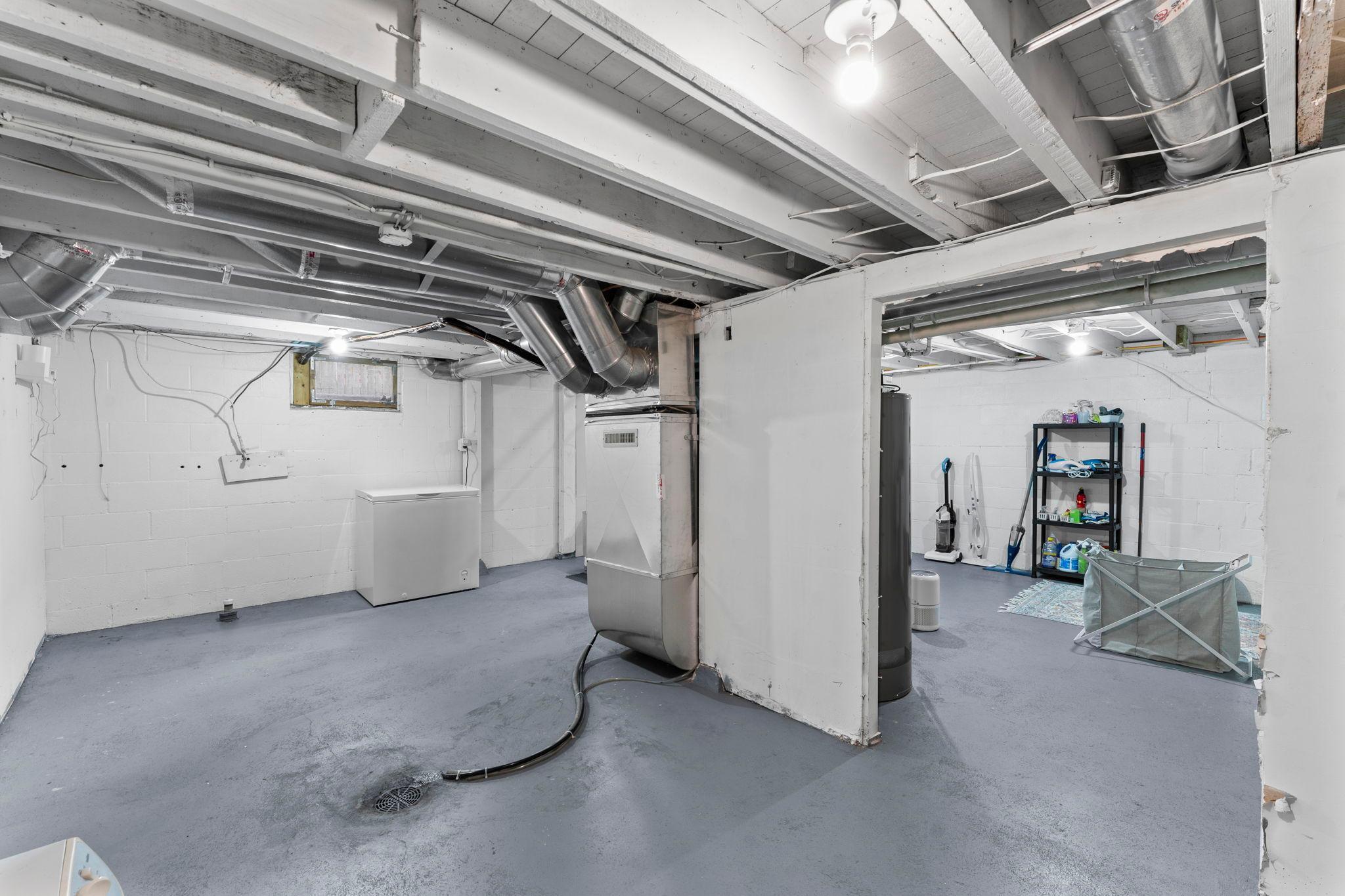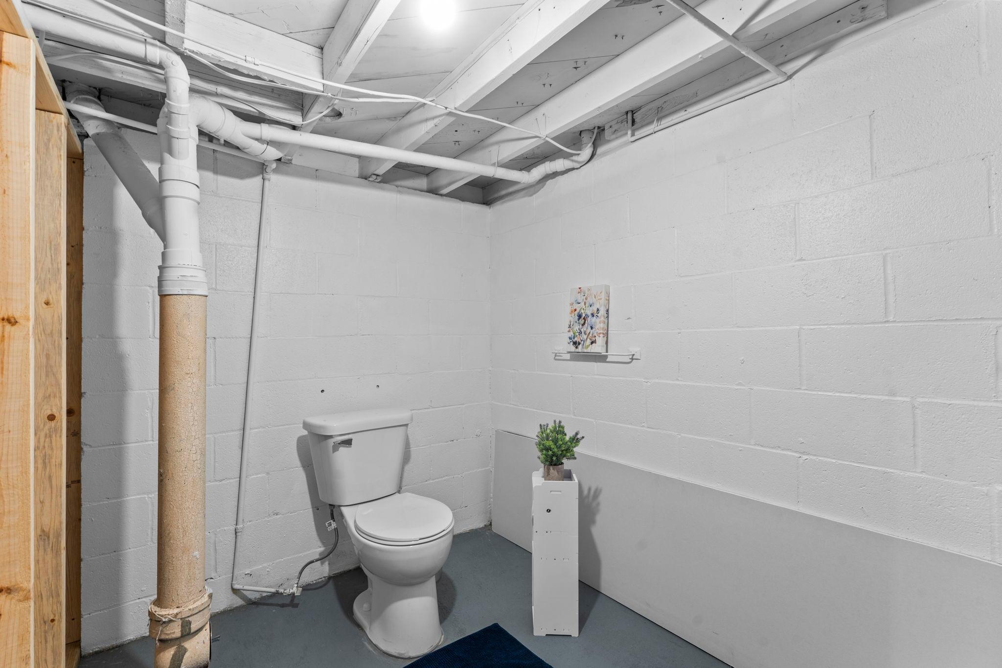 The main level features two generously sized bedrooms and a full bathroom with a double vanity and ample storage. The lower level offers a wide-open basement with a laundry area, abundant space for storage or recreation, and a convenient 1/4 bath (toilet in place) with potential to finish into a full bathroom.