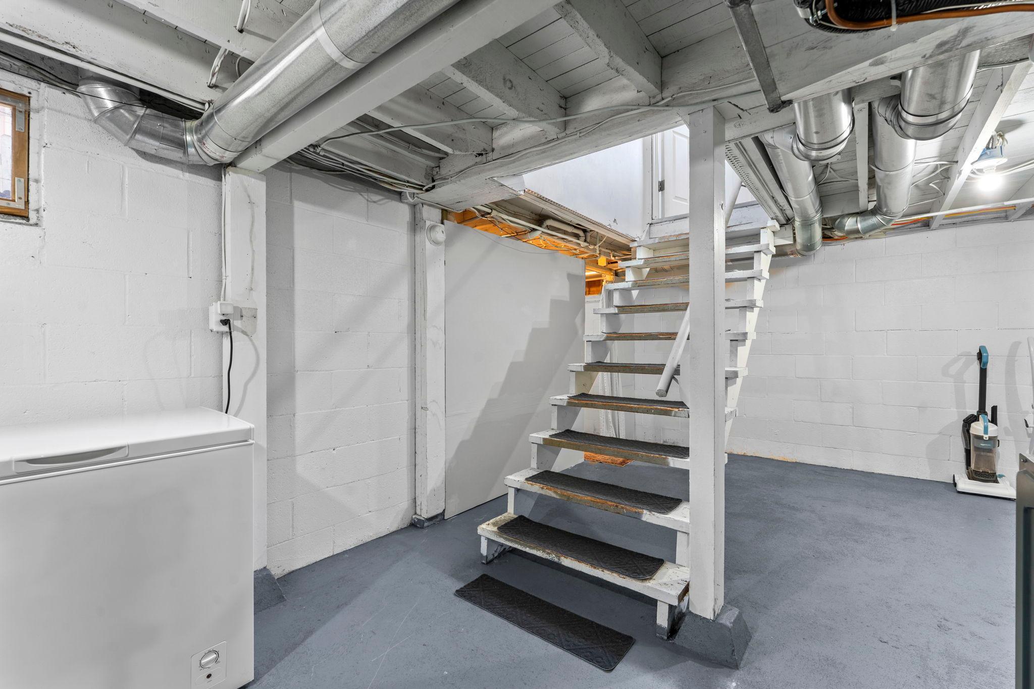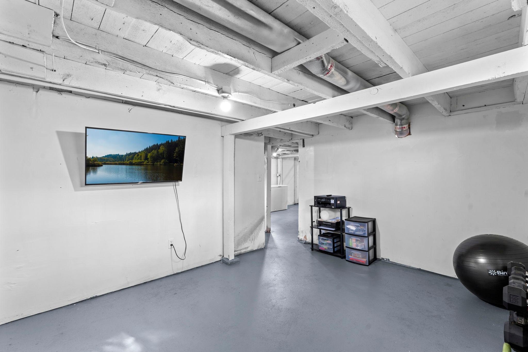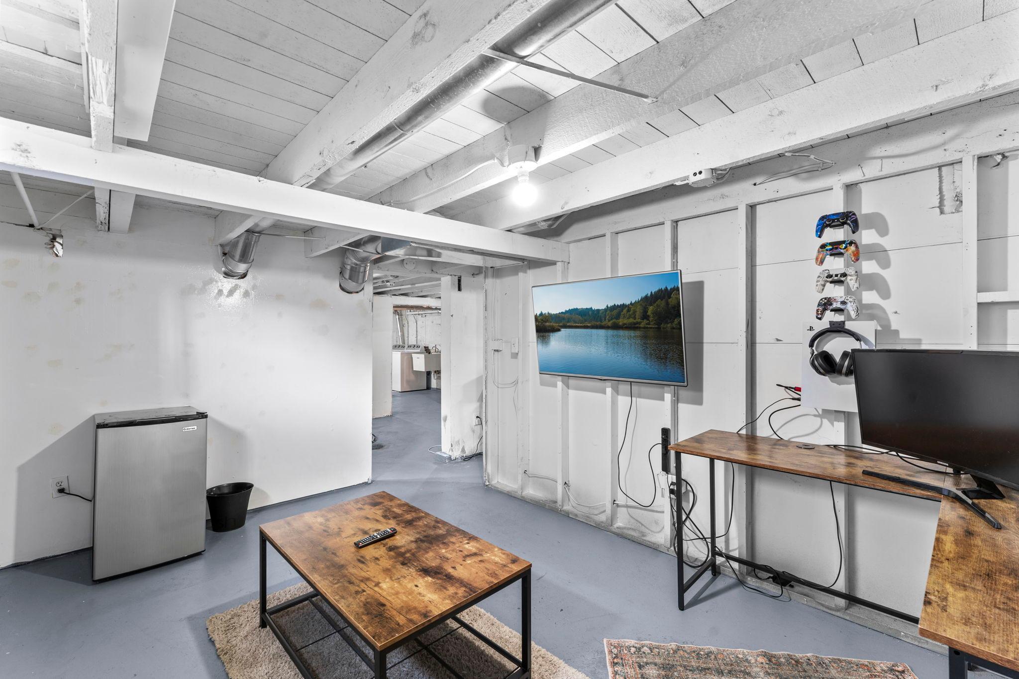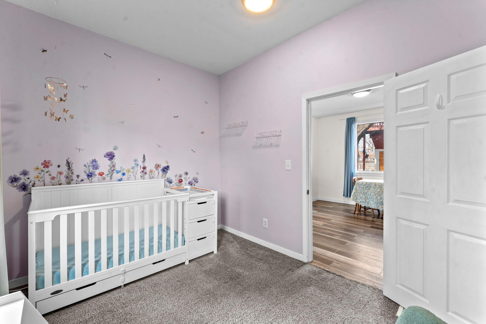 The main level features two generously sized bedrooms and a full bathroom with a double vanity and ample storage. The lower level offers a wide-open basement with a laundry area, abundant space for storage or recreation, and a convenient 1/4 bath (toilet in place) with potential to finish into a full bathroom.