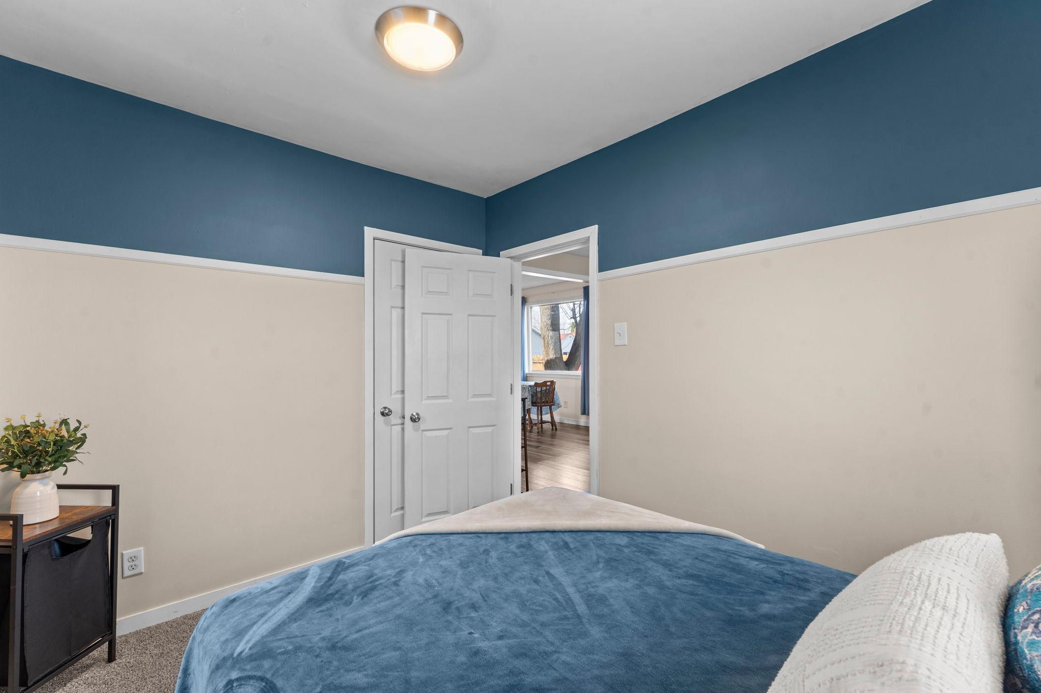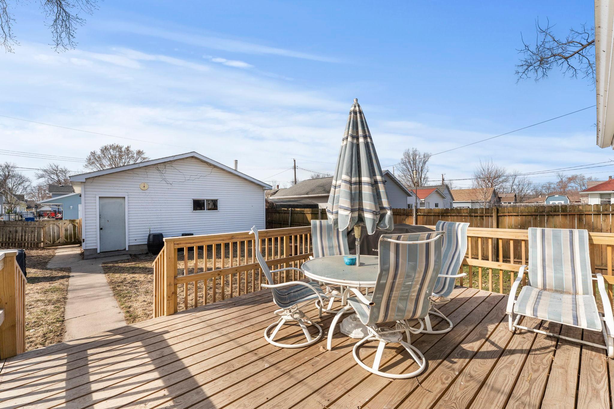 Welcome home! This charming property immediately impresses with its inviting front porch and desirable location. Inside, you'll apricate how clean, well-maintained, and functional the home is. The bright living room flows seamlessly into the dining area and spacious kitchen, creating a layout that makes the home feel larger than expected. The main level features two generously sized bedrooms and a full bathroom with a double vanity and ample storage. The lower level offers a wide-open basement with a laundry area, abundant space for storage or recreation, and a convenient 1/4 bath (toilet in place) with potential to finish into a full bathroom. Step outside to enjoy the beautifully updated exterior, including a 16x14 deck perfect for relaxing or entertaining. Two car detached garage on the alley is very convenient! Move-in ready and full of charm, this home is ready for its next owners.