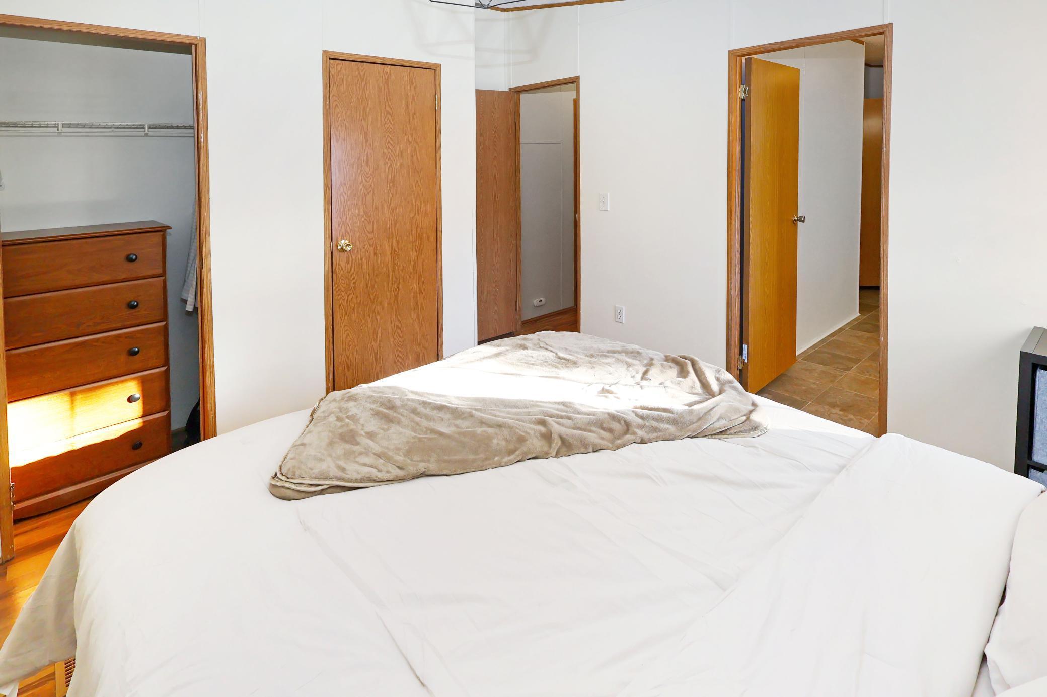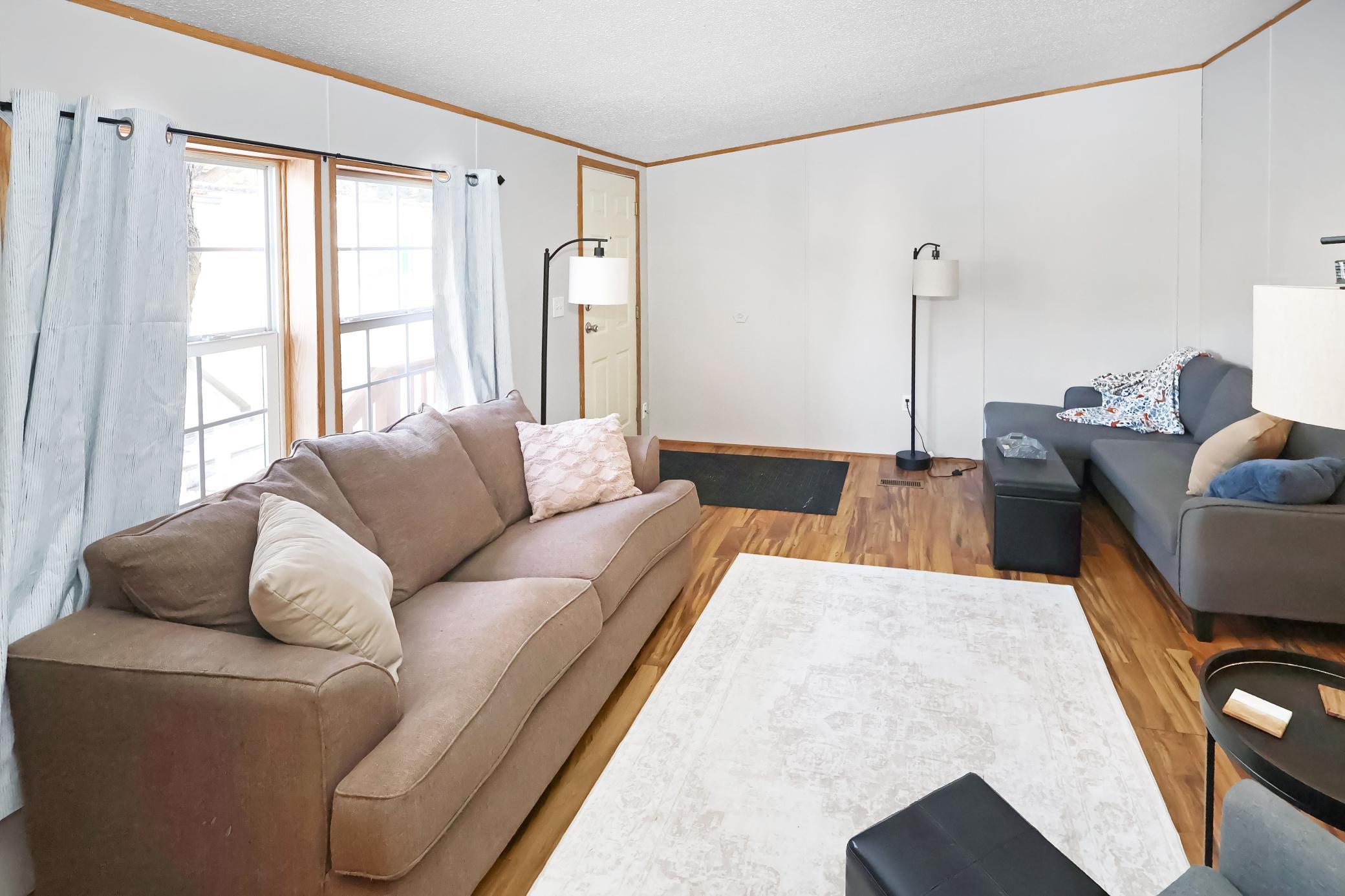 Enjoy easy one-level living in this well-located 3-bedroom home in Sherburne Village. The exterior features maintenance-free vinyl siding, a nice front deck, and a walkway leading to the side entry/main entrance, offering both convenience and curb appeal. Inside, the kitchen is equipped with raised panel cabinets and a cozy eat-in dining area, perfect for everyday meals. The spacious living room provides plenty of room to relax or entertain. The primary bedroom offers double closets and a walk-through bathroom, giving you the functionality of a private bath without the extra upkeep. New interior paint! Lot rent is $650 per month and includes water, sewer, garbage, and recycling, making for a simple and affordable lifestyle in a convenient location.