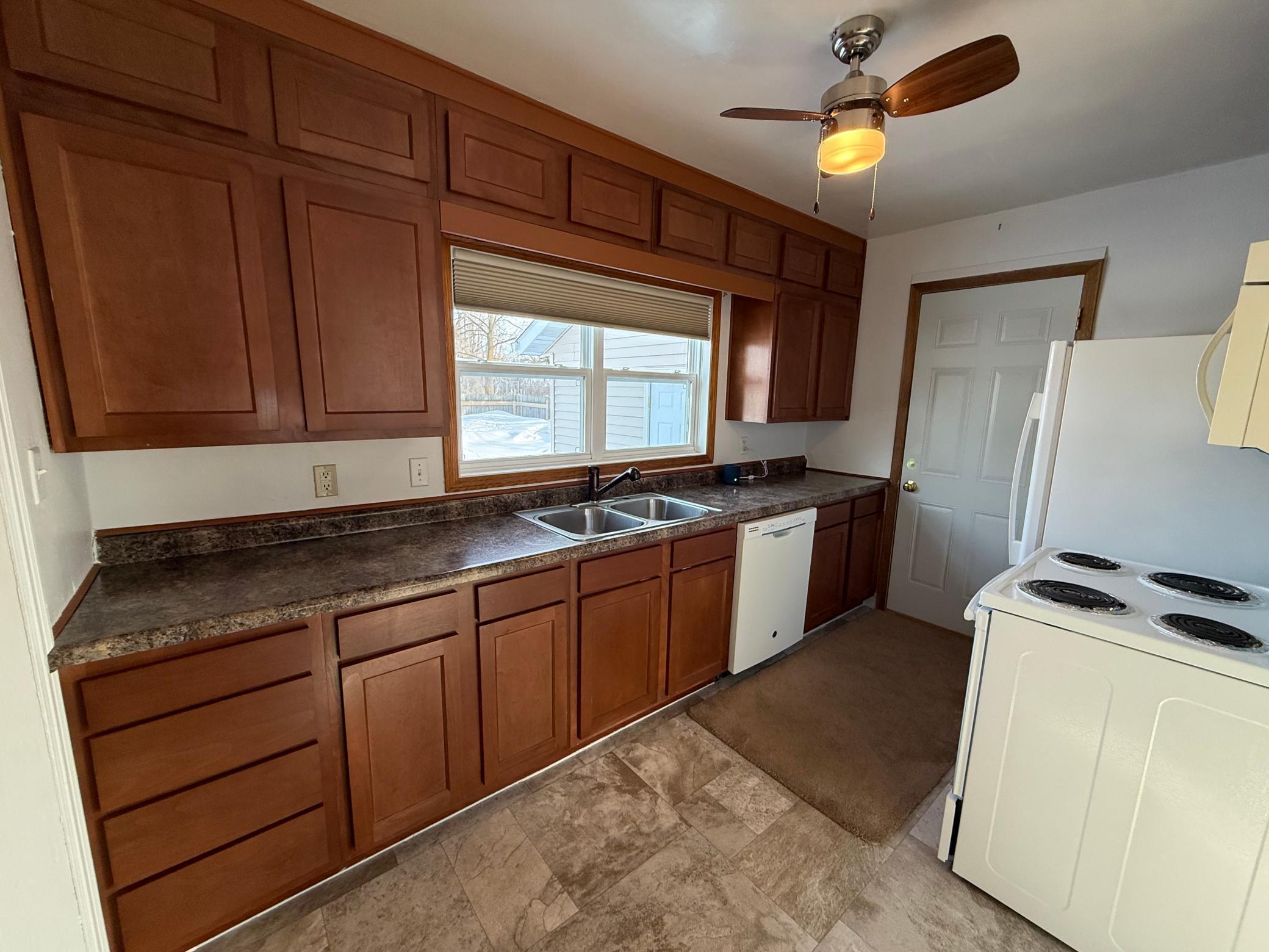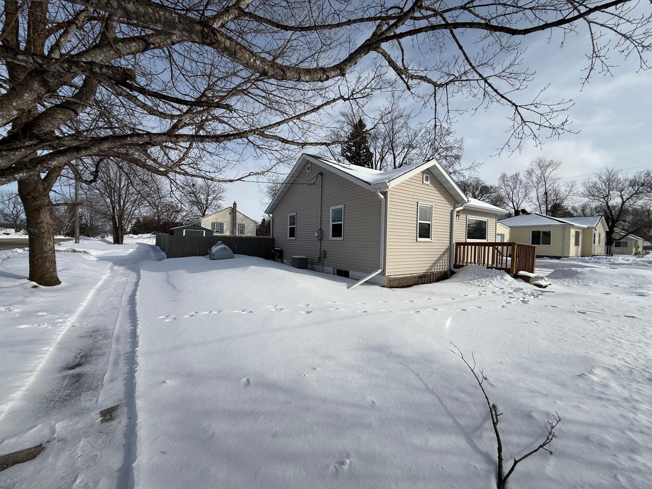 Well-maintained and thoughtfully updated home situated on a spacious corner lot. This property offers two main-floor bedrooms and a full bathroom, providing comfortable and convenient single-level living. The living room and bedrooms feature recently updated silk carpet, creating a warm and inviting atmosphere. The kitchen includes newer countertops and cabinetry, combining style and functionality for everyday living and entertaining. The lower level includes two additional rooms that are currently unfinished, offering excellent opportunity for future expansion. With the addition of egress windows and finishing touches, these spaces provide potential for added bedrooms or additional living areas. The exterior features durable vinyl siding and architectural shingles for lasting curb appeal. The large, fully fenced backyard provides ample outdoor space and includes a generously sized storage shed installed in spring 2025. A gutter system with leaf guard was added in fall 2025 to enhance maintenance efficiency. Additional improvements include a water softener installed in 2023, fresh interior paint, and recently shampooed carpets — making this home truly move-in ready. With its thoughtful updates, practical layout, and room for future growth, this property presents a wonderful opportunity. Schedule your private showing today to see all that this home has to offer.