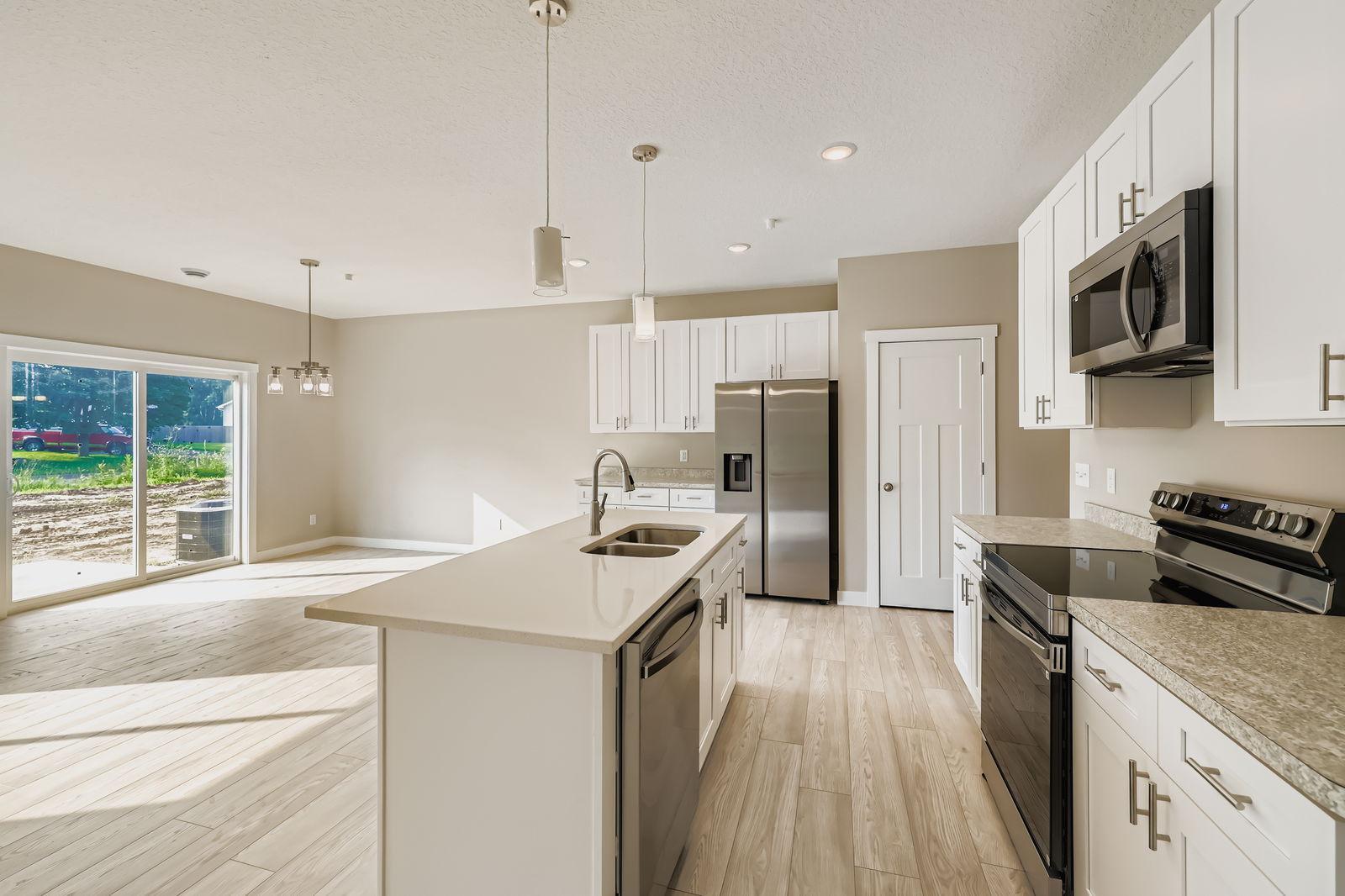 Welcome to 2117 Cleveland Way S – a brand-new end-unit townhome in the heart of Cambridge, MN, offering modern comfort and low-maintenance living. This thoughtfully designed 3-bedroom, 3-bath home features a bright and open main floor with a stylish kitchen, complete with stainless steel appliances and sleek cabinetry. A convenient half bath is located just off the foyer, and the attached two-stall garage makes daily life seamless. Upstairs, all three bedrooms, the laundry room, and a versatile loft space are located on one level—perfect for easy living and privacy from the main floor. The spacious primary suite includes a private three-quarter bath with double sinks and a large walk-in closet, offering a quiet retreat at the end of the day. The two additional bedrooms share a full bath, and the loft is ideal for a home office, playroom, or second living area. With clean lines, modern finishes, and smart layout choices, this home is built for today’s lifestyle. Whether you're a first-time buyer, downsizing, or looking for an easy-to-maintain property, 2117 Cleveland Way S delivers comfort, functionality, and style—all wrapped up in new construction peace of mind. Don’t miss your chance to make this turnkey townhome your own.