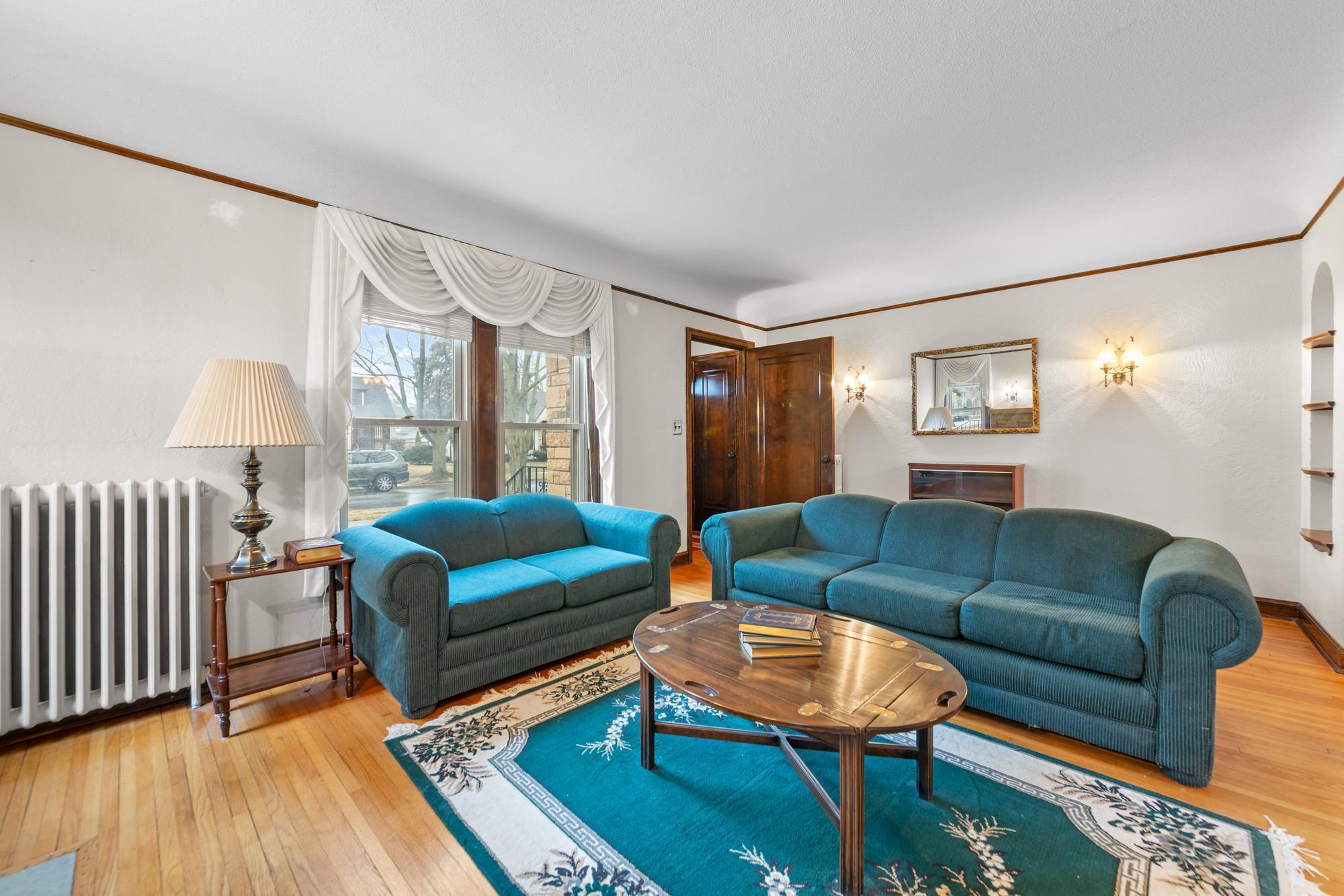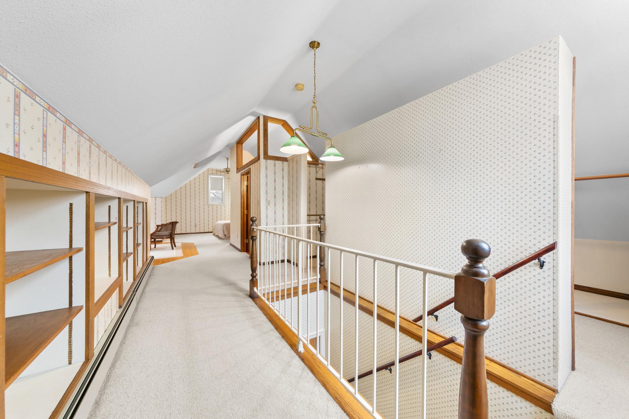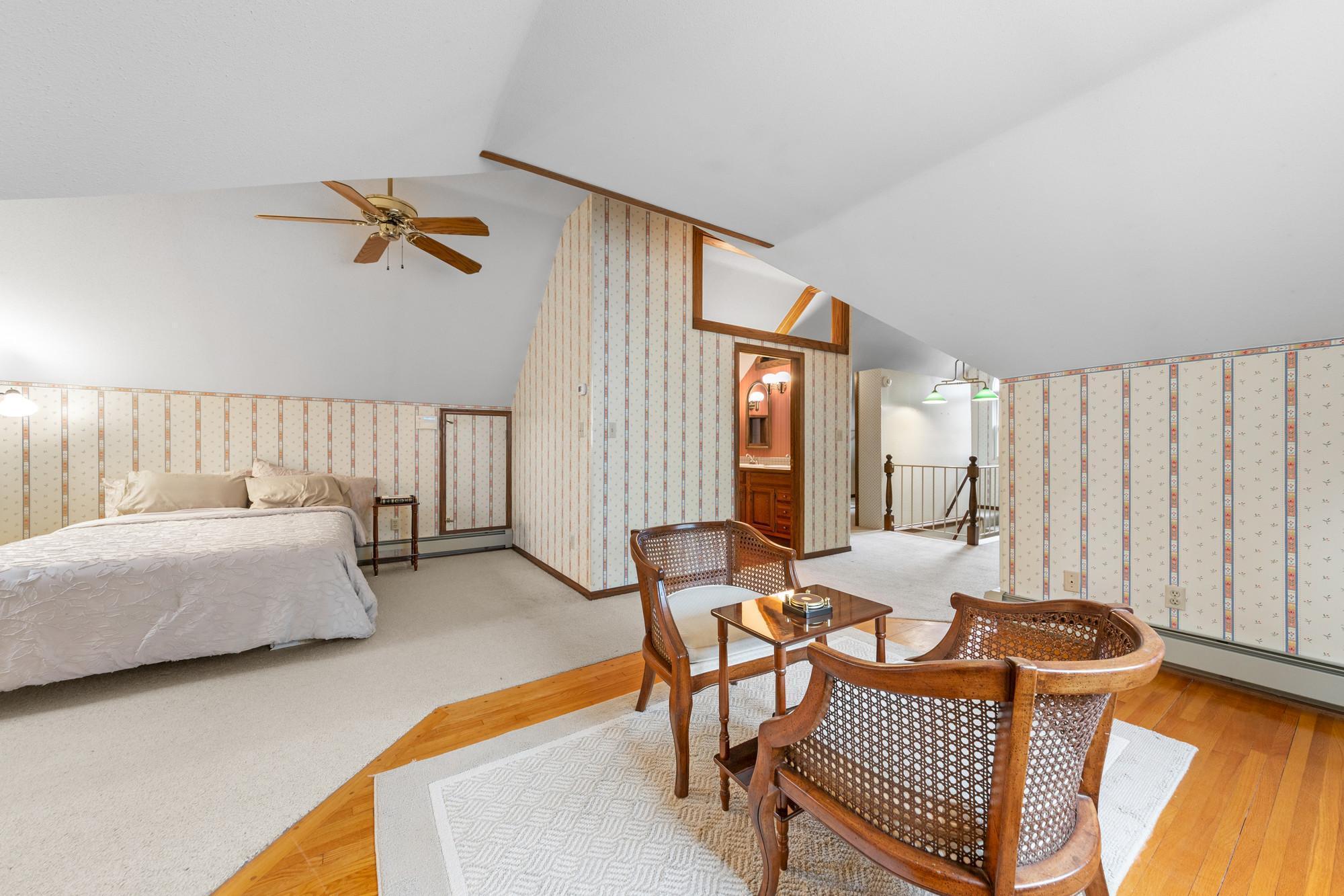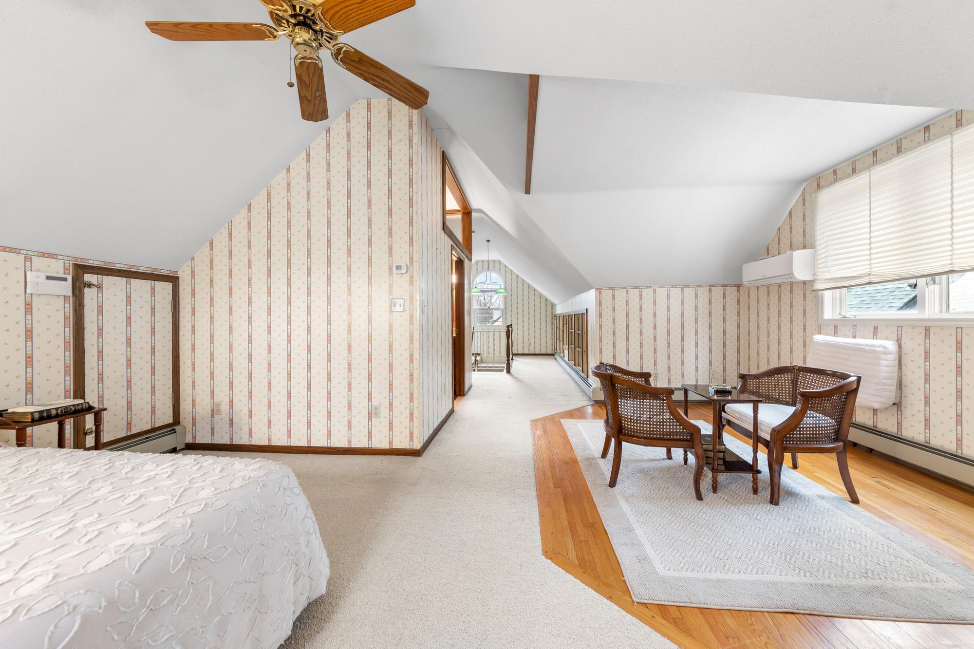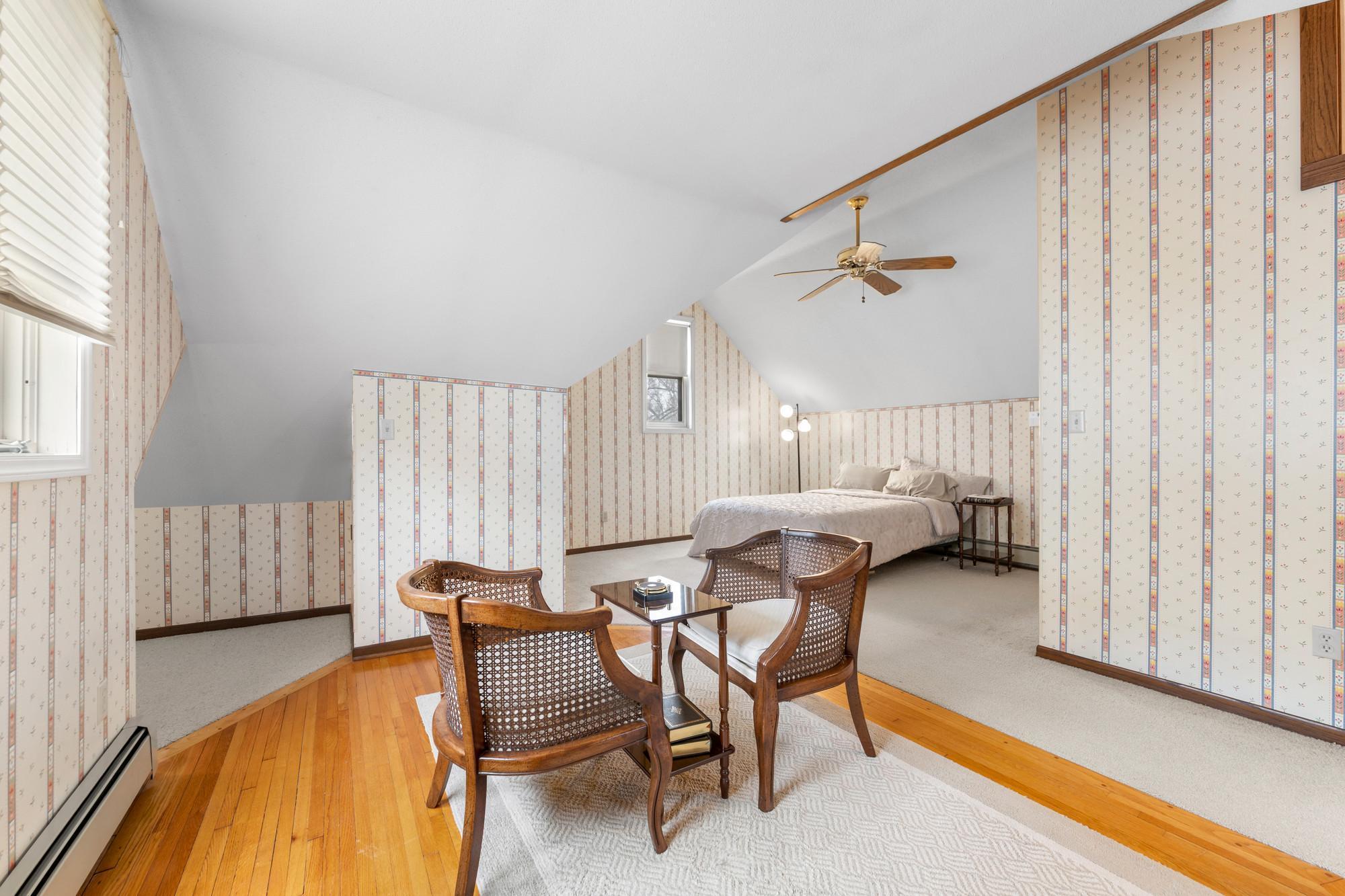 The spacious upper-level primary suite offers an oversized retreat, providing comfort and privacy rarely found in homes of this era. Classic architectural details, warm living spaces, and a functional layout create an inviting atmosphere throughout.