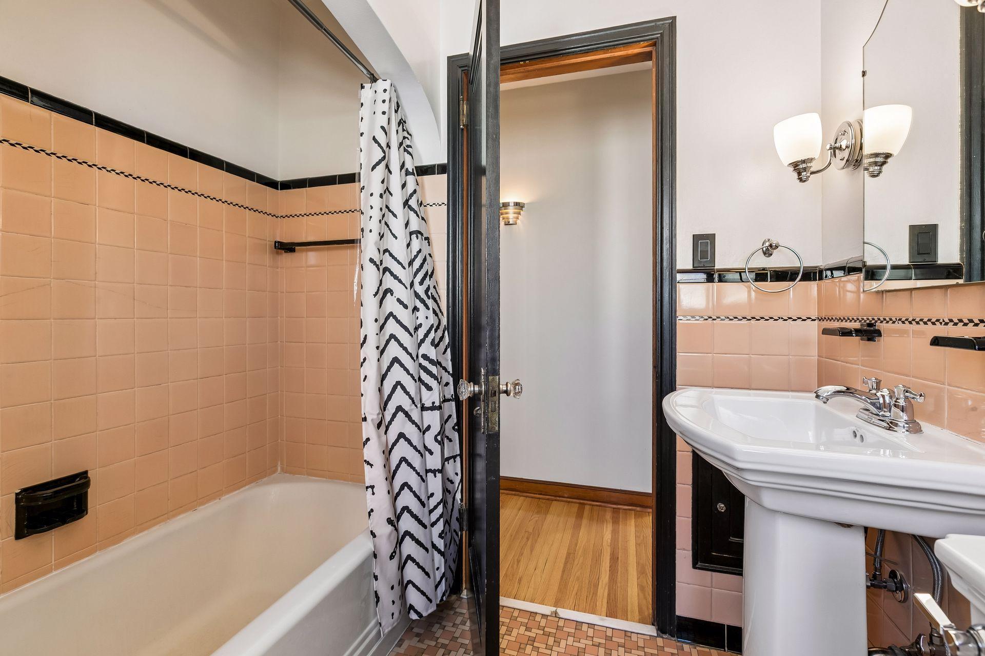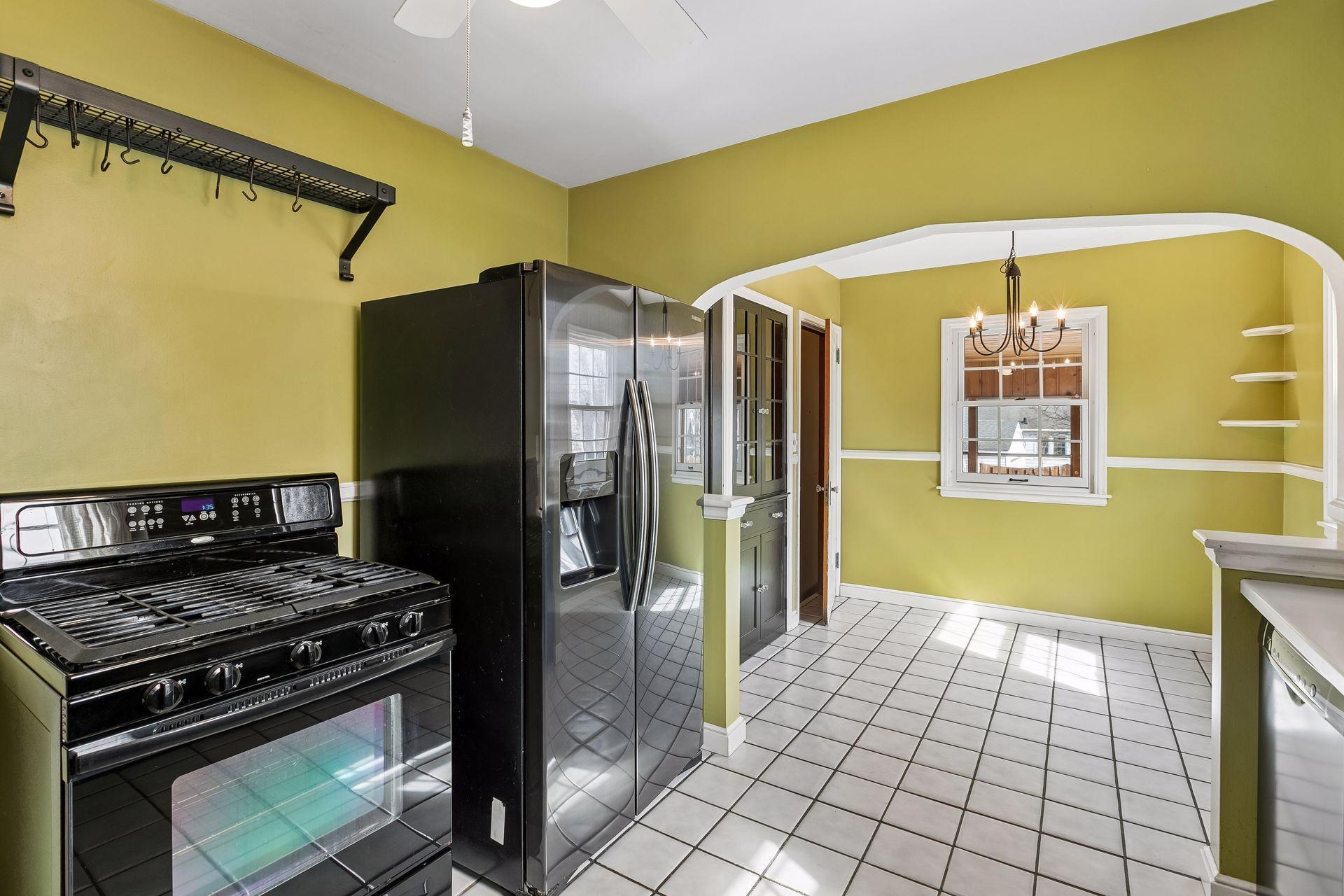 The main living space is warm and inviting. While the focal point is the fireplace, the windows are expansive and replaced in 2021 (per city permits). The kitchen offers ample cabinetry and has an adjacent dining area with a built in cabinet. 2 main floor bedrooms and a vintage tile bathroom complete this level.