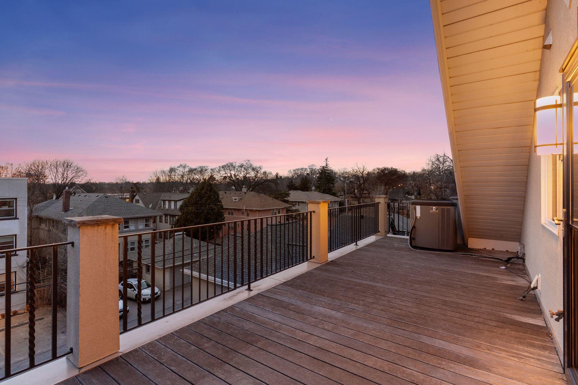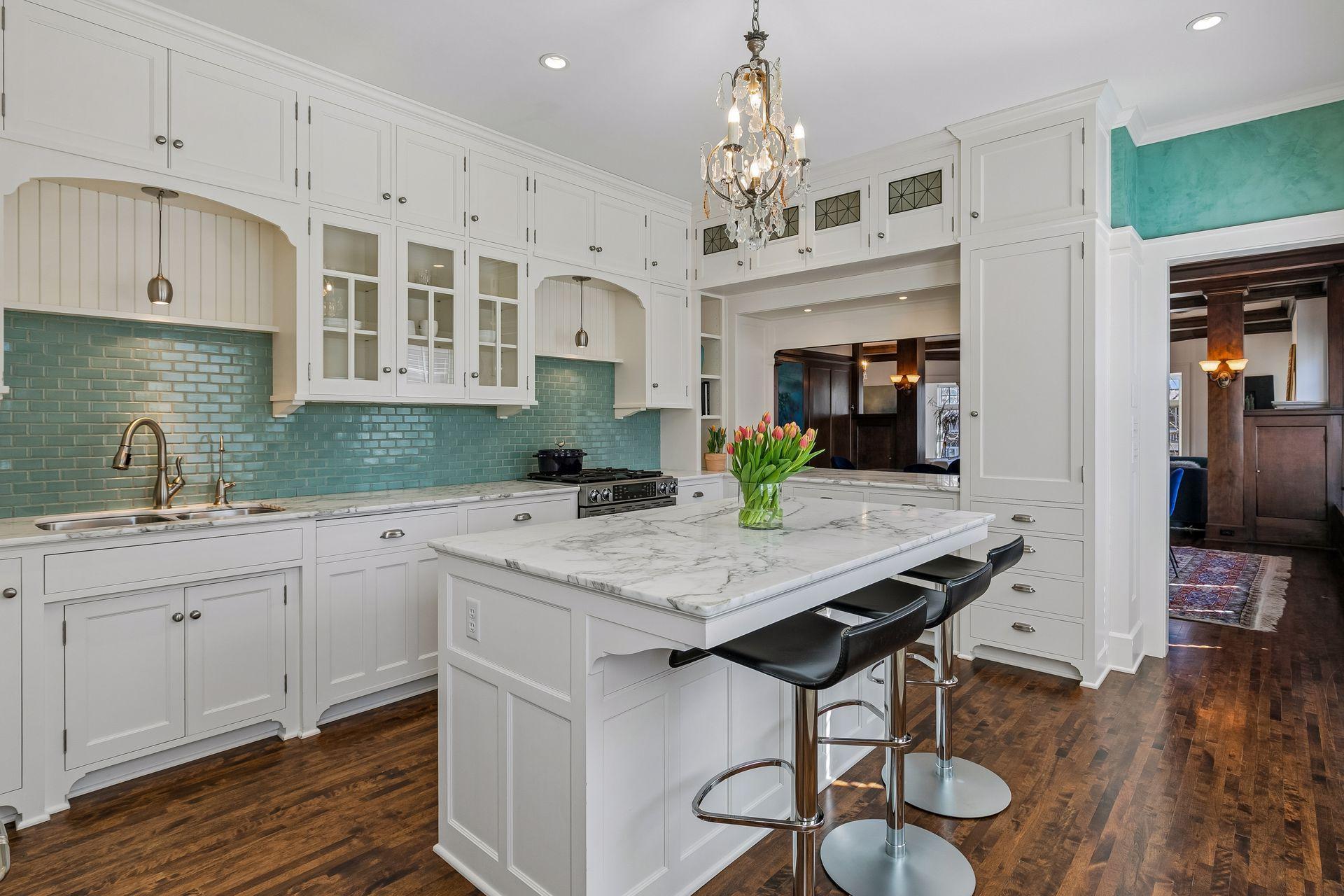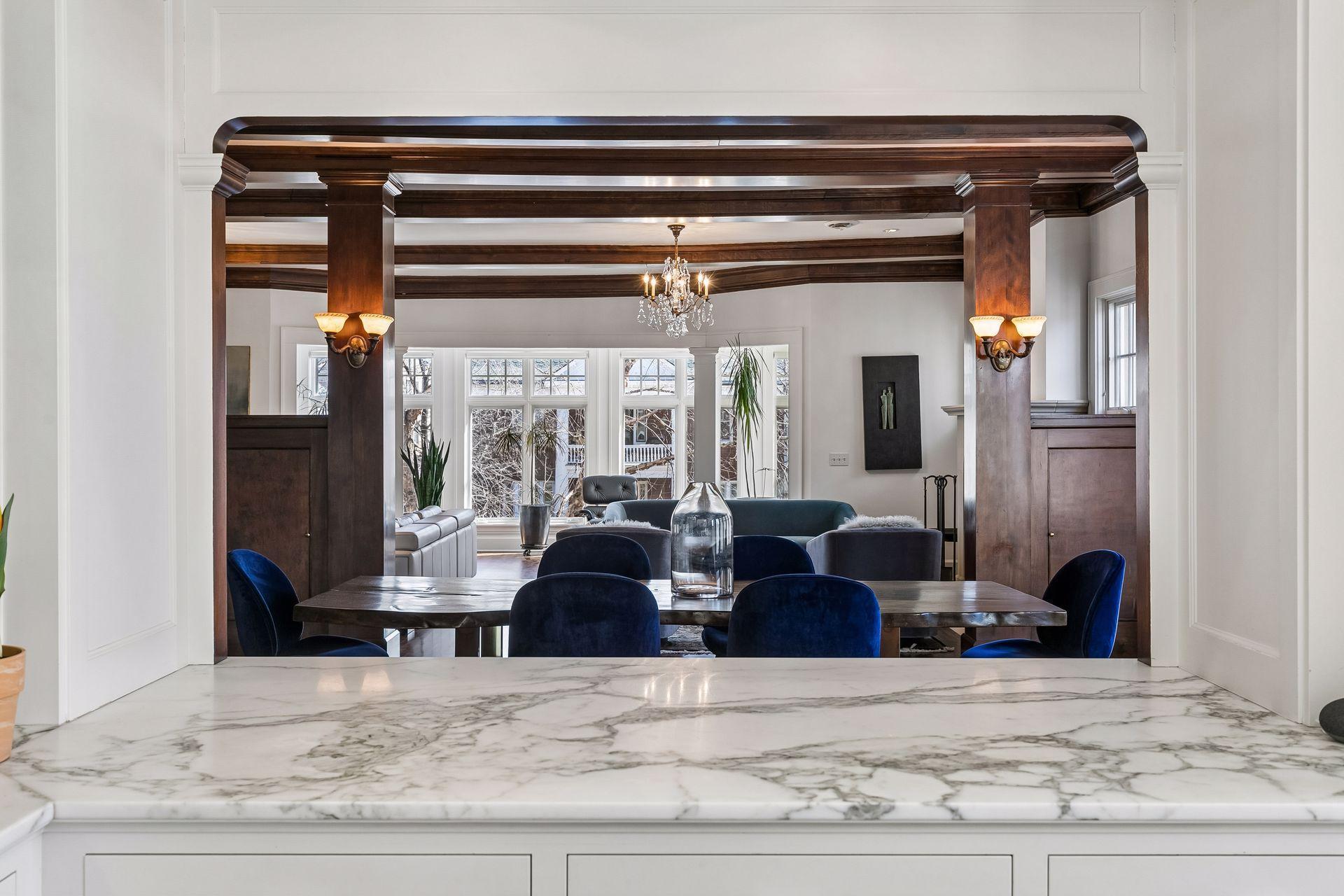 Public Remarks: Remodeled 4BR + den condo in the desirable East Isles neighborhood. The property features attractive curb appeal, an updated arched entrance, and a modern front door surrounded by well-maintained landscaping, seasonal flowers, and mature canopy trees. Welch Forsman Associates completed renovations that emphasize modern design elements, integrating them thoughtfully with turn-of-the-century charm and craftsmanship to produce attractive, practical living spaces throughout the property. The expansive living room includes an adjacent sunroom, distinguished by a wall of windows allowing for an abundance of natural light to pour through. Elegant wood beams accentuate the high ceilings, seamlessly integrating with the built-in dining room buffet. The kitchen, illuminated by natural light, offers generous cabinet storage, a central island, and an elegant tile backsplash. The main floor features in-unit laundry, three bedrooms and a den, complemented by primary suites on both the main and upper levels. The upper-level ensuite serves as a private retreat, offering two balconies, a sitting room, several walk-in closets, and a bathroom equipped with a soaking tub and walk-in shower. Ample storage in the lower level and attached garage. A short walk to all that Lake of Isles has to offer.
