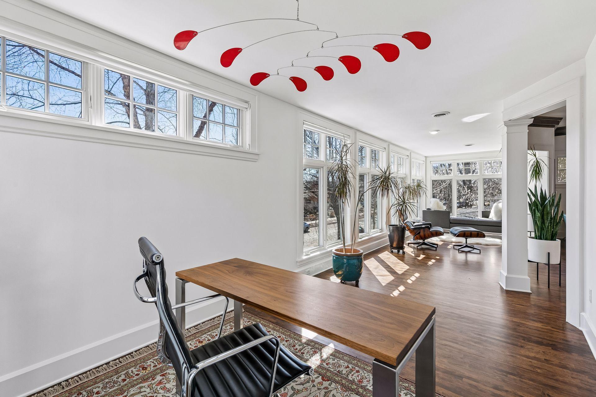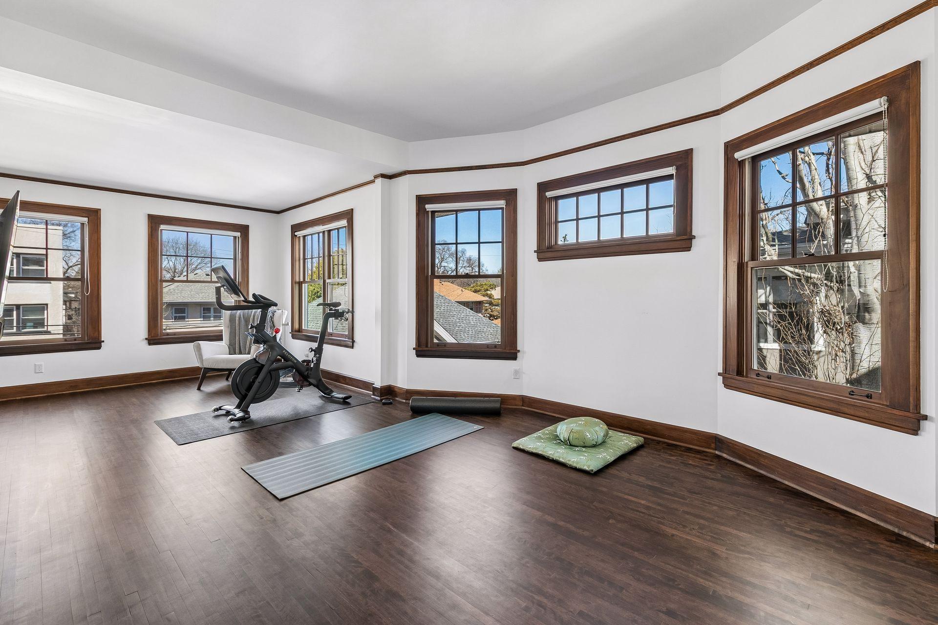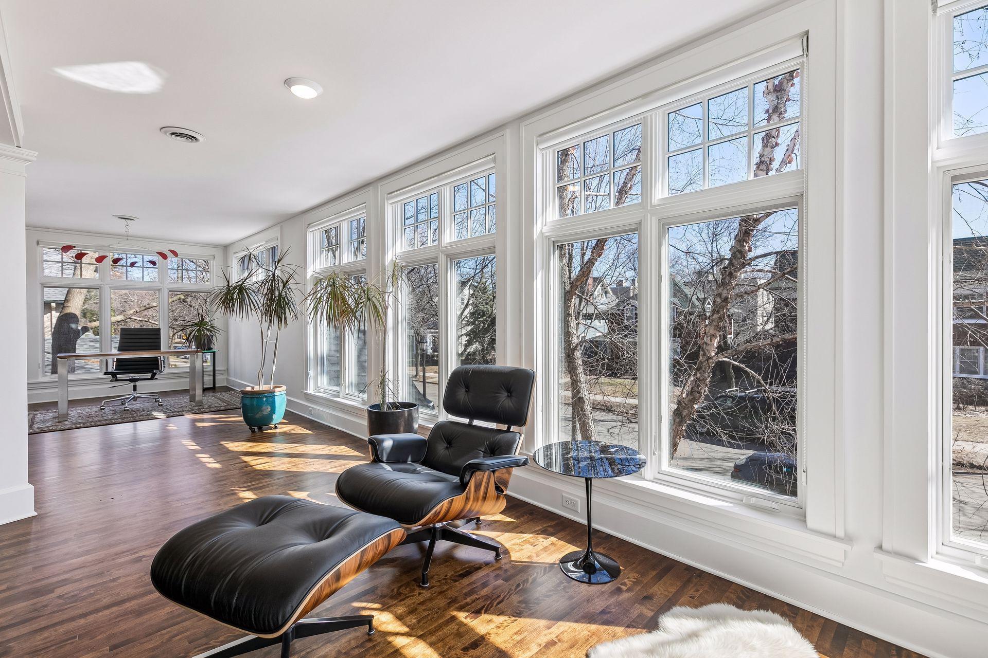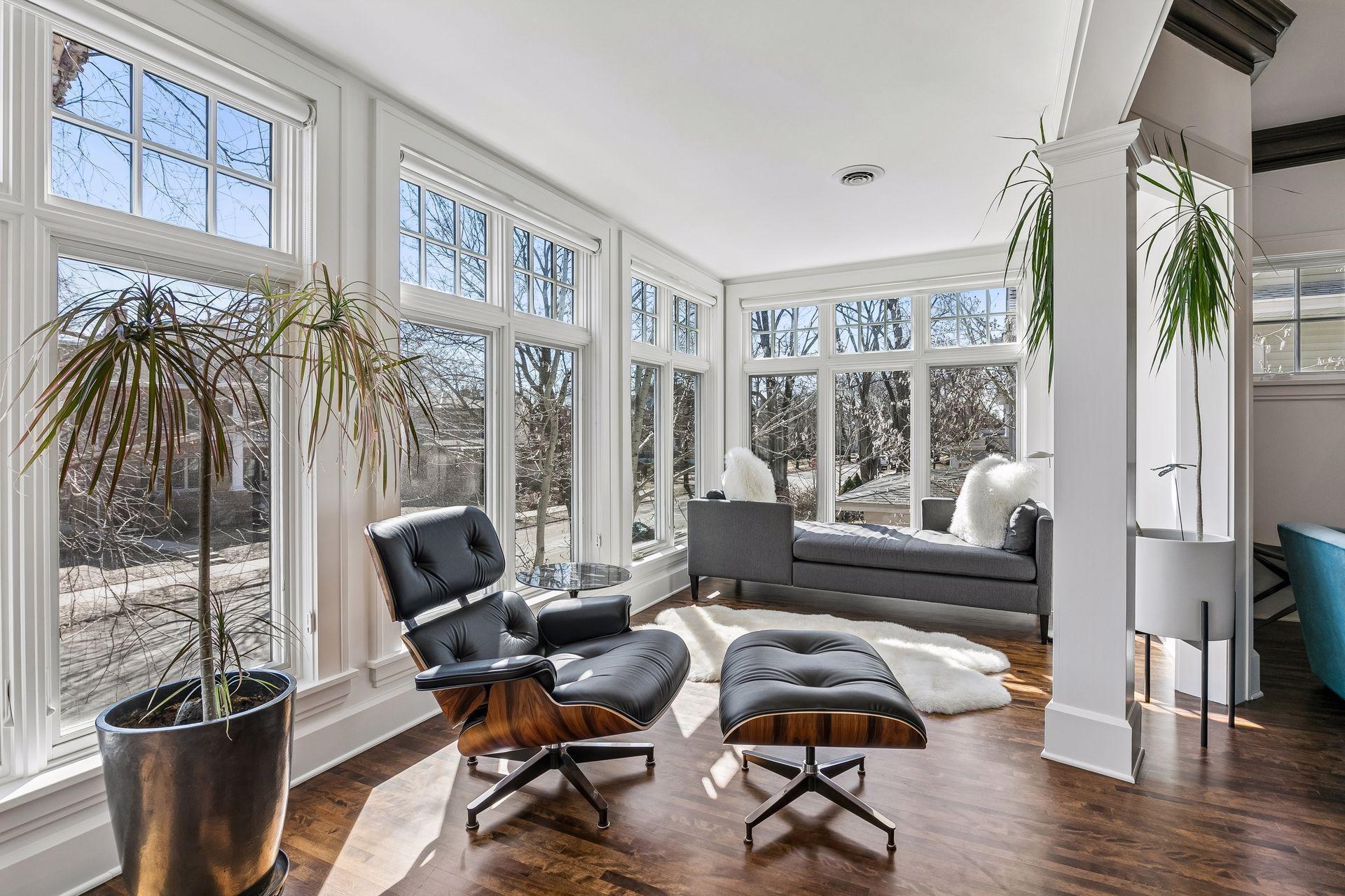 Public Remarks: Remodeled 4BR + den condo in the desirable East Isles neighborhood. The property features attractive curb appeal, an updated arched entrance, and a modern front door surrounded by well-maintained landscaping, seasonal flowers, and mature canopy trees. Welch Forsman Associates completed renovations that emphasize modern design elements, integrating them thoughtfully with turn-of-the-century charm and craftsmanship to produce attractive, practical living spaces throughout the property. The expansive living room includes an adjacent sunroom, distinguished by a wall of windows allowing for an abundance of natural light to pour through. Elegant wood beams accentuate the high ceilings, seamlessly integrating with the built-in dining room buffet. The kitchen, illuminated by natural light, offers generous cabinet storage, a central island, and an elegant tile backsplash. The main floor features in-unit laundry, three bedrooms and a den, complemented by primary suites on both the main and upper levels. The upper-level ensuite serves as a private retreat, offering two balconies, a sitting room, several walk-in closets, and a bathroom equipped with a soaking tub and walk-in shower. Ample storage in the lower level and attached garage. A short walk to all that Lake of Isles has to offer.