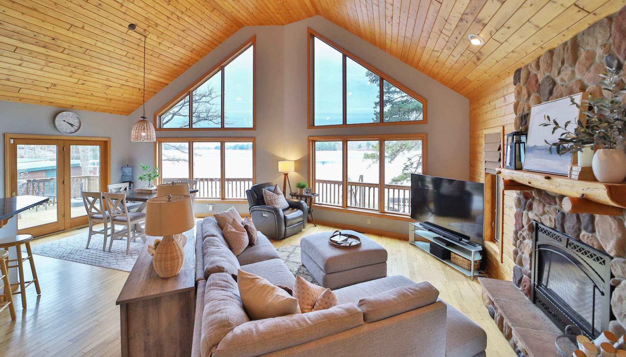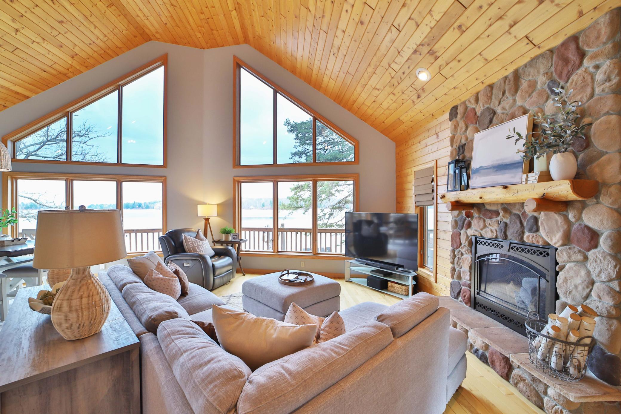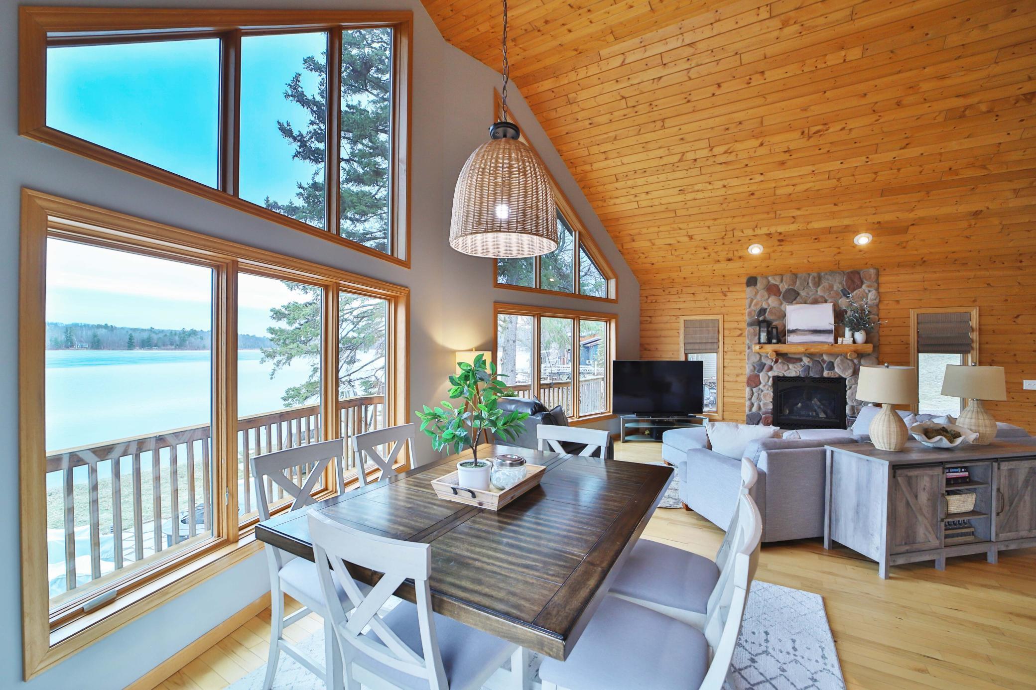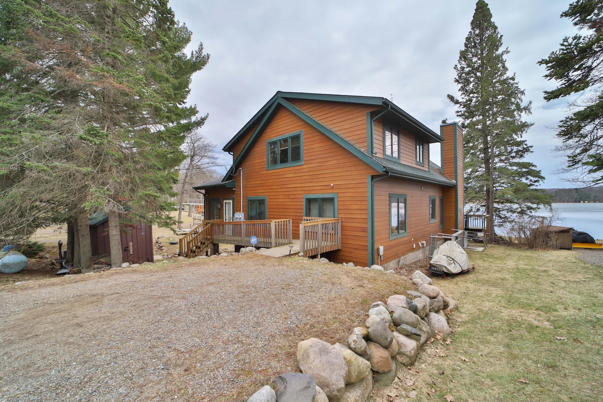 Public Remarks: Welcome to Camp Lake! This three-bedroom, two-bathroom home sits right next to the water, with level elevation and 110 feet of frontage. You will love the vaulted ceilings and expansive windows overlooking the lake in the great room. The main level also features two bedrooms, a bathroom, four-season porch, new washer and dryer in the laundry closet, kitchen, dining area, and rock fireplace. The upper level includes a large family room, another bedroom, and bathroom. Outside you will enjoy the lakeside patio, wrap around deck, 20x14 foot boat house, and shed for all your storage needs. New geothermal furnace, new carpet in the upper level, new paint through out, new stove, new washer and dryer, new siding on the boat house, electric installed by the lake, new patio. Great location close to Garrison and Brainerd/Baxter. Seller is including the 24' roll in dock along with the boat lift and canopy with the sale. Schedule your showing today!