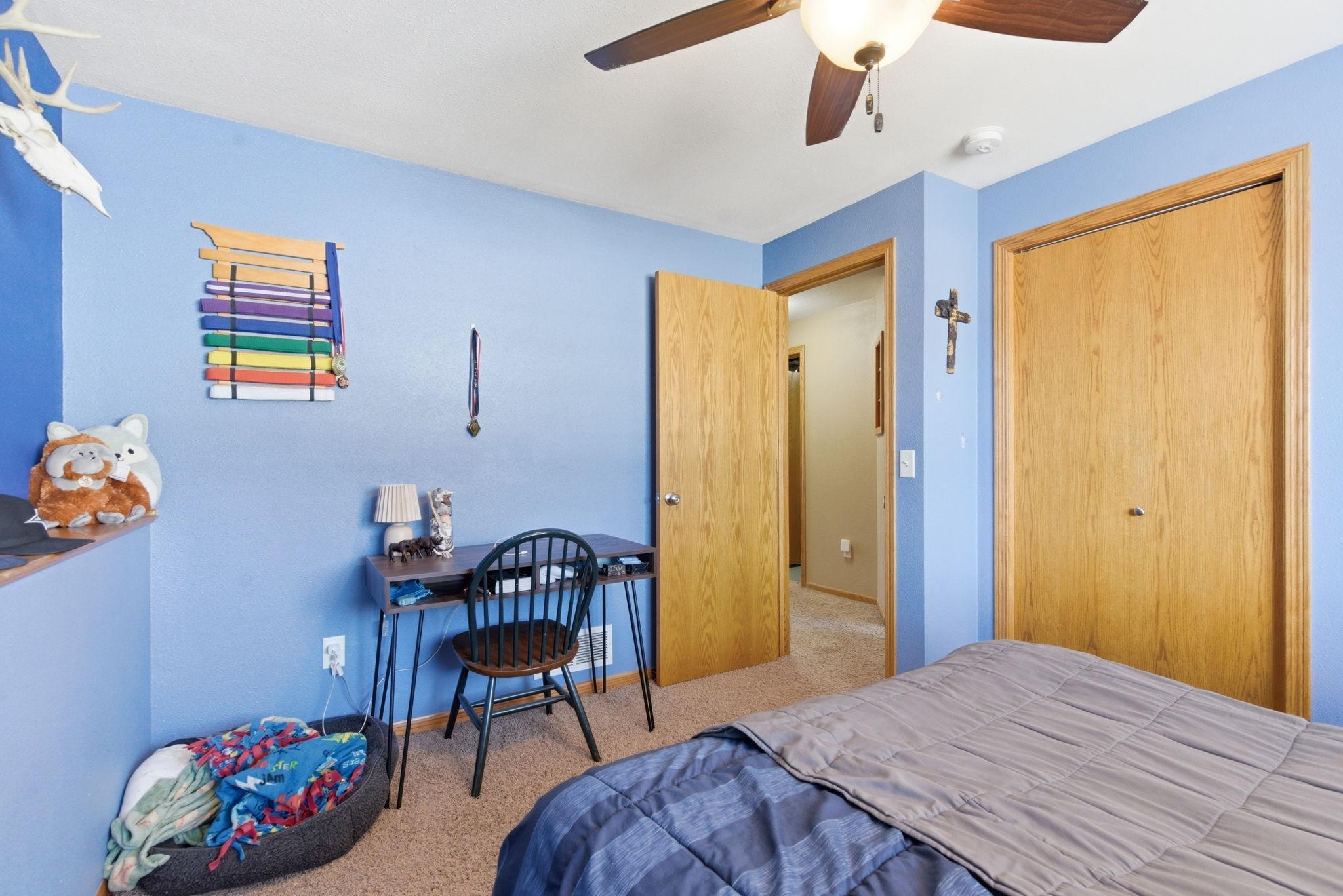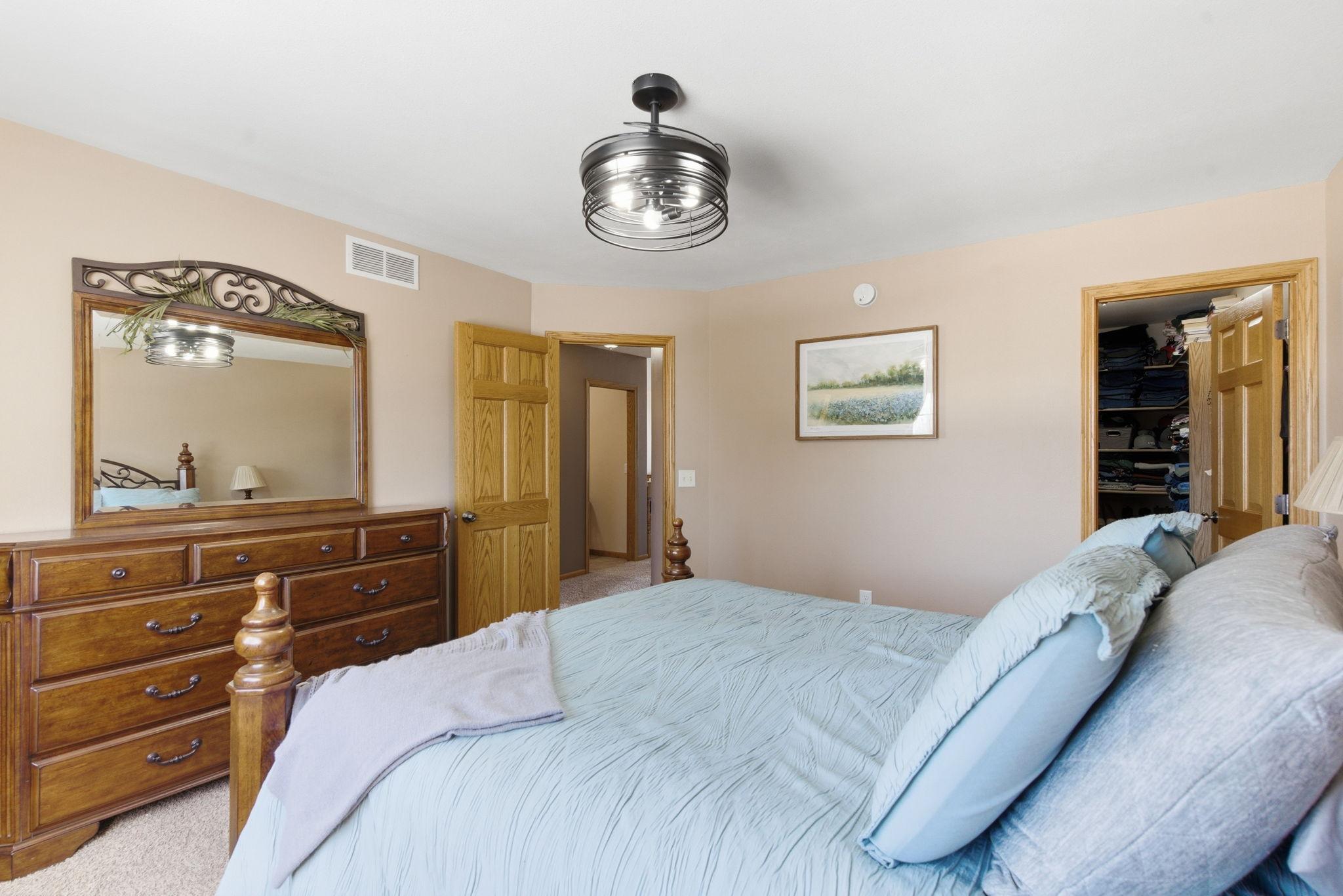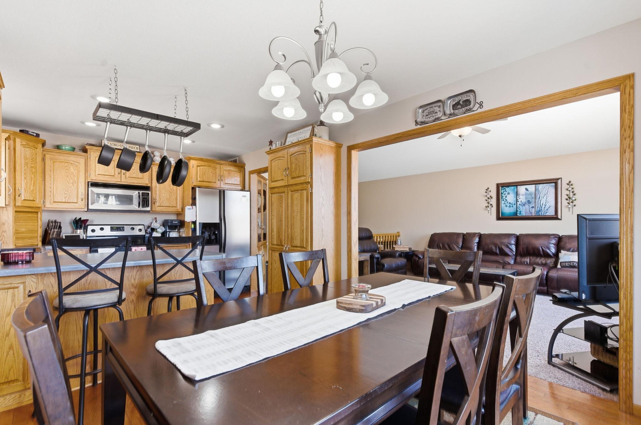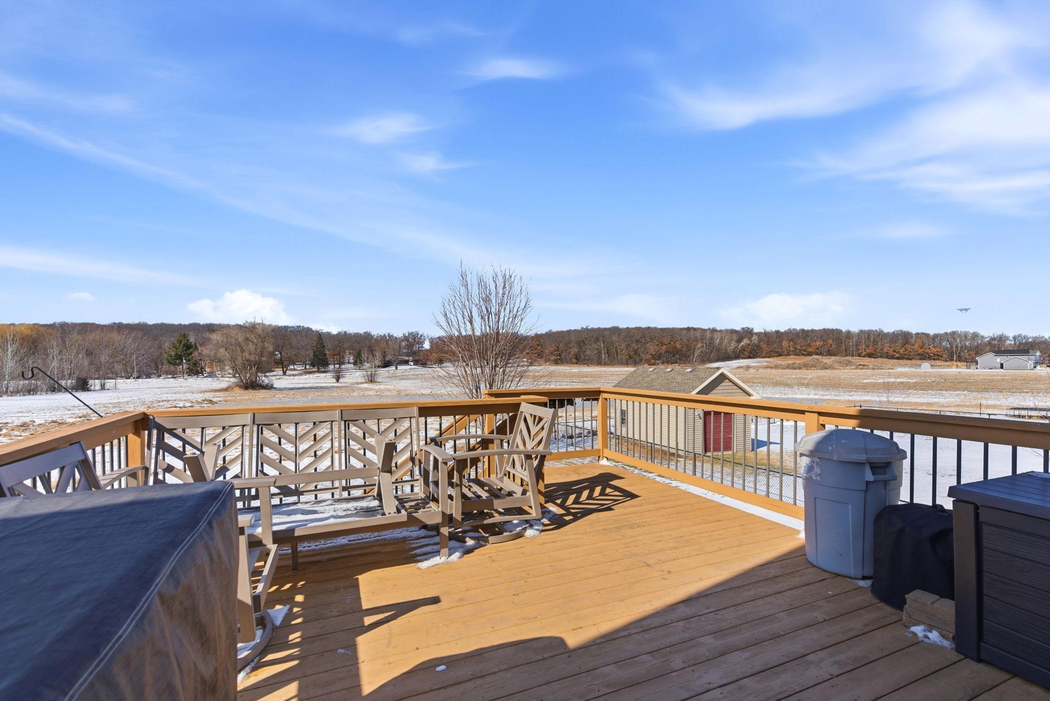 Discover this beautiful 4-bedroom, 2-bathroom home located in the Brentwood Hill subdivision of Rockville. This well-maintained split-level home, built in 2006, offers a functional layout and sits on a generous 0.35-acre lot adjacent to protected prairie and wetlands, allowing for unobstructed nature views. The main and upper levels feature vaulted ceilings that create an open, airy feel throughout the living and dining areas. The kitchen is well designed and flows naturally into the dining room. You'll find 2 comfortable bedrooms on this floor, including a spacious 14x13 primary bedroom with a walk-in closet. The lower level significantly expands your living space with a large 24x19 family room. Additional highlights include a convenient storage shed, a private deck for summer grilling, a flat landing space suitable for a pop-up summer pool (which can be included with the sale), and an attached 2-car garage that is insulated and heated. This must-see home features a full lawn sprinkler system and is conveniently located with easy access to Highway 23 & 94 and local amenities, all while maintaining a quiet, small-town atmosphere.