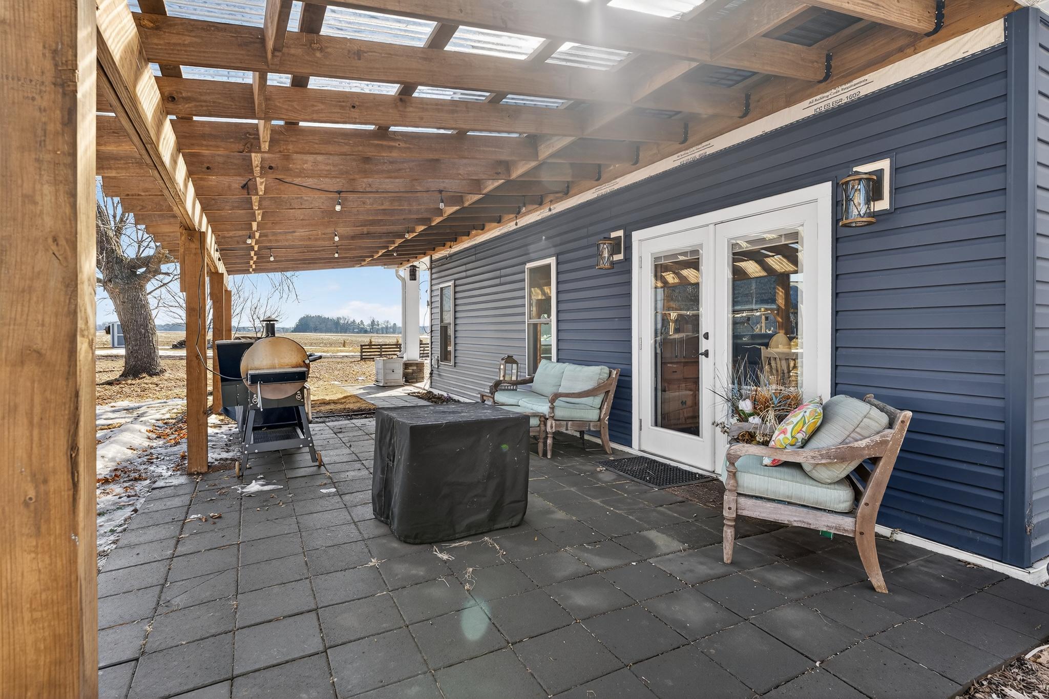 Outside, the more than five-acre parcel provides ample space and privacy. The large front porch is ideal for relaxing or welcoming guests, and the covered patio is well-suited for outdoor dining and entertaining. There is also room for a variety of uses, whether for hobbies, recreation, or simply enjoying open space.