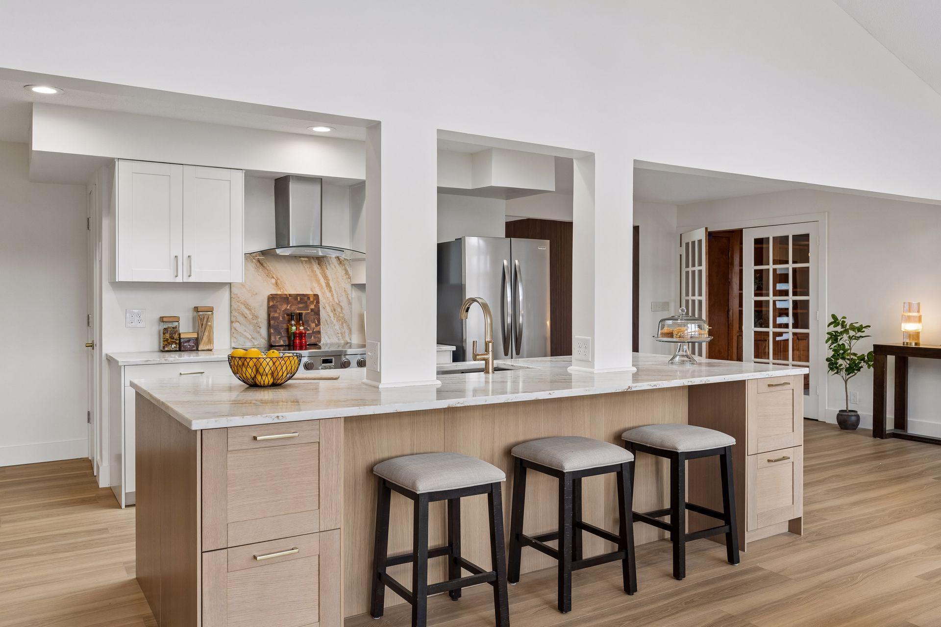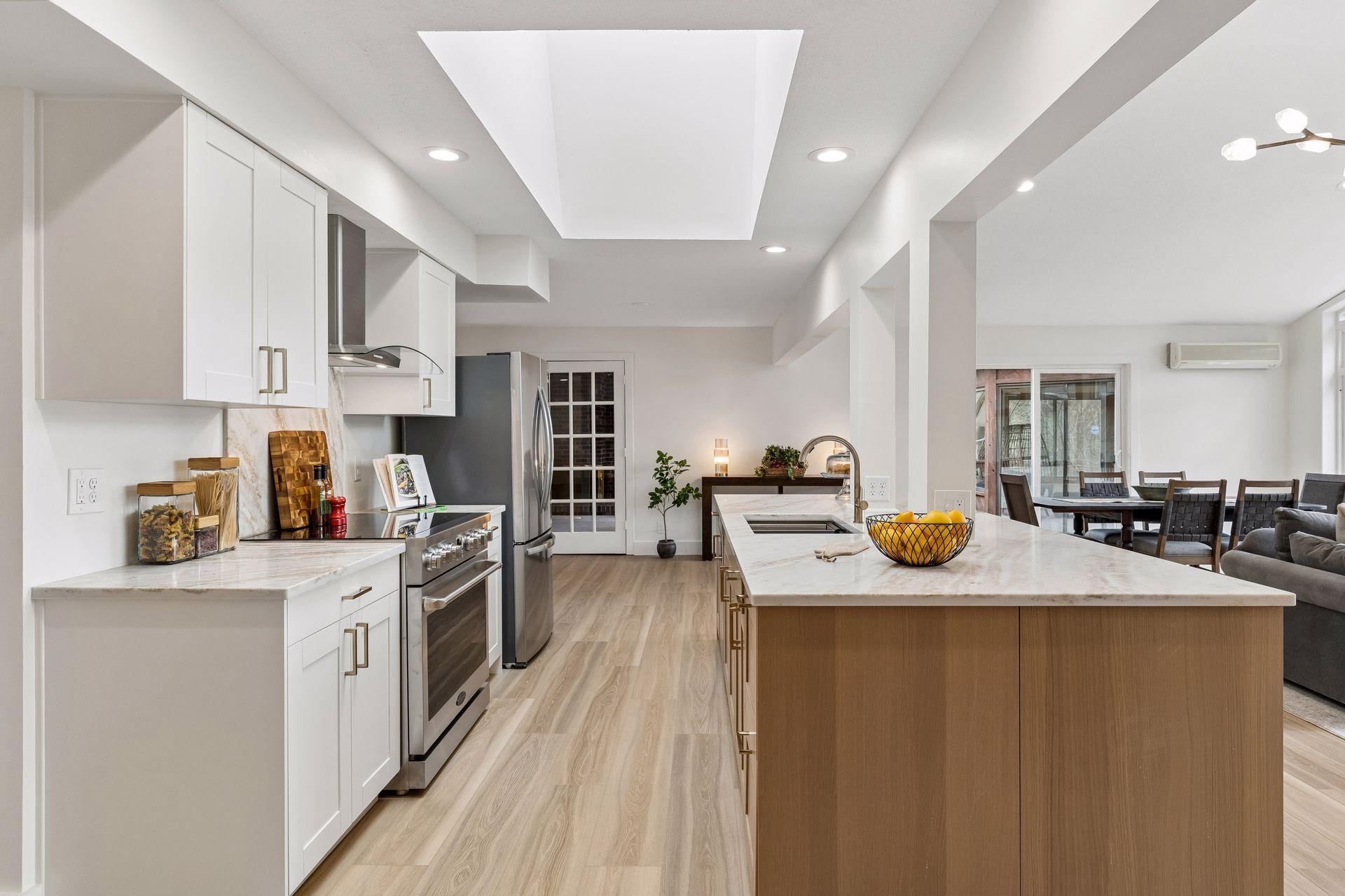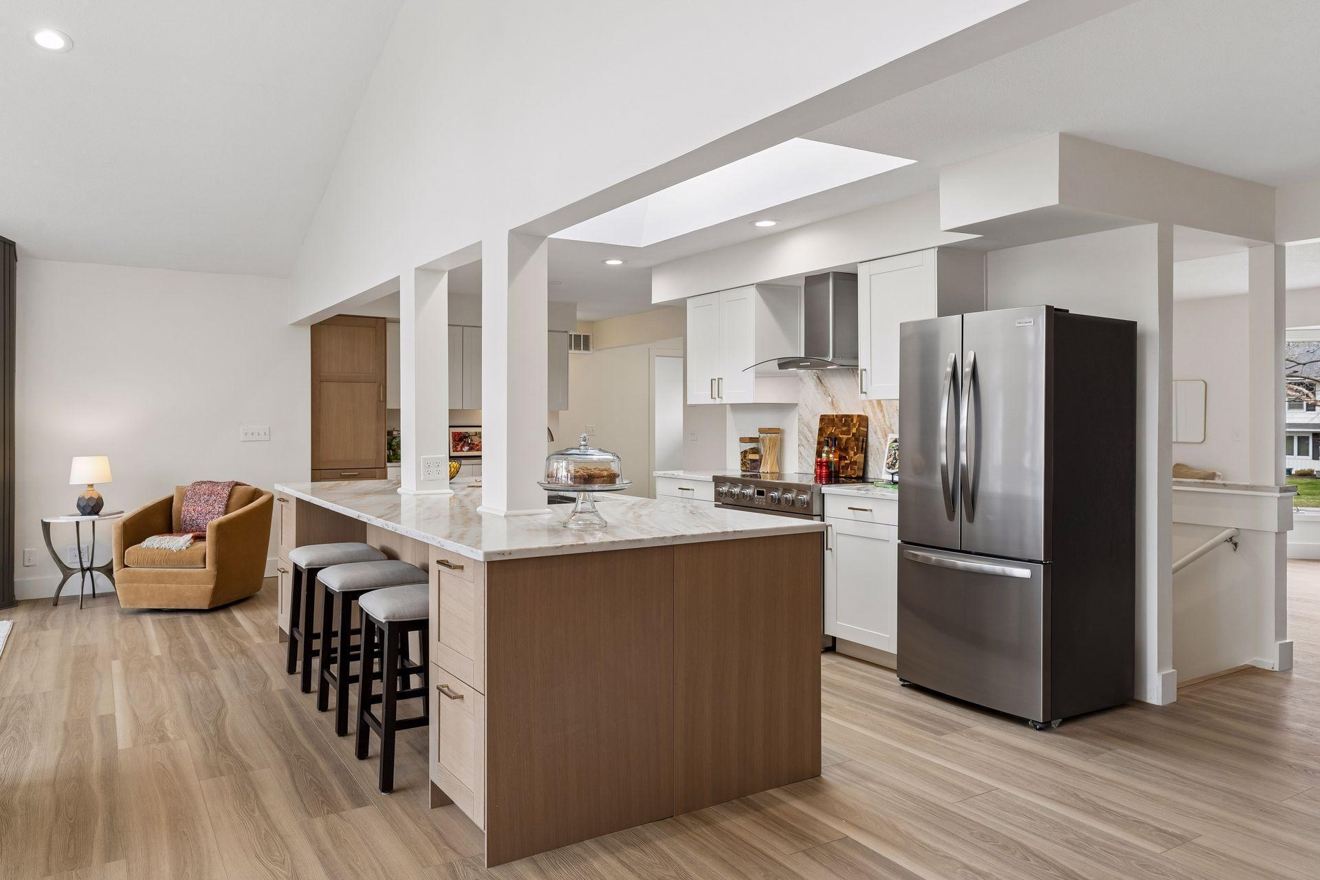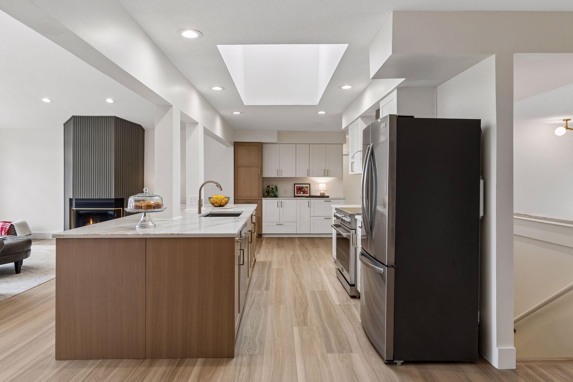 An incredible transformation of this mid-century modern home into a stunning, move-in-ready retreat designed for today's buyer. The sun-drenched great room features expansive windows that fill the space with natural light from morning to evening, creating an immediate sense of calm the moment you step inside. Thoughtfully updated throughout, the home offers four brand-new bathrooms, a main-floor office, and three fireplaces that add warmth and character. The fully renovated kitchen, along with new flooring and trim, reflects both quality and style-every detail carefully considered. Step outside to enjoy the exceptional outdoor living spaces, including a three-season gazebo, and expansive deck perfect for entertaining, and a private backyard that offers both tranquility and space.