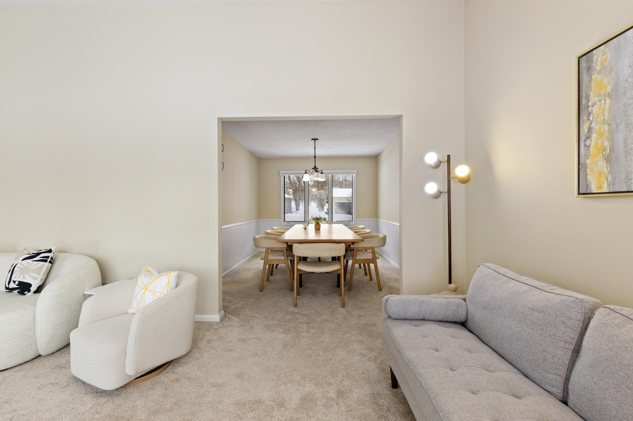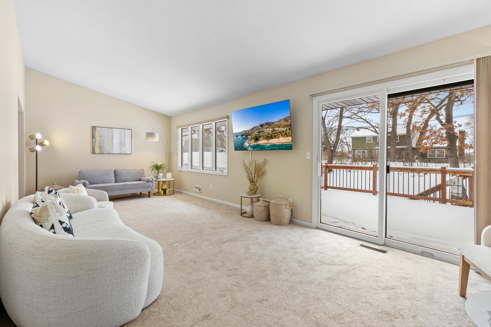 Welcome to this beautifully maintained 3- bedroom, 2-bathroom home featuring an oversized heated 2-car garage, located in a spacious and desirable neighborhood! Enjoy an inviting and open living room with vaulted ceiling that create a bright and airy feel. The home also offers a separate formal dining room - perfect for entertaining family and guests. The lower-level family room provides additional living space and features a cozy fireplace. Step outside to a private backyard complete with a generously sized deck and mature trees, offering both shade and privacy for outdoor gatherings or peaceful mornings. Conveniently located near Hardin Park, Summit Park Swimming Beach, downtown Long Lake, and local restaurants. Close to Luce Line trail and downtown Wayzata. This home offers comfort, space, and a fantastic location - a must see!