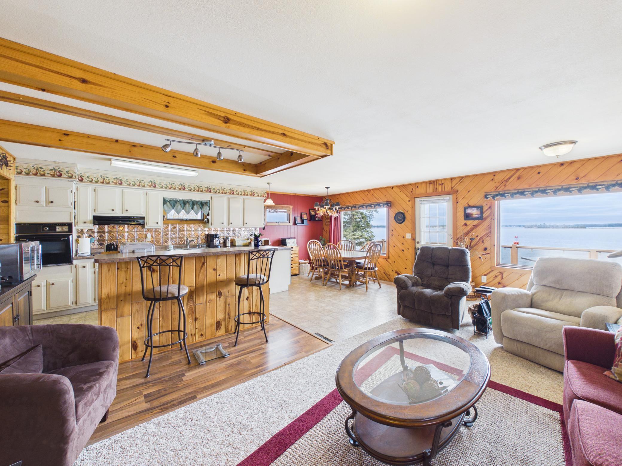 Set on nearly 2 acres of land with 80 feet of prime north-facing lakeshore, the property offers a peaceful setting and beautiful water views. The home features 2 bedrooms and 1 full bathroom, with an open kitchen and dining area designed to take full advantage of the scenic lakefront.