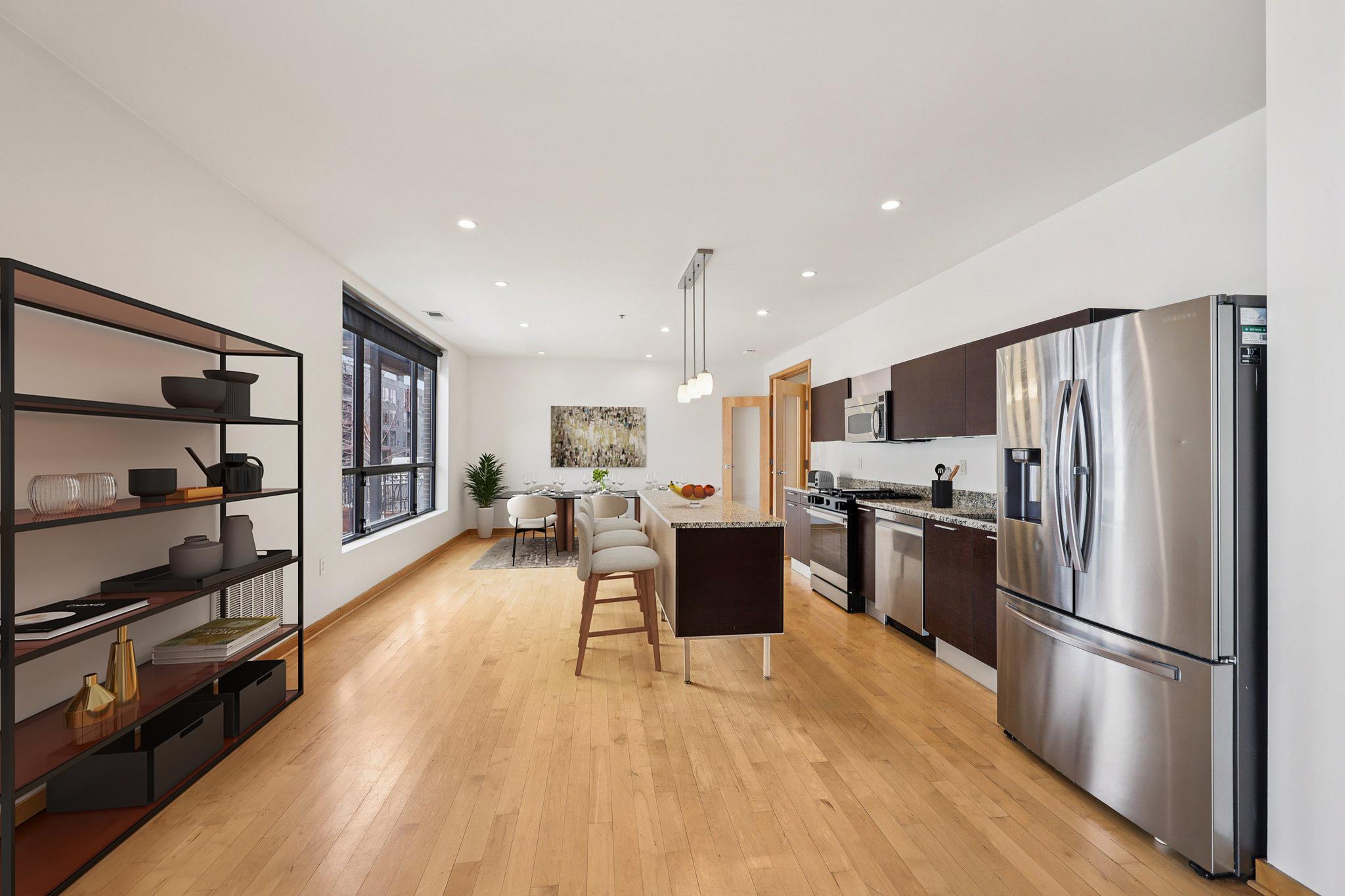 Public Remarks: This home offers a perfect combination of style and functionality. The open floor plan allows for seamless transitions between the living, dining, and kitchen areas, making it ideal for both everyday living and entertaining. The kitchen is well-equipped with modern finishes, plenty of counter space, a center island and newly updated/upgraded appliances. The bedrooms are spacious and comfortable, with the primary featuring a private ensuite bathroom and walk-in closet with laundry. The large and private balcony with western exposure is perfect for relaxing or grilling. The entire condo was freshly painted and is light and bright!. A dedicated underground heated parking stall and a storage unit included with the sale.