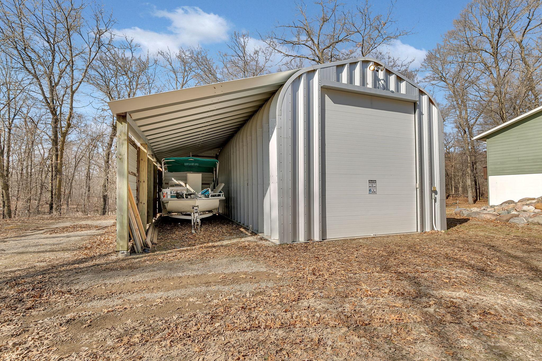 Incredible outbuilding space includes a 36x20 insulated quonset with electric, water, and septic, plus a 36x12 lean-to and 14x12 storage shed—perfect for hobbies, storage, or workspace needs.