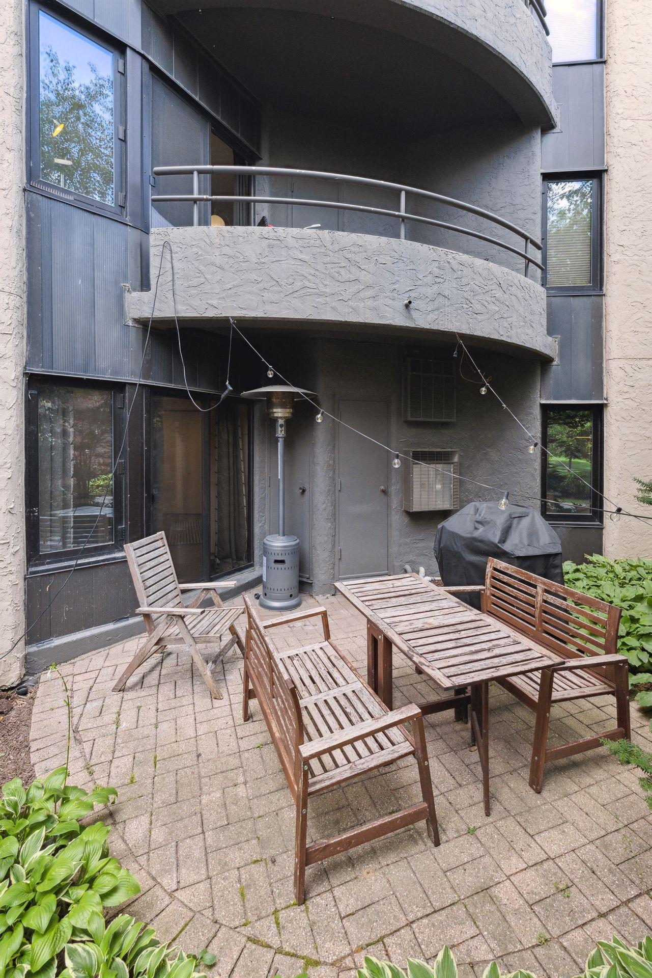 Public Remarks: Main floor condo with private patio provides fresh air and nature right outside your door. Noise buffering concrete walls, and updated flooring throughout - hardwood on the main and vinyl on second level. The two story layout allows