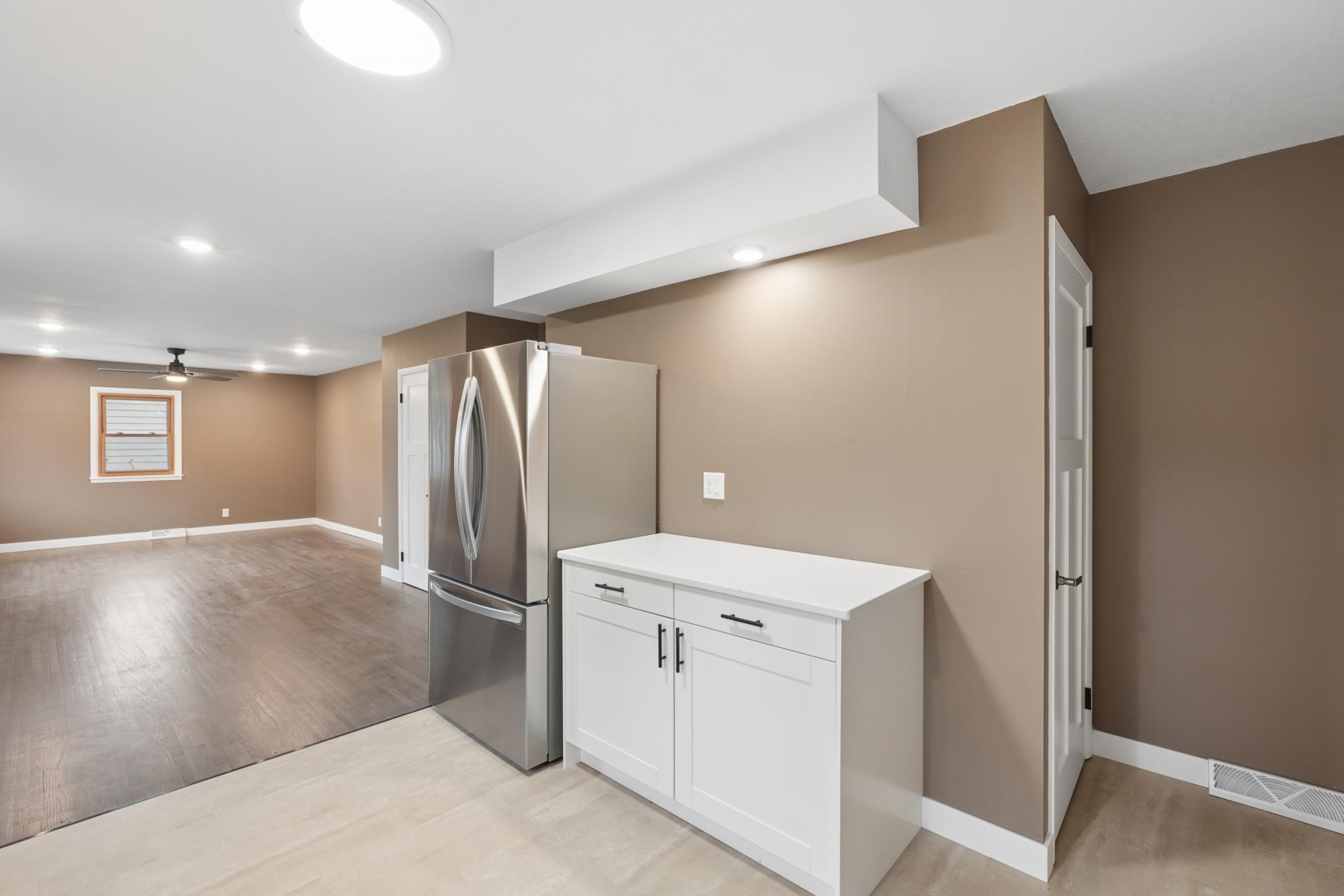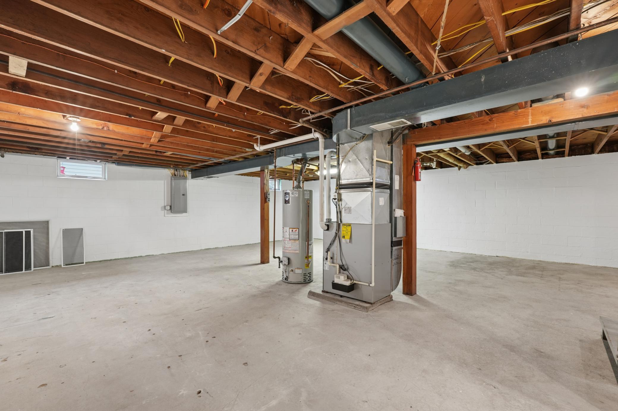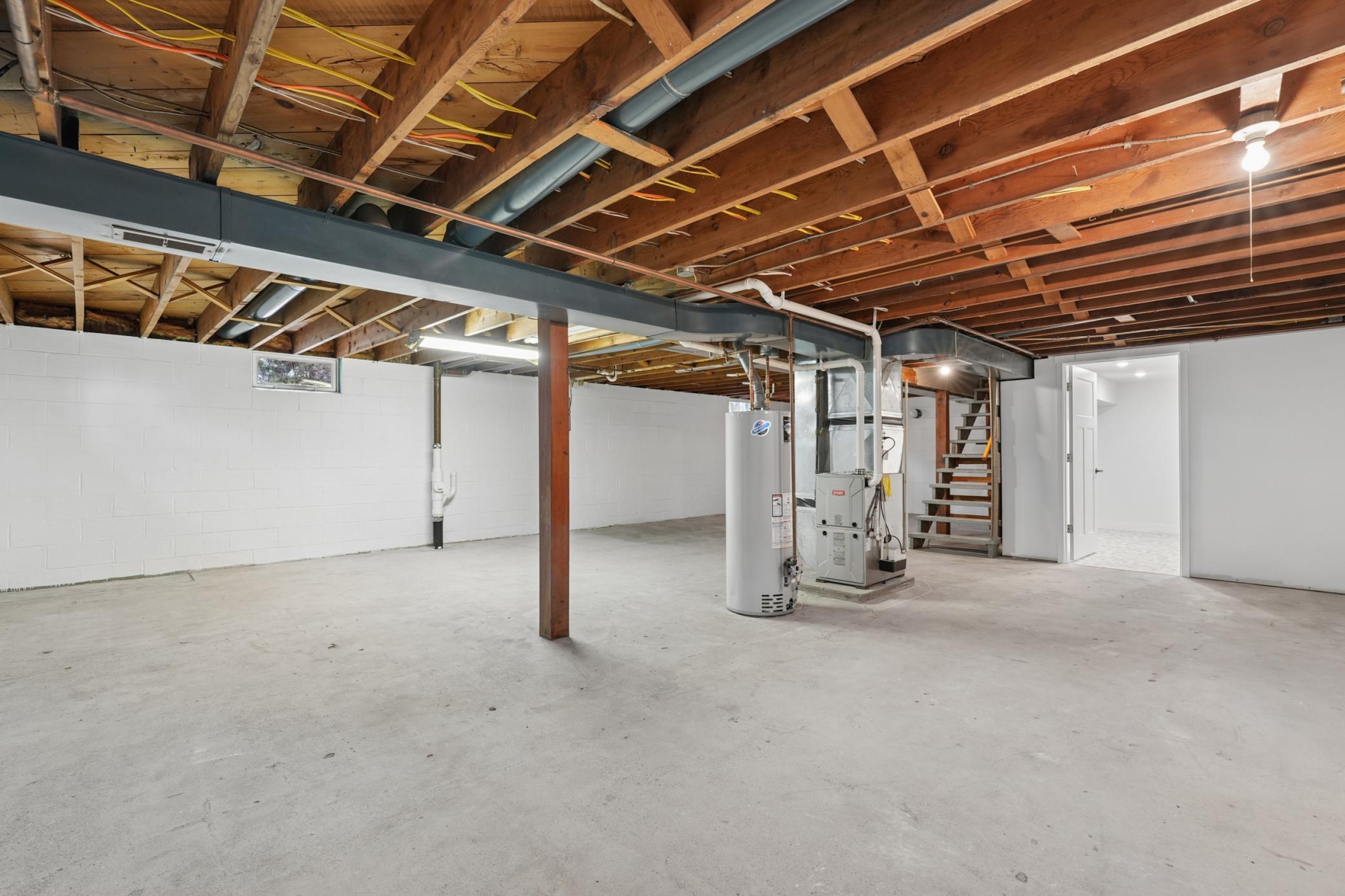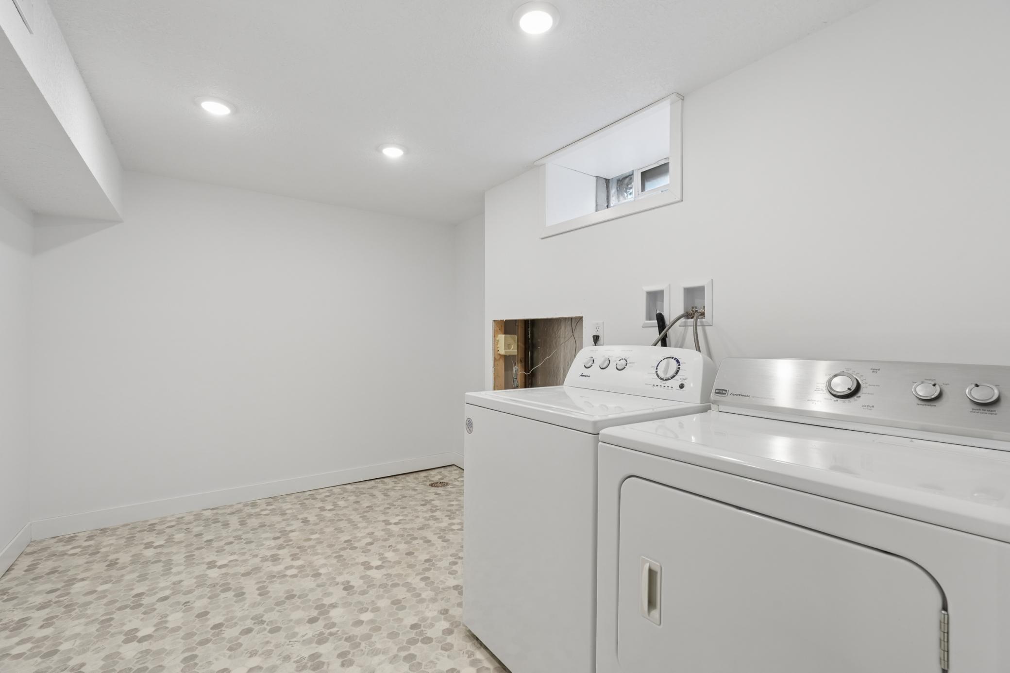 The lower level offers a clean, bright, and usable laundry area with washer and dryer included, plus ample space for storage or future finishing.