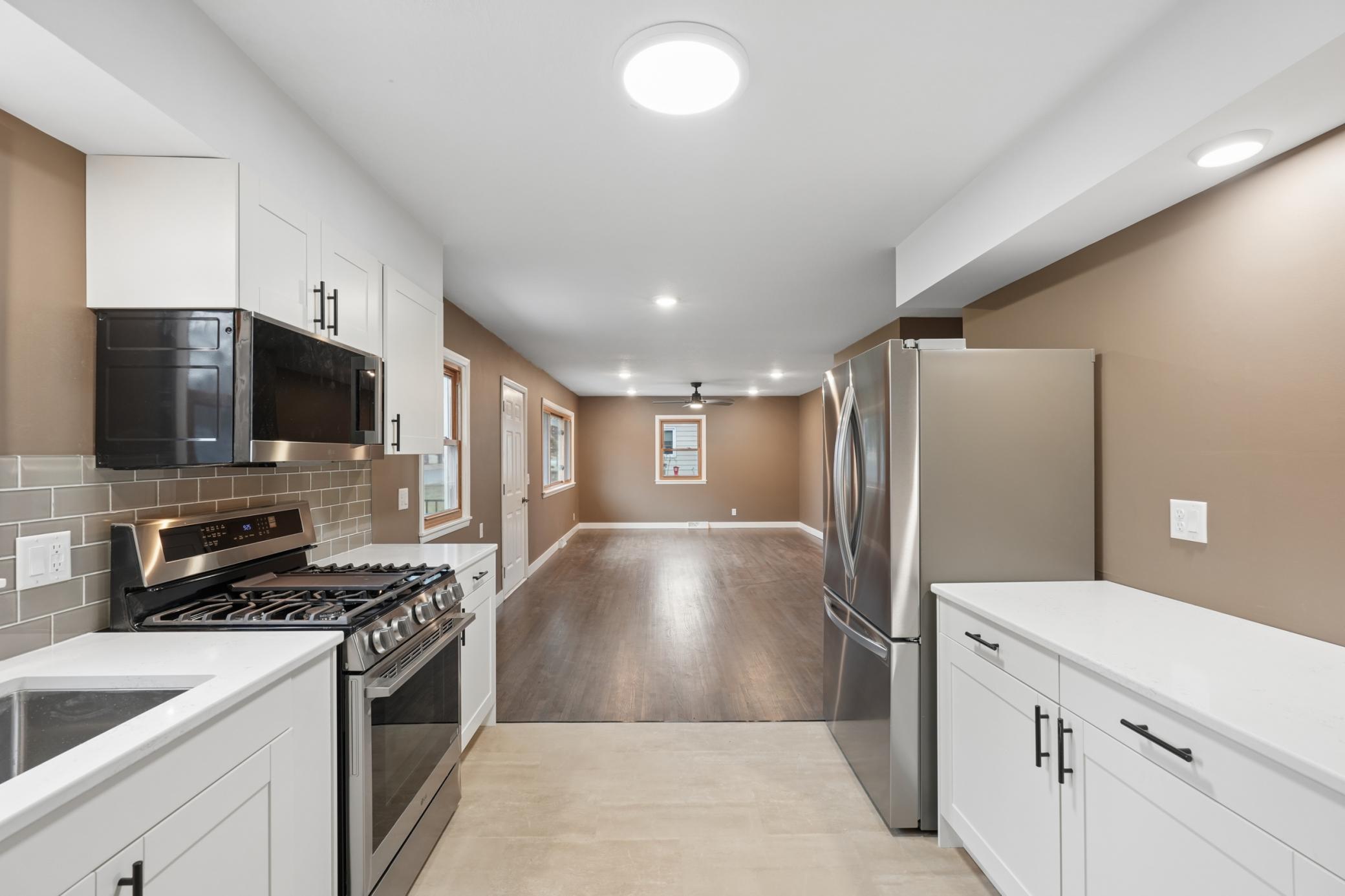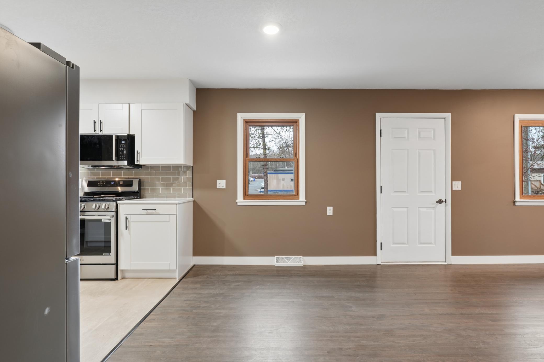 Beautifully remodeled one-story home set on a beautiful 0.42 acre lot. This move-in ready property blends classic charm with modern updates, featuring gorgeous refinished original hardwood floors & freshly painted interior through-out. The kitchen has been completely updated with stunning white cabinetry, added pantry storage, new flooring, stainless steel appliances, and updated fixtures. Enjoy the newly constructed maintenance free front porch and welcoming sidewalk entrance, along with all new landscaping that enhances the home’s curb appeal. Additional updates include new gutters, new garage doors, updated 200-amp electrical service, a newer furnace (2019) natural gas water heater (2023). The lower level offers a clean, bright, and usable laundry area with washer and dryer included, plus ample space for storage or future finishing. Situated on nearly half an acre, this property offers space, updates, and comfort ready for its next owner to move in and enjoy