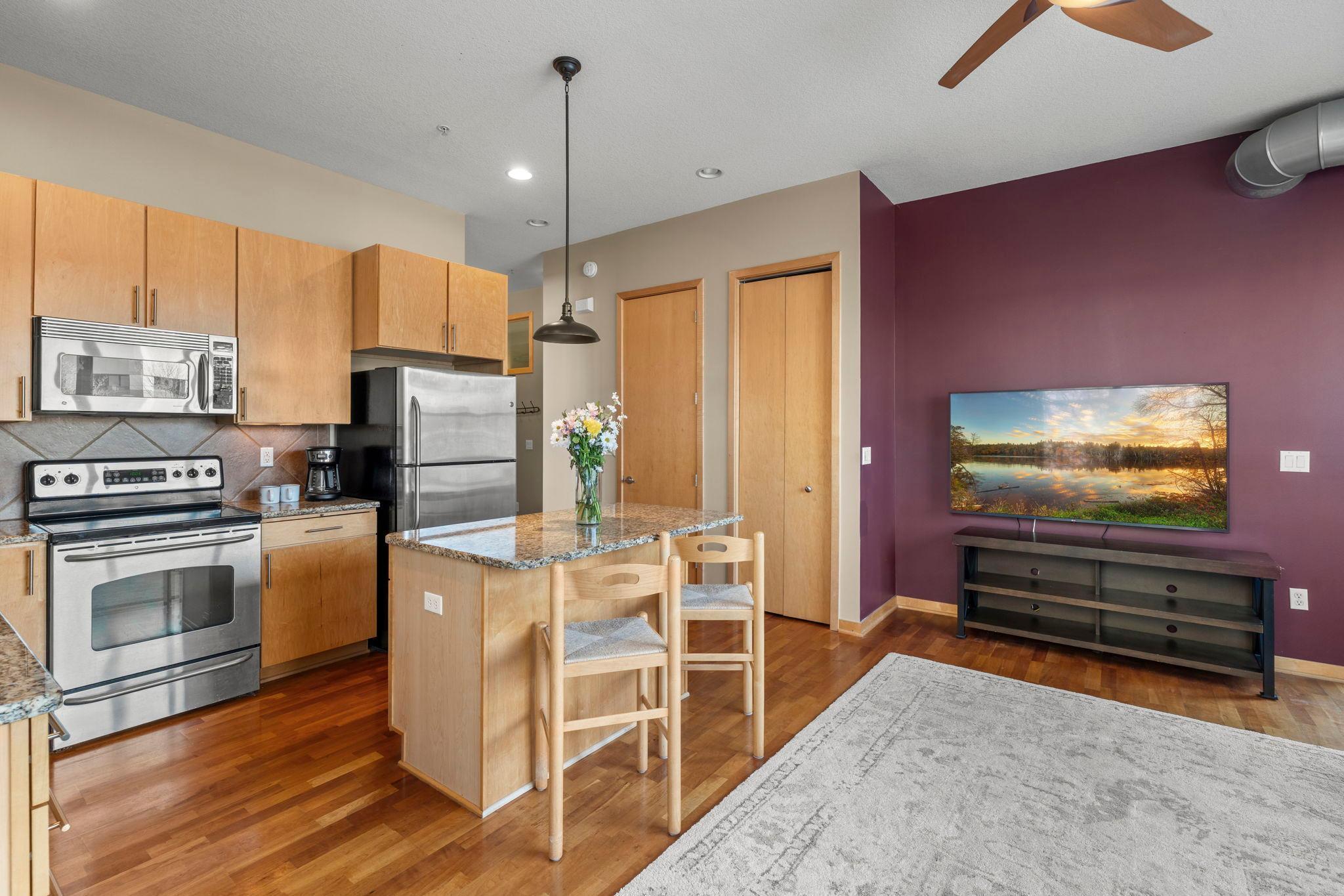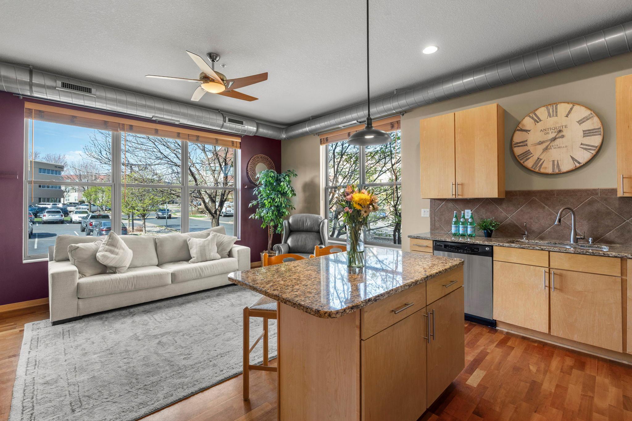 Public Remarks: This rare two-bedroom, corner-unit condo in St. Louis Park is filled with natural light and offers a perfect balance of spacious living and modern style in a fantastic location. Soaring loft-style ceilings and oversized windows create an open, inviting feel throughout the home.