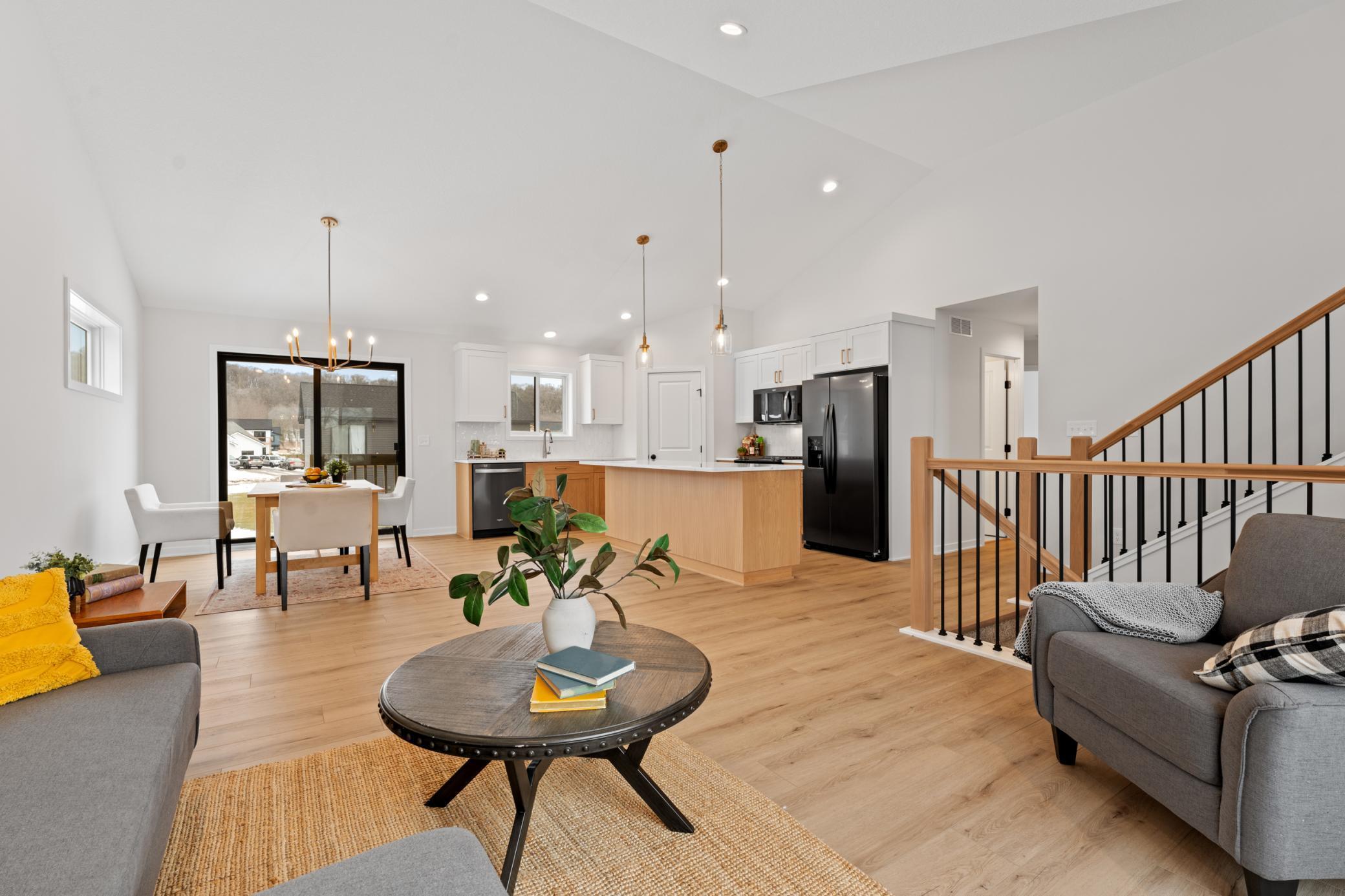 Welcome to this beautifully crafted new construction home offering space, style, and modern comfort. This thoughtfully designed 3-level split features 5 bedrooms, 3 bathrooms, and a spacious 3-car garage, perfect for today’s lifestyle. The open-concept main level is filled with natural light and showcases vaulted ceilings, creating an airy, expansive feel ideal for entertaining or everyday living. The kitchen flows seamlessly into the dining and living areas, making this home as functional as it is inviting. The entire top level is dedicated to a private master suite retreat, offering exceptional privacy and comfort, with ample space for a luxurious bedroom, walk-in closet, and large bathroom. Downstairs, the oversized family room provides the perfect place to relax, featuring a cozy gas fireplace ideal for movie nights or gatherings. Additional bedrooms and bathrooms are thoughtfully laid out to accommodate family, guests, or a home office. With quality craftsmanship throughout and a smart, versatile floor plan, this home delivers modern living at its best. Don’t miss the opportunity to own this exceptional new construction property.