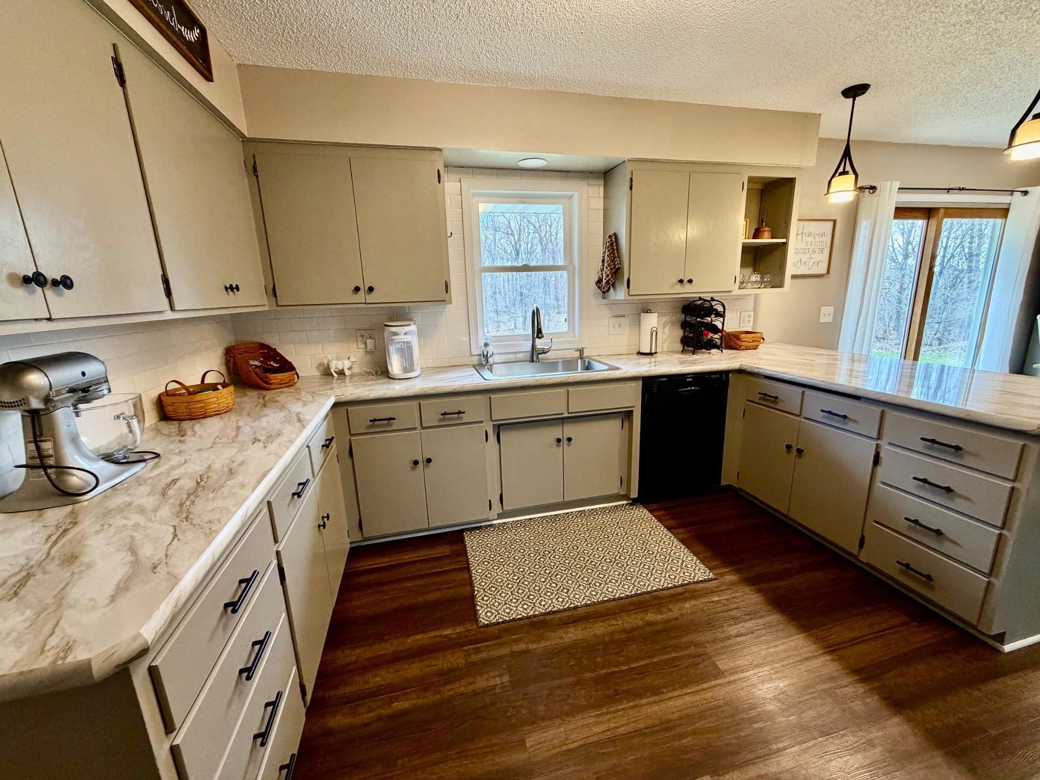 Experience private country living just minutes from town, schools, and I-35 on this stunning 10-acre property with a private pond and daily wildlife sightings. This updated 4 bedroom, 2 bath home offers a rare combination of land, water, and convenience—more than a home, it’s a lifestyle. Outside, you’ll appreciate the restructured garage with new header, framing for two 8x10 insulated doors, new siding (2/26), plus new roof, gutters, windows, and added 24" of attic insulation (12/25) for comfort and efficiency. Inside, enjoy fresh, durable LVP flooring, updated bedrooms with knockdown ceilings (upper level), new sheetrock, paint, flooring, and windows, along with a refreshed kitchen featuring subway tile, new sink and window, paint, microwave, and range. The living room offers a large picture bay window, while the family room features a new picture window framing serene pond views—perfect for relaxing or entertaining. Lower level spaces include upgraded flooring, paint, and windows in the bedrooms, a refreshed ¾ bath with new flooring, toilet, and window, plus practical mechanical updates: new washer and laundry tub/faucet (11/25), new water softener (12/25), new gas water heater (3/26), and a new mini split with heat and A/C (4/26). With room to grow and space to roam, this one-of-a-kind property is ready for your next chapter—come see it for yourself and schedule your showing today. Agent to verify all measurements