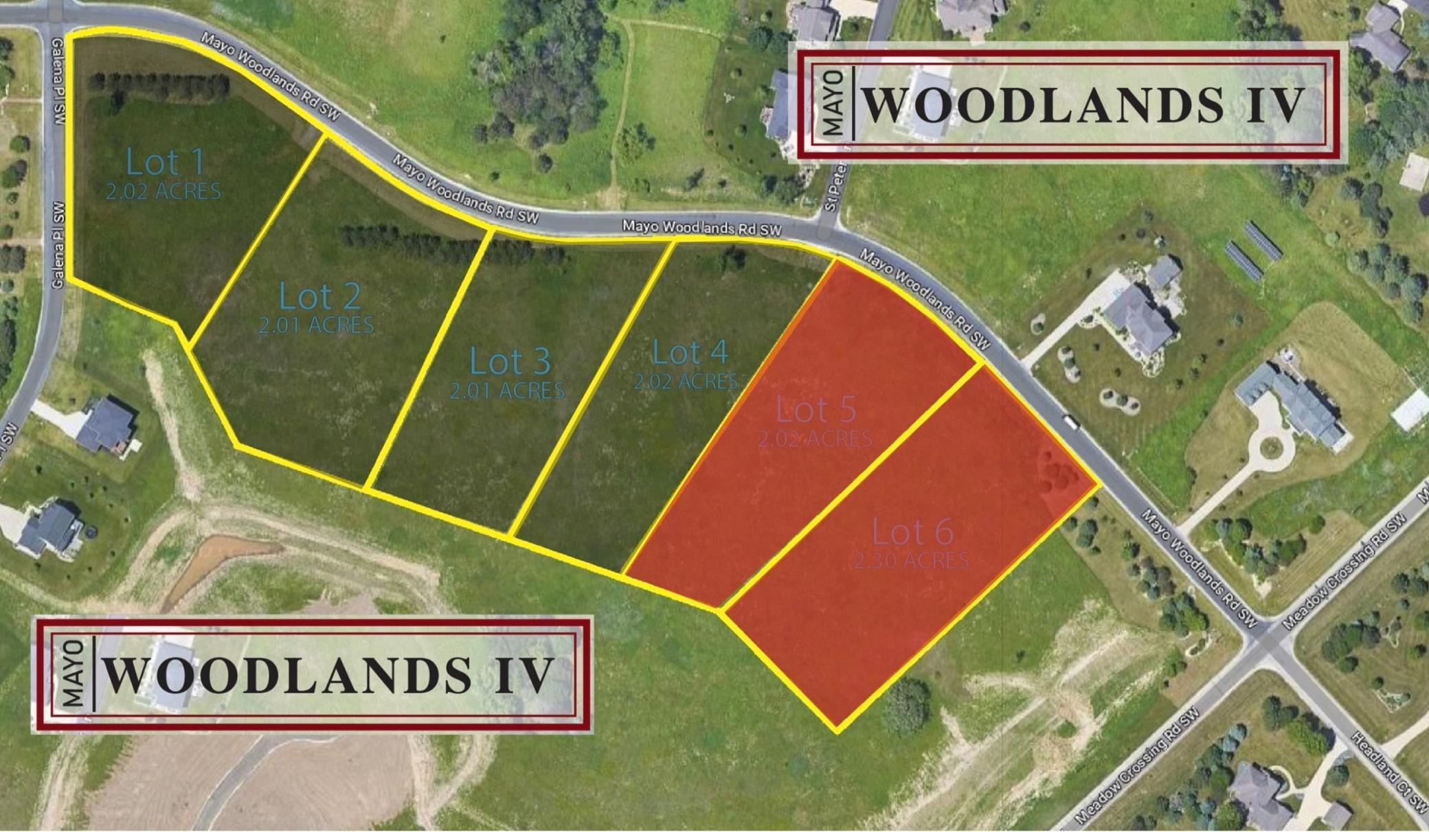 2 acre lot in desirable Mayo Woodlands 4th offers daylight window or level lot to build your dream home and have plenty of space to design your outdoor living space that works for your lifestyle. Open to builders and within minutes to downtown Rochester.