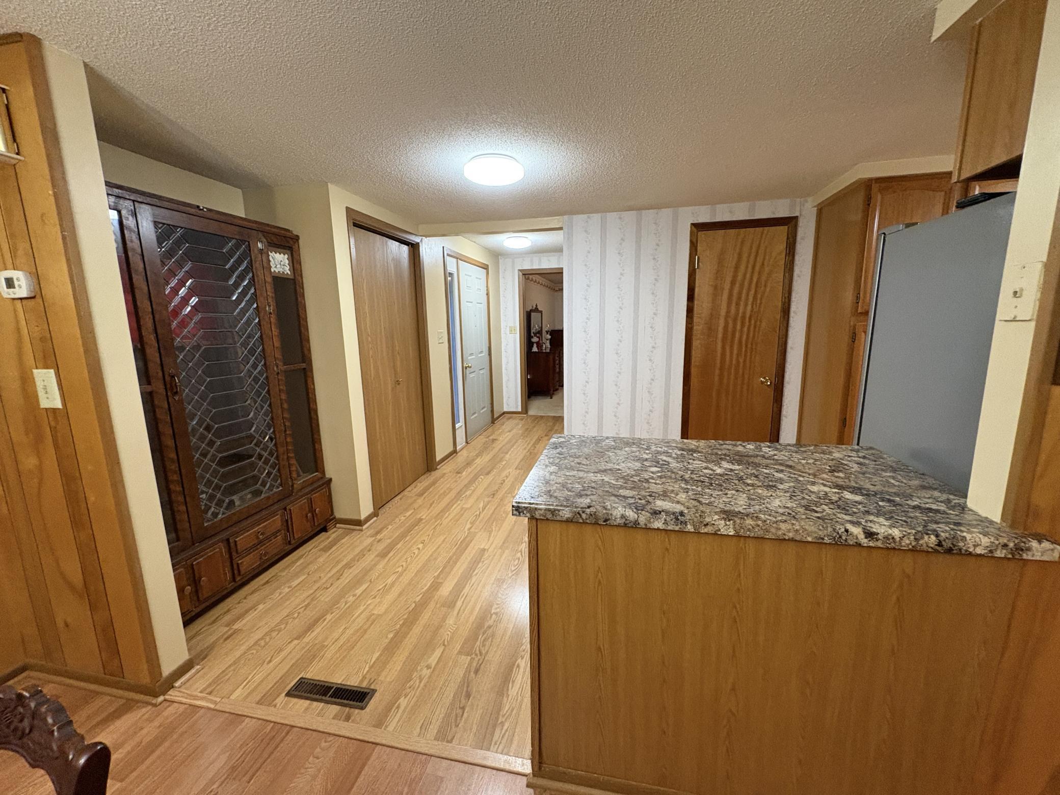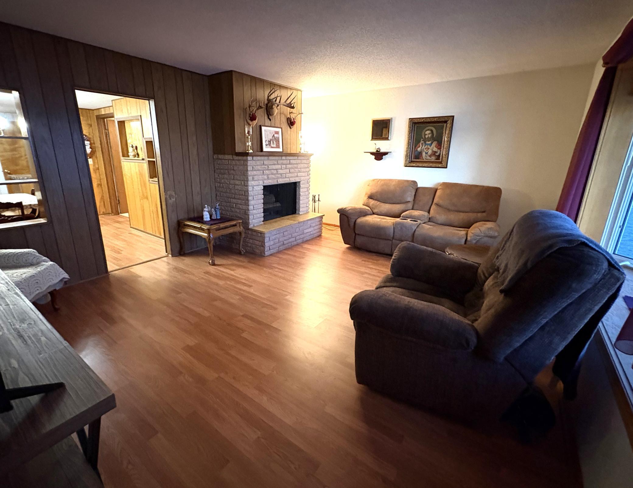 Enjoy lakeside living in this lovely rambler style home on 50 feet of south-facing shoreline on Eagle Lake in Willmar! Perfectly located between Willmar and Spicer, this property offers beautiful views, beautiful southern and western sunshine, and the convenience of main level living with the dining, kitchen, 2 bedrooms and 1 full bath all on the main level. The main floor features 2 bedrooms and a full bath, along with a spacious L-shaped kitchen that has an eat-in dining area. Completing the kitchen is a newer dishwasher, gas stove/oven, refrigerator and microwave. The living room showcases a large bay window with stunning and open panoramic view of Eagle Lake, facing south so there is plenty of natural sunlight all day long. The living room also has a lovely hand-built wood-burning brick fireplace with Kasota stone hearth that really makes a statement. The formal dining area features a handcrafted built-in corner china cabinet adding warmth, character, and storage. Newer laminate flooring runs through much of the main level. Bedrooms are carpeted and have good sized closets including 2 separate closets in main bedroom with built-in shelving. Step outside to enjoy the beautiful yard with landscaping and a 14x11 lakeside patio that is perfect for relaxing, entertaining, and taking in the south-facing lake views. A newer 248 sq ft deck is directly adjacent to the kitchen and partly roofed- even in the rain you can grill supper. A small porch is off to the west side walks into a large foyer to home and has direct access to closet space for clothes and shoes. The garage is a 2-stall detached garage with newer doors and garage door openers. Property also has concrete sidewalks, newer concrete apron approach in front of the garage to reduce gravel drag into the garage, and plenty of off-street parking. *Not directly located on highway nor street, so the result is a more quiet and lower traffic location. The property also includes a newer aluminum dock system with a dock bench (dock is less than 1 year old- four sections) so you can go fishing on a whim and relax on the dock bench in sunshine and comfort on this great fishing lake! (You are on the north side of Eagle for even better fishing!) Don’t forget the great ice fishing in winter. Eagle is a great recreational lake for skiing and boating with the added bonuses of awesome fishing and a great location. Whether you're looking for a year-round home, a perfect lake getaway for summer, or a place to settle in for cozy winter holidays and ice-fishing with the family, this property is ready for you to move in and enjoy! And don’t forget the paved Glacial Lakes Trail access is a short 225 (+-) feet away! What that means to an owner is there is direct access to biking, rollerblading, walking, running, jogging, dog walking, snowmobiling and even horseback trails. Map of trail is included in listing photos. *Basement could be finished off for additional bedroom and/or living space but currently has no egress windows. There is a room that has been walled off, has a closet and has been used as a bedroom for years but does not have flooring or an egress window. A 2nd room has been walled off with a closet also used once as a bedroom but currently an office/storage no egress window. There is potential for a living space to be finished.