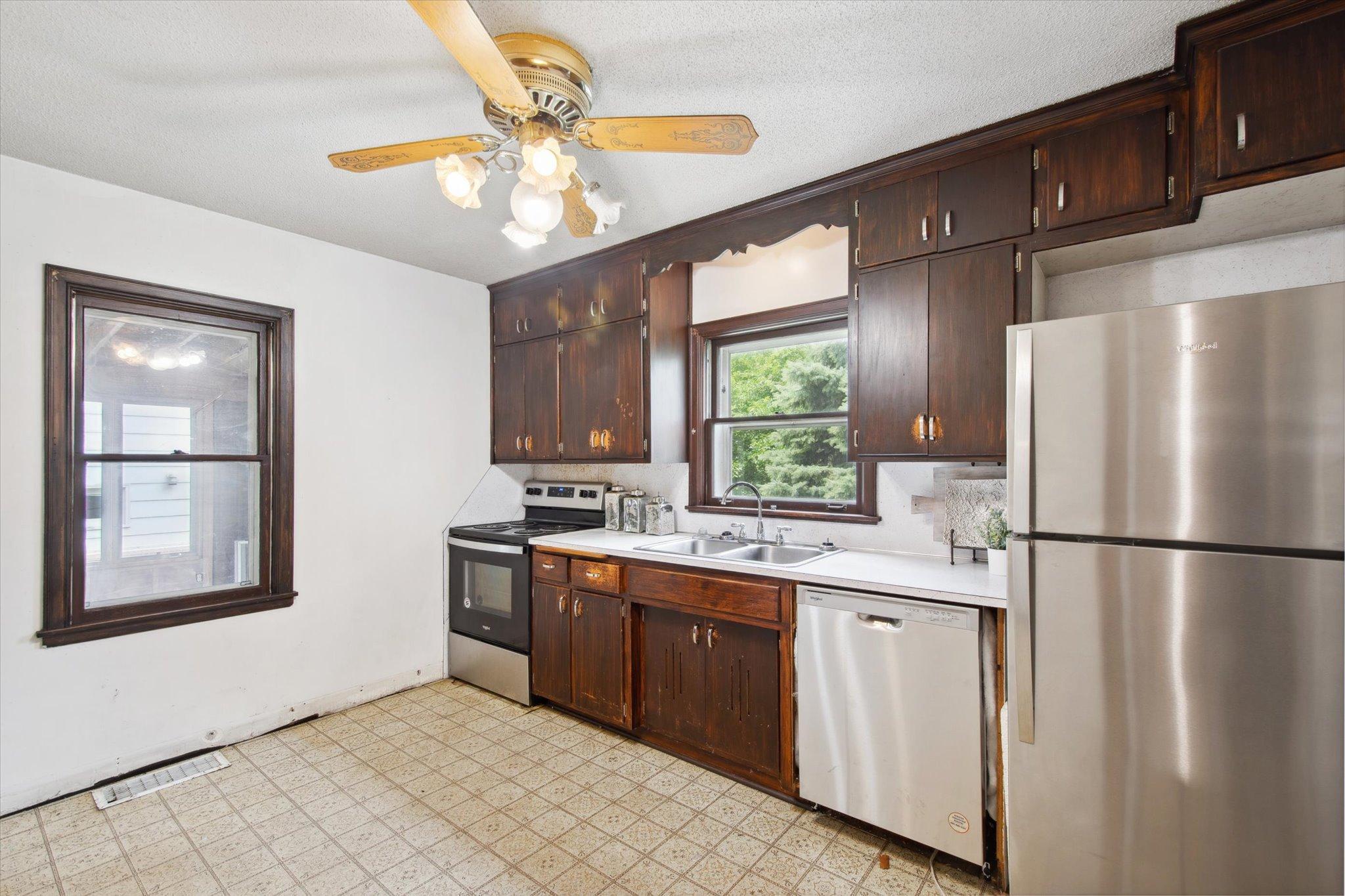 Public Remarks: This 4 bed, 2 bath home needs your personal touch! Come and see the equity opportunity here! Home needs work but has a nice layout with 3 bedrooms upstairs and a main floor bedroom as well! Large living and dining area and a basement has room for a nice family room! Finish off the added 3 season porch and enjoy the huge 2 stall garage! New roof on the 3 season porch.