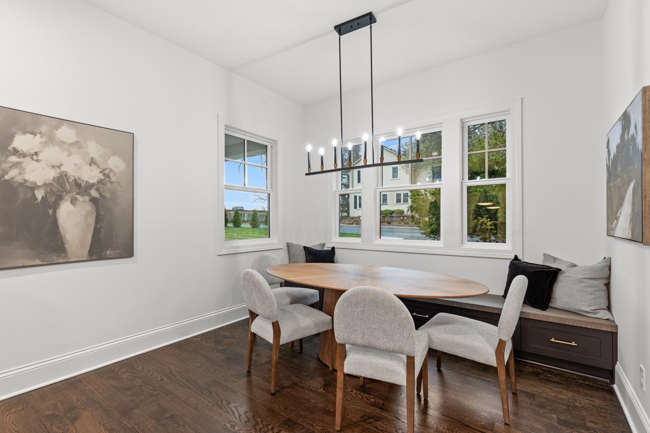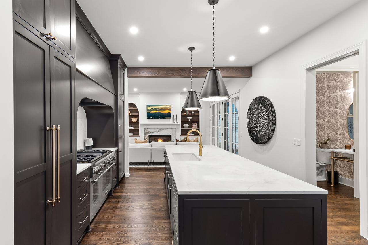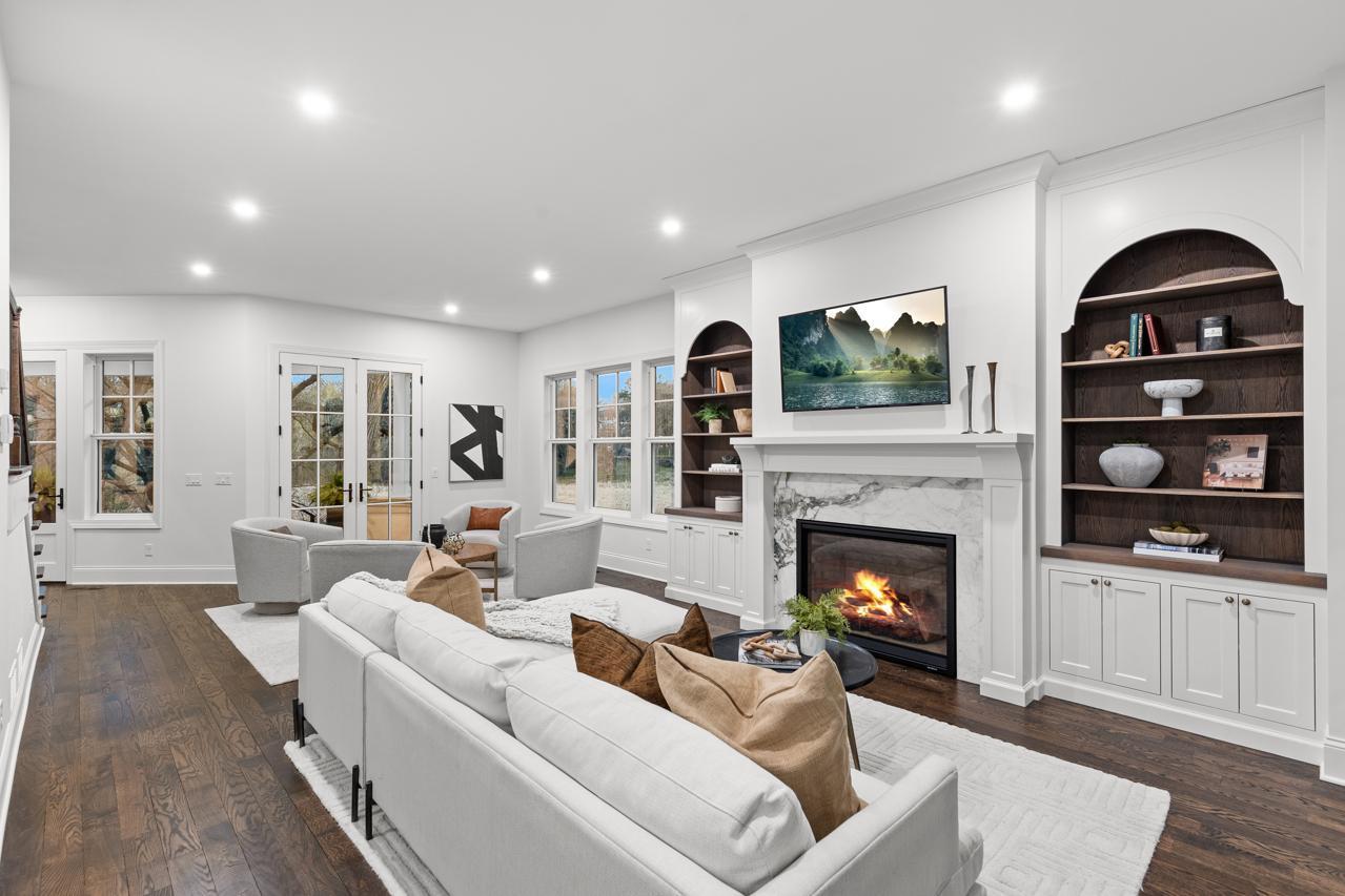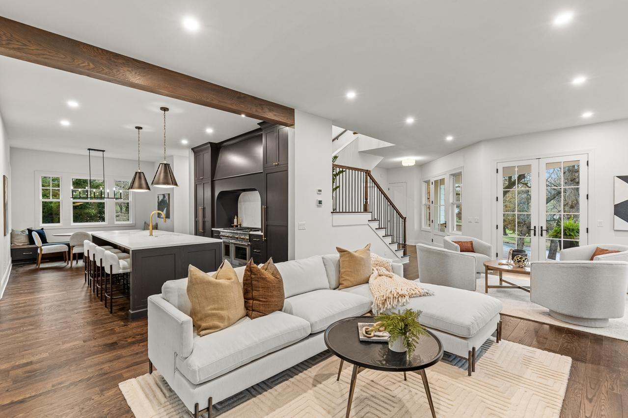 Gorgeous, custom 2-story home by Black Diamond Construction (with interior design by Kim Niosi) in Edina’s White Oaks neighborhood with convenient walkable access to the shops, restaurants, and everyday amenities of 50th & France. Thoughtfully designed and well executed, the home offers modern architecture, quality construction, and everyday comfort in a gorgeous setting. Large Kolbe Forgent Series windows and doors bring in abundant natural light while framing views of the adjacent marshland, where wildlife and changing seasons provide a peaceful backdrop. The main level features an open layout centered around a well-appointed kitchen with Thermador refrigerator and freezer concealed behind custom wood cabinetry, stone countertops, a generous center island, and a high-capacity exhaust hood. A separate food pantry and a butler’s pantry with prep space, dishwasher, and wine refrigerator support both daily living and entertaining. The living room boasts 10-foot ceilings, built-in cabinetry surrounding the fireplace, and inset French doors that create long sightlines from the front porch through to the backyard. Doors off the main living area lead to a screened porch finished with stamped concrete flooring and a Phantom retractable screen system. Upstairs, the primary suite is oriented toward the marsh with a private balcony that overlooks the beautiful natural setting. The primary suite connects to a spacious dressing area and an oversized upper-level laundry room finished with custom tile and equipped with dual washers and dryers. Bathrooms throughout the home feature individually selected tile designs, marble shower surrounds, and low-iron shower glass for a clear, refined finish. The lower level includes a family room with wet bar, a dedicated fitness room, and flexible living space suitable for both everyday use and entertaining. Mechanical features include a high-efficiency multi-stage furnace, whole-home air exchange system, radon mitigation, and fiber-optic wiring to the office. A heated four-car garage with capacity for up to six vehicles offers uncommon flexibility. The space includes EV-charging capability, interior water access, integrated floor drainage tied to an underground system, and a two-story section suitable for recreational use or hobbies. A custom 18-foot garage door opens vertically to preserve overhead clearance. Exterior infrastructure includes interior and exterior drain tile systems, underground water management, new sod and irrigation, covered gutters designed for mature trees, and a professionally managed plan protecting a century-old White Oak along with newly planted landscaping. The property combines modern design, natural views, and walkable convenience within a quiet residential setting, offering a distinctive opportunity in one of Edina’s most established neighborhoods.