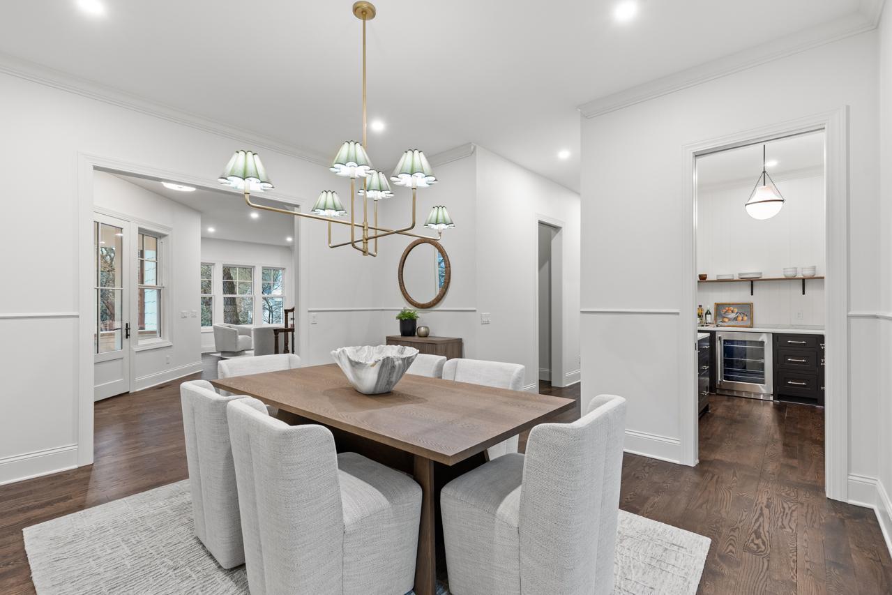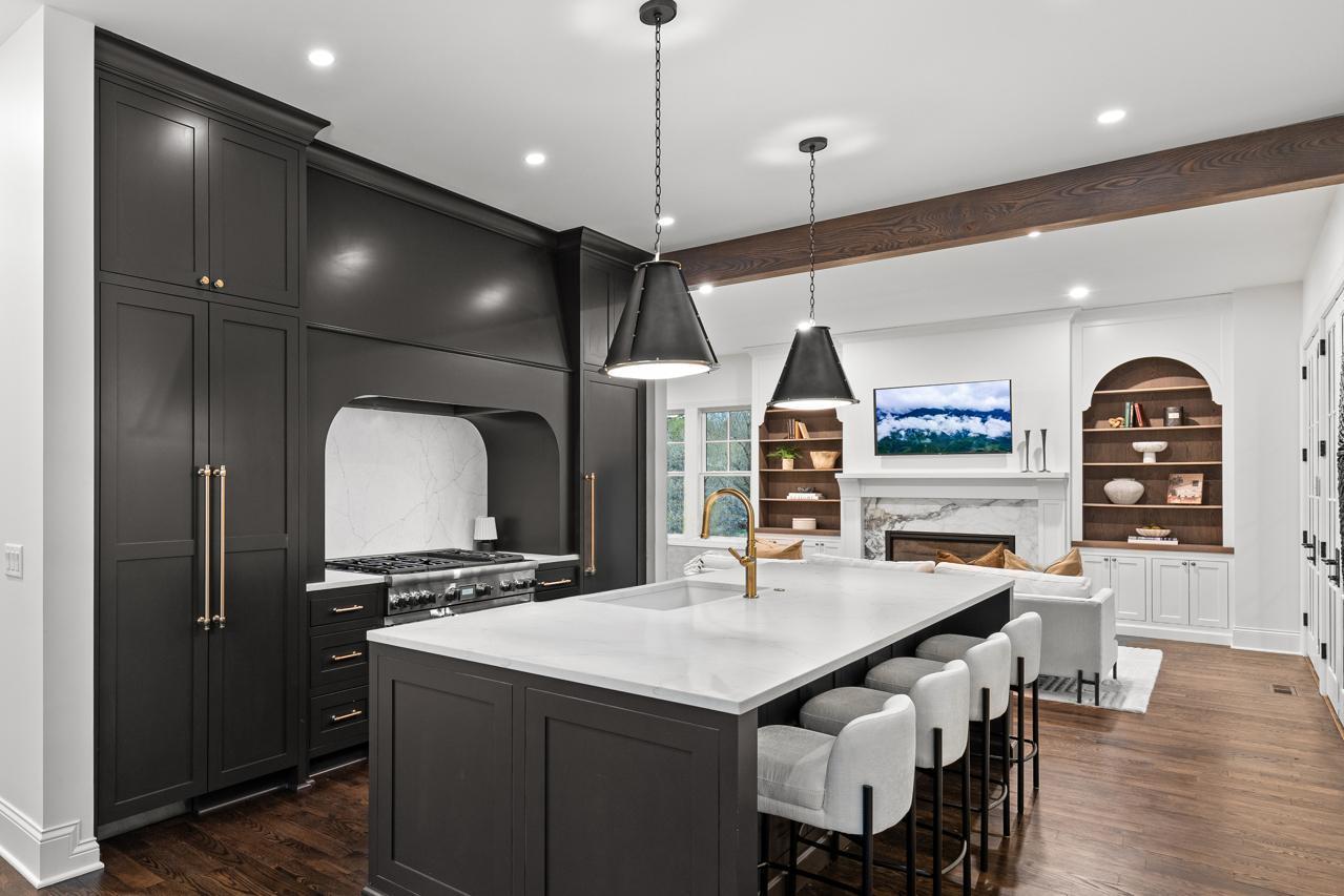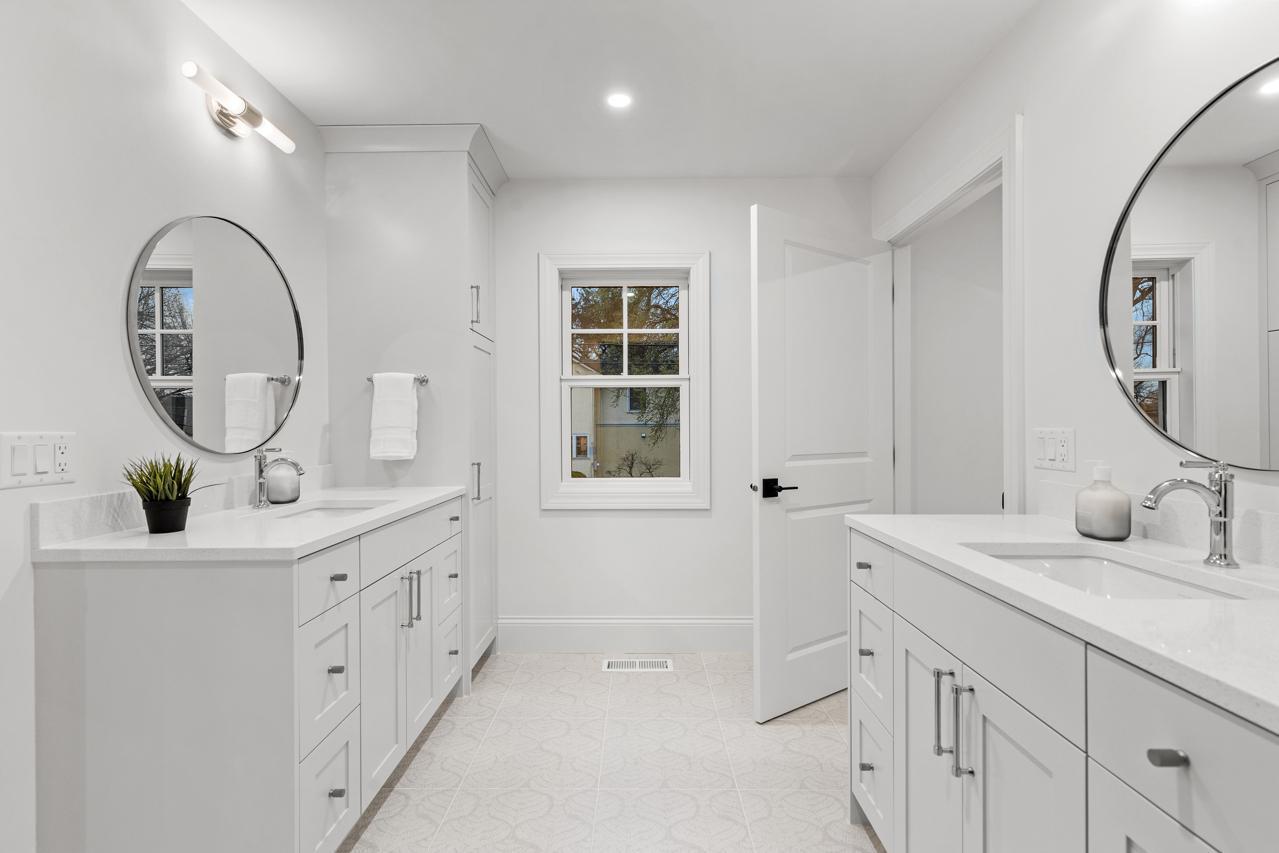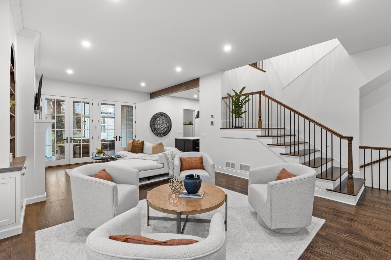 Gorgeous, custom 2-story home by Black Diamond Construction (with interior design by Kim Niosi) in Edina’s White Oaks neighborhood with convenient walkable access to the shops, restaurants, and everyday amenities of 50th & France. Thoughtfully designed and well executed, the home offers modern architecture, quality construction, and everyday comfort in a gorgeous setting. Large Kolbe Forgent Series windows and doors bring in abundant natural light while framing views of the adjacent marshland, where wildlife and changing seasons provide a peaceful backdrop. The main level features an open layout centered around a well-appointed kitchen with Thermador refrigerator and freezer concealed behind custom wood cabinetry, stone countertops, a generous center island, and a high-capacity exhaust hood. A separate food pantry and a butler’s pantry with prep space, dishwasher, and wine refrigerator support both daily living and entertaining. The living room boasts 10-foot ceilings, built-in cabinetry surrounding the fireplace, and inset French doors that create long sightlines from the front porch through to the backyard. Doors off the main living area lead to a screened porch finished with stamped concrete flooring and a Phantom retractable screen system. Upstairs, the primary suite is oriented toward the marsh with a private balcony that overlooks the beautiful natural setting. The primary suite connects to a spacious dressing area and an oversized upper-level laundry room finished with custom tile and equipped with dual washers and dryers. Bathrooms throughout the home feature individually selected tile designs, marble shower surrounds, and low-iron shower glass for a clear, refined finish. The lower level includes a family room with wet bar, a dedicated fitness room, and flexible living space suitable for both everyday use and entertaining. Mechanical features include a high-efficiency multi-stage furnace, whole-home air exchange system, radon mitigation, and fiber-optic wiring to the office. A heated four-car garage with capacity for up to six vehicles offers uncommon flexibility. The space includes EV-charging capability, interior water access, integrated floor drainage tied to an underground system, and a two-story section suitable for recreational use or hobbies. A custom 18-foot garage door opens vertically to preserve overhead clearance. Exterior infrastructure includes interior and exterior drain tile systems, underground water management, new sod and irrigation, covered gutters designed for mature trees, and a professionally managed plan protecting a century-old White Oak along with newly planted landscaping. The property combines modern design, natural views, and walkable convenience within a quiet residential setting, offering a distinctive opportunity in one of Edina’s most established neighborhoods.