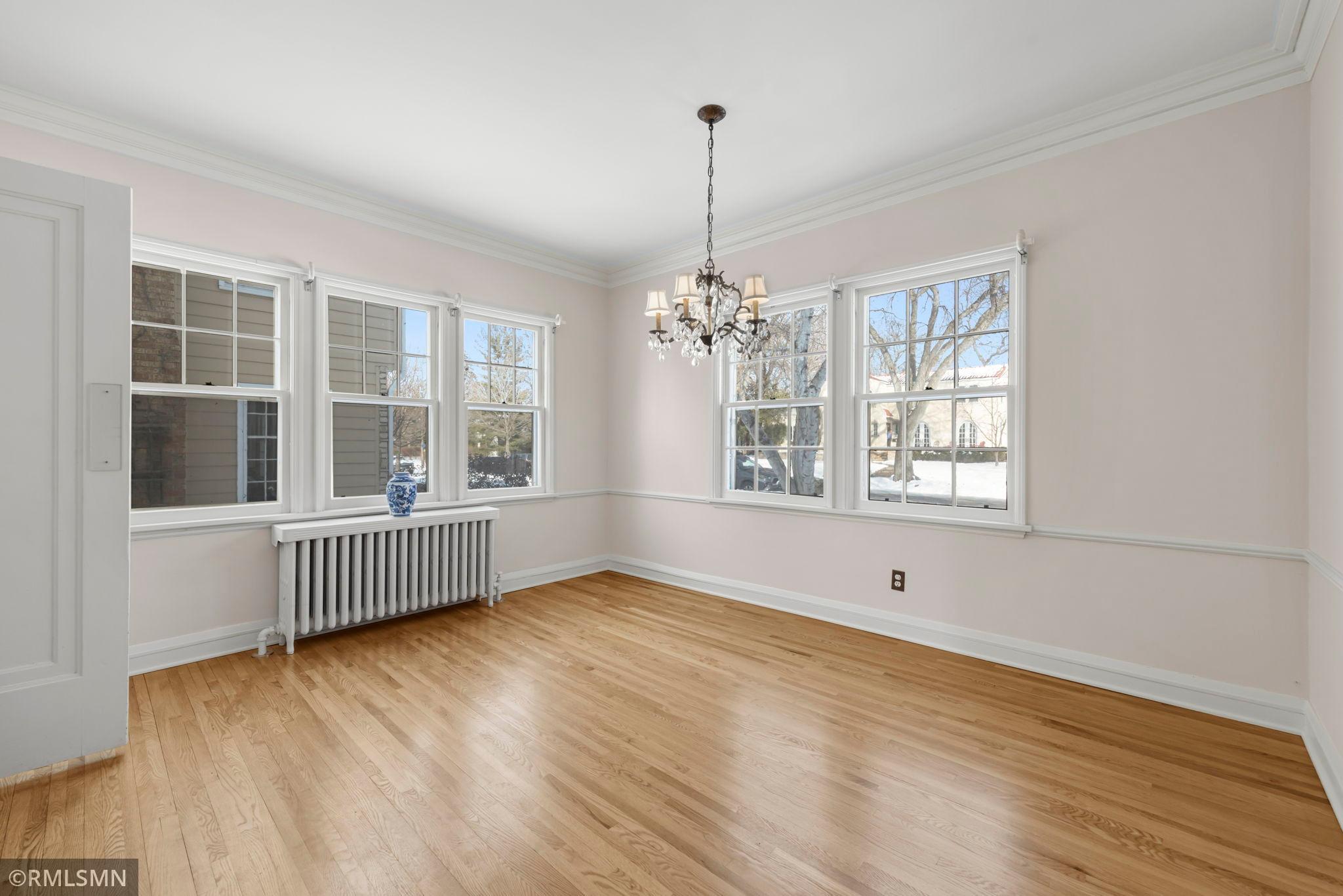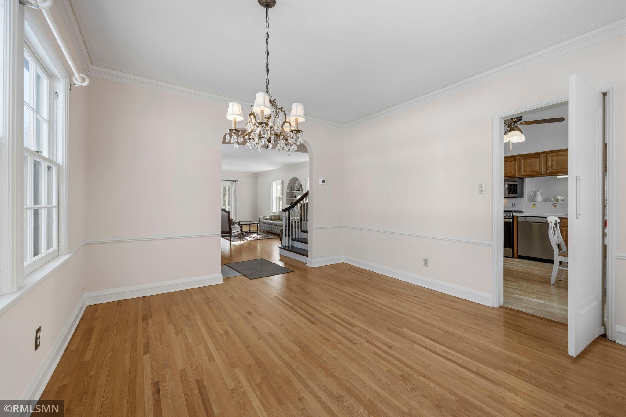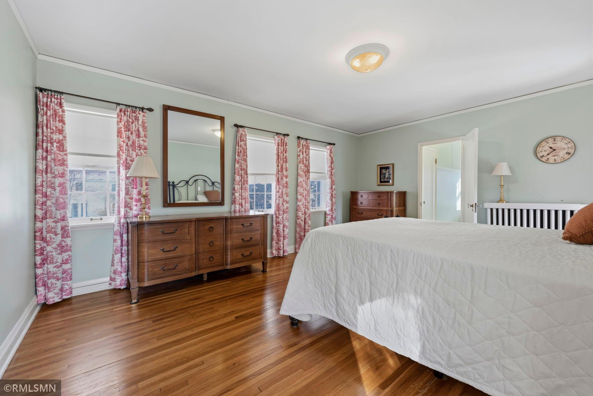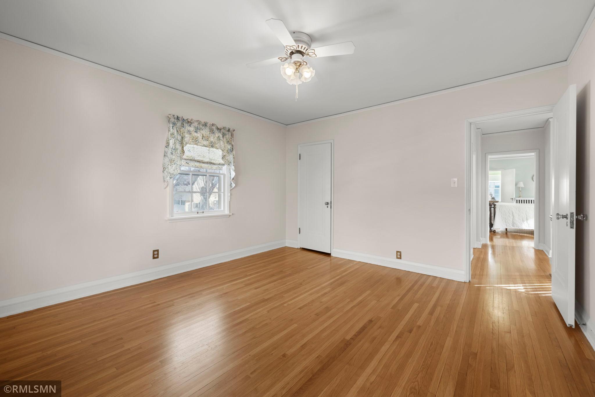 A rare opportunity to join a coveted block in the Lynnhurst neighborhood. On a generous Lot and a Half, the unique traditional 4 Bedroom, 3 bathroom home was built in 1927. Situated a half-block from Minnehaha Creek parkway, Lynnhurst Park and Burroughs Elementary, it offers easy walking distance to green spaces and miles of Parkway/walking/ biking trails and to Lake Harriet. The exterior boasts steeply pitched roof lines with French doors to a lovely screened side porch opening into the living room with a separate exterior entrance. The interior shines with immaculate wooden floors. An open, spindled staircase leads to the upper level, a generous upper windowed landing and access to each of the 4 bedrooms, a full bath, and a lovely 3/4 bath with a walk-in shower. The second level has 4 spacious bedrooms with more beautiful hardwood floors. The Master Bedroom has a walk-in closet with a window and 2 separate interior closets, and the 4th bedroom is attached to an outdoor deck/balcony. The house is trimmed with extensive crown moldings and baseboards. The living room has a mantled brick-faced, glass-enclosed fireplace between shuttered windows, and an arched built-in shelving feature. The living room continues past the open staircase and flows into the formal dining room, which is adjacent to the separate eat-in kitchen. The kitchen has stainless appliances, with new refrigerator and range, high ceilings and large windows. In the rear of the house there is a large, sunny family room with a gas brick fireplace and an adjacent half bath. The spacious fenced back yard has mature trees, and spaces to enjoy time on the patio. The extra large lot offers exceptional space to create beautiful gardens. A detached double garage and a concrete driveway off the alley for up to 3 cars supplements available on-street parking on Irving Avenue.