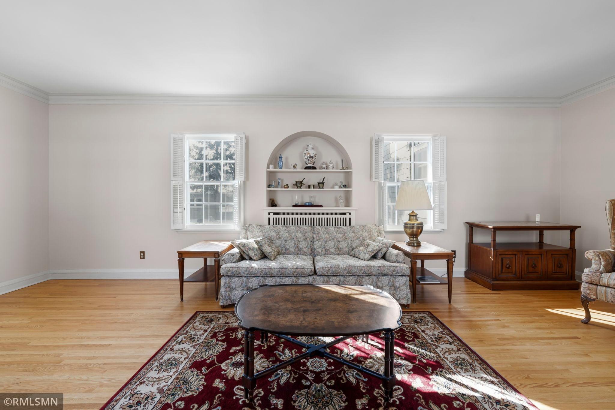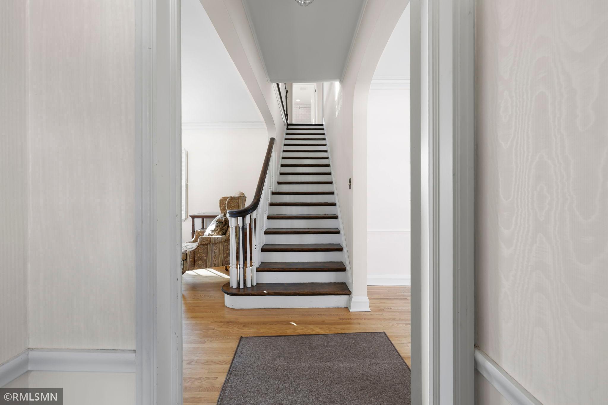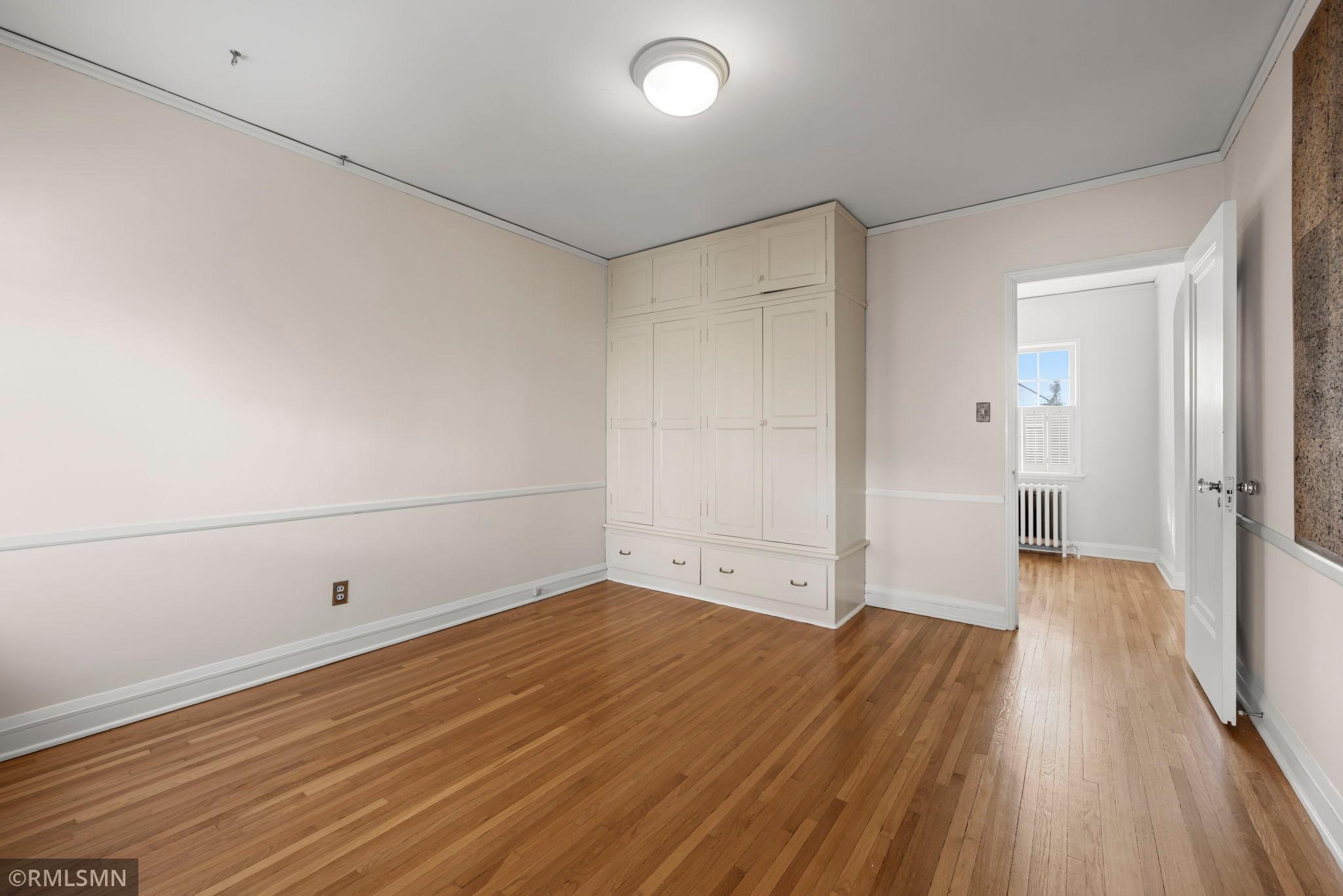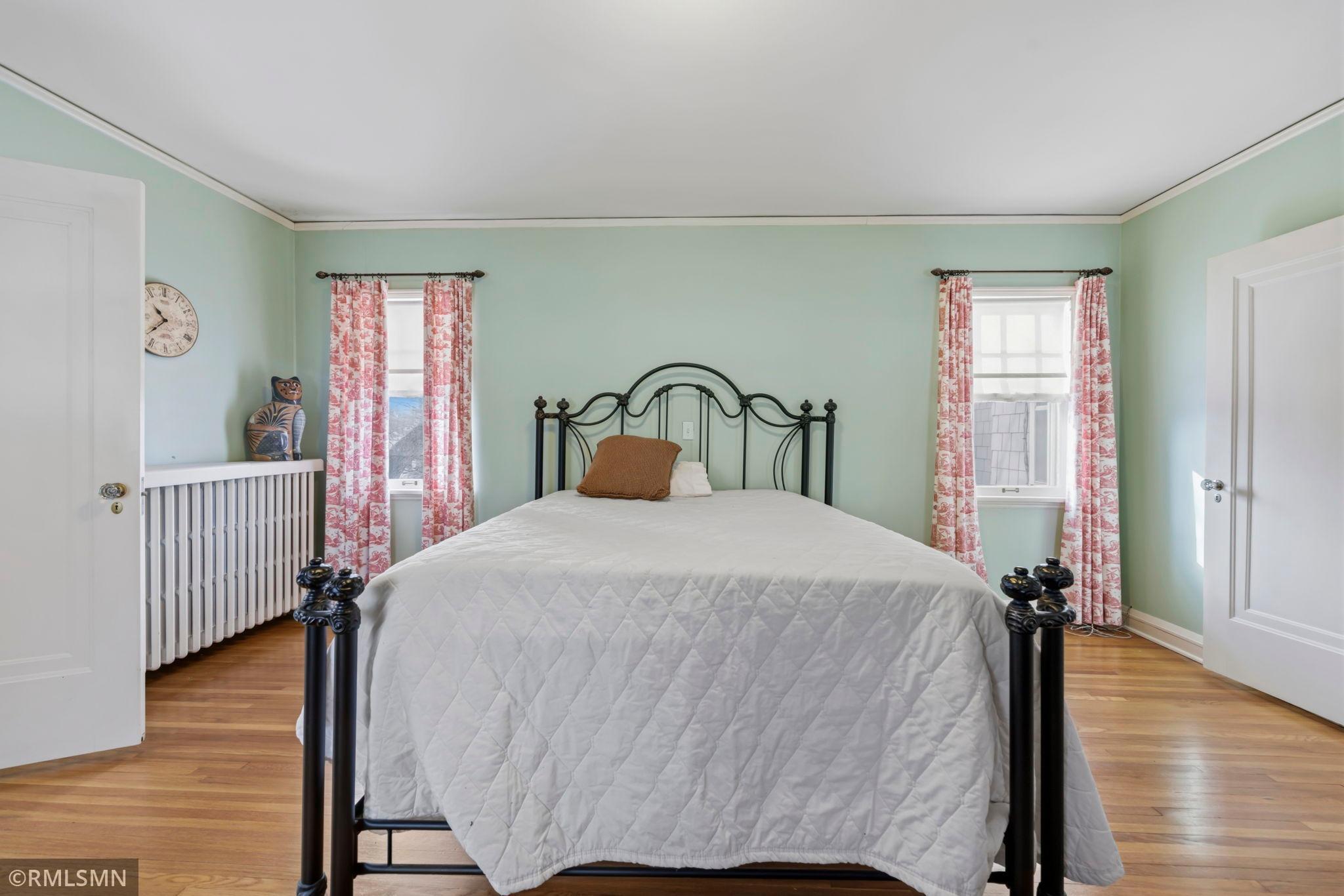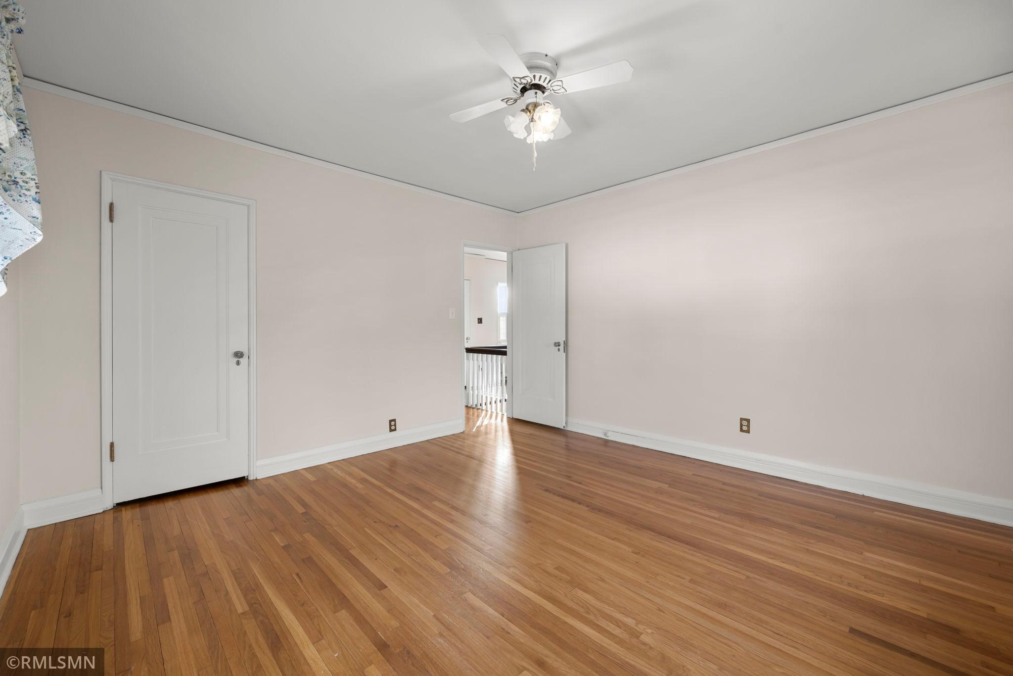 A rare opportunity to join a coveted block in the Lynnhurst neighborhood. On a generous Lot and a Half, the unique traditional 4 Bedroom, 3 bathroom home was built in 1927. Situated a half-block from Minnehaha Creek parkway, Lynnhurst Park and Burroughs Elementary, it offers easy walking distance to green spaces and miles of Parkway/walking/ biking trails and to Lake Harriet. The exterior boasts steeply pitched roof lines with French doors to a lovely screened side porch opening into the living room with a separate exterior entrance. The interior shines with immaculate wooden floors. An open, spindled staircase leads to the upper level, a generous upper windowed landing and access to each of the 4 bedrooms, a full bath, and a lovely 3/4 bath with a walk-in shower. The second level has 4 spacious bedrooms with more beautiful hardwood floors. The Master Bedroom has a walk-in closet with a window and 2 separate interior closets, and the 4th bedroom is attached to an outdoor deck/balcony. The house is trimmed with extensive crown moldings and baseboards. The living room has a mantled brick-faced, glass-enclosed fireplace between shuttered windows, and an arched built-in shelving feature. The living room continues past the open staircase and flows into the formal dining room, which is adjacent to the separate eat-in kitchen. The kitchen has stainless appliances, with new refrigerator and range, high ceilings and large windows. In the rear of the house there is a large, sunny family room with a gas brick fireplace and an adjacent half bath. The spacious fenced back yard has mature trees, and spaces to enjoy time on the patio. The extra large lot offers exceptional space to create beautiful gardens. A detached double garage and a concrete driveway off the alley for up to 3 cars supplements available on-street parking on Irving Avenue.