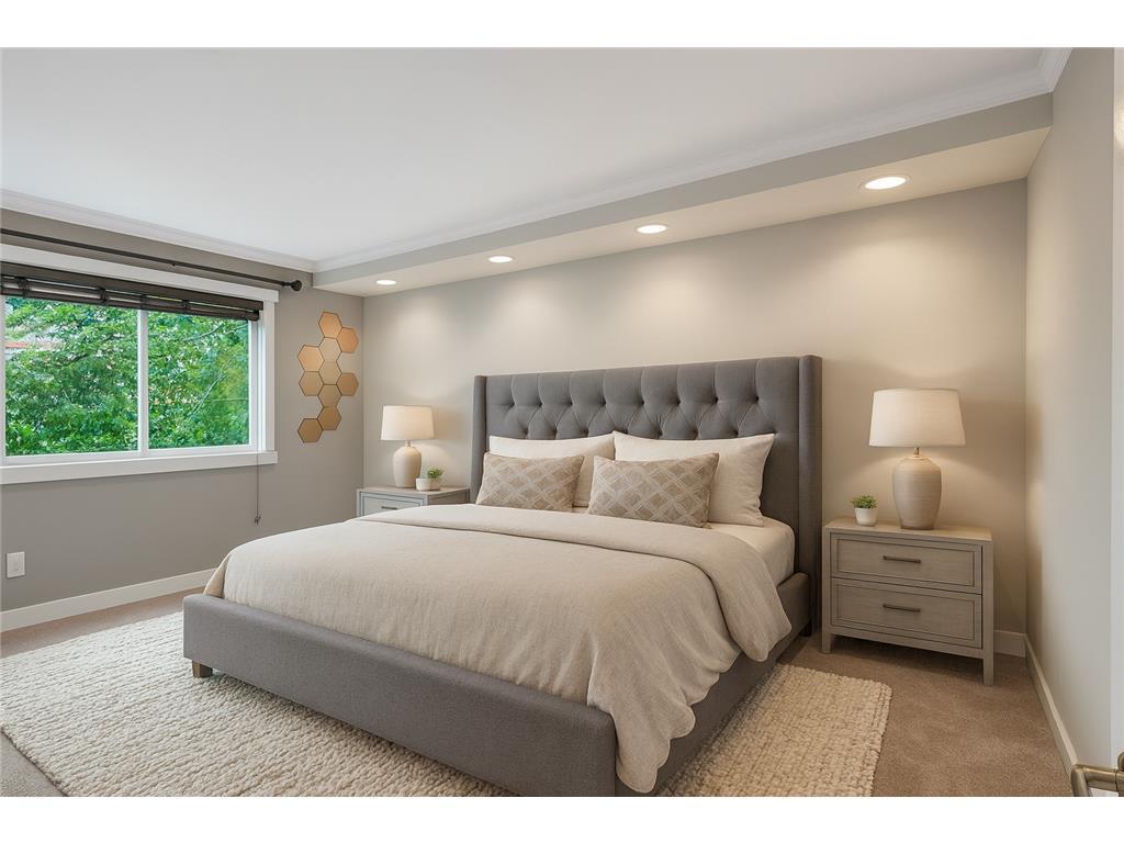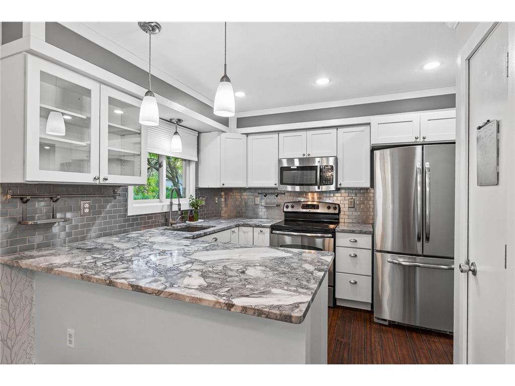 Welcome to this beautifully remodeled split-entry home in the heart of Savage! Inside, you'll find gleaming bamboo floors, fresh paint, and custom stone and tile finishes throughout. The stylish kitchen boasts granite countertops and stainless steel appliances, while the spacious lower-level family room features new tile flooring, built-in surround sound, and a cozy space to unwind. The primary bedroom is a true retreat, offering an oversized walk-through closet with custom built-ins, leading to a fully updated bathroom with a luxurious soaking tub, dual sinks, and an enclosed steam shower. Step outside to a beautifully landscaped, fully fenced backyard complete with a hot tub and a generous deck—perfect for entertaining or relaxing in private. This thoughtfully updated home is truly a must-see—just move in and enjoy!