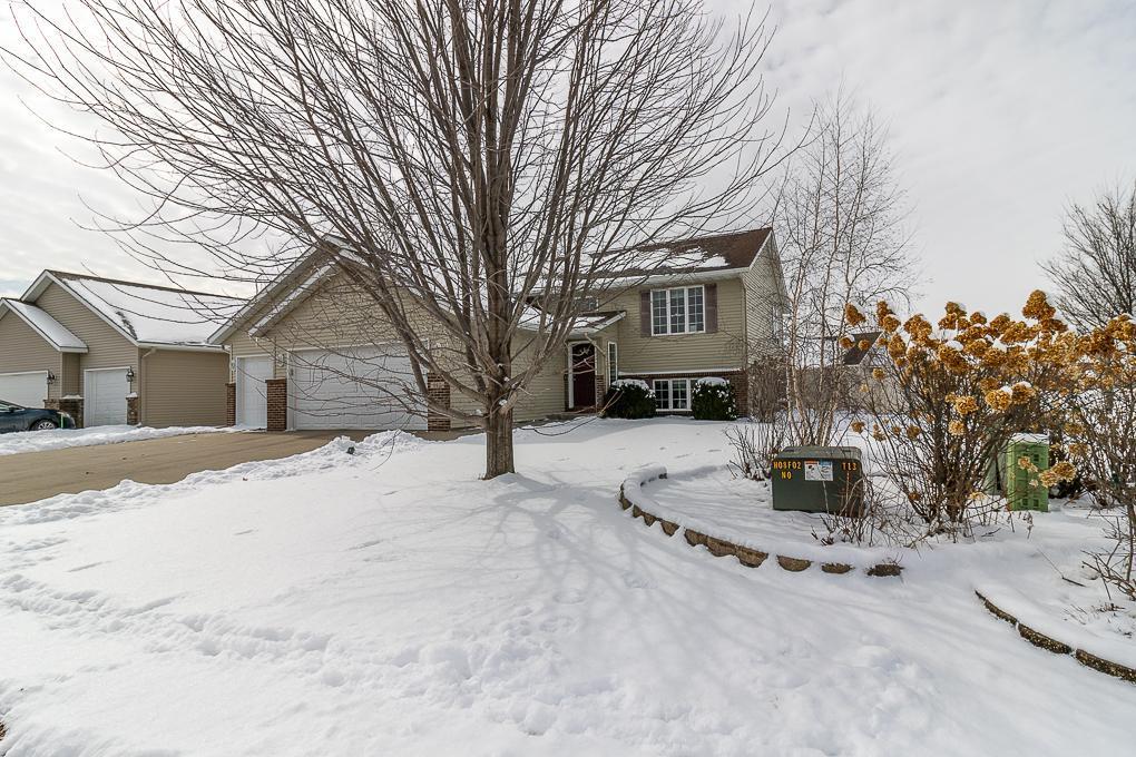 Welcome to this well-maintained split-foyer on a corner lot in desirable Country Club Estates, located directly across from the neighborhood park and walking paths. The main level featuring a spacious living room, kitchen with stainless steel appliances, center island with breakfast bar, and dining area with sliding door to the fenced backyard featuring a maintenance free Trex deck and a stamped concrete patio with newer hot tub that stays. The main floor offers two bedrooms, including the primary with direct bath access. The lower level includes a large family room with daylight windows and dry bar area, two additional bedrooms, a ¾ bath, and laundry/mechanical room. Recent updates include fresh paint in the upper level, 2023 includes a new furnace, AC, Trex deck, stamped concrete patio, LifeSmart hot tub and in 2022 a new water heater. The garage is wired for EV charging station. Storage shed, wood and firepit ring stays.
