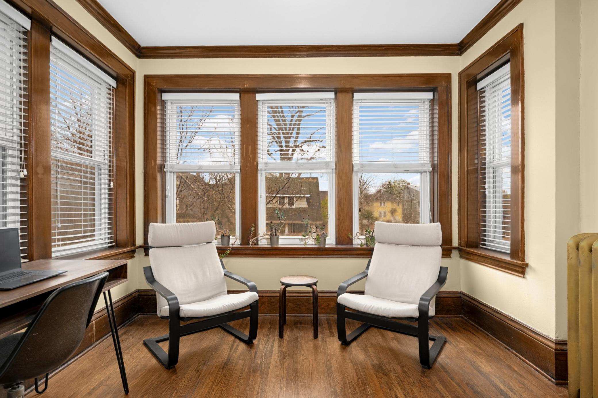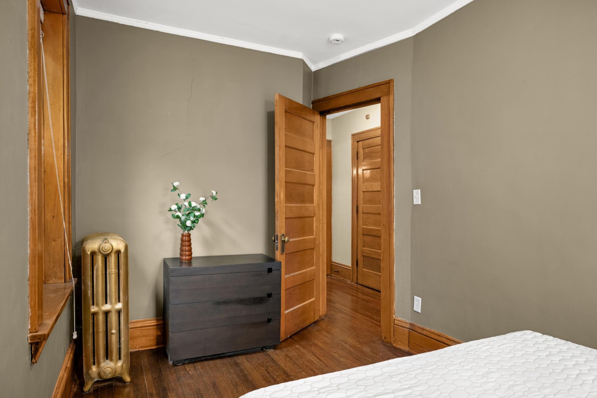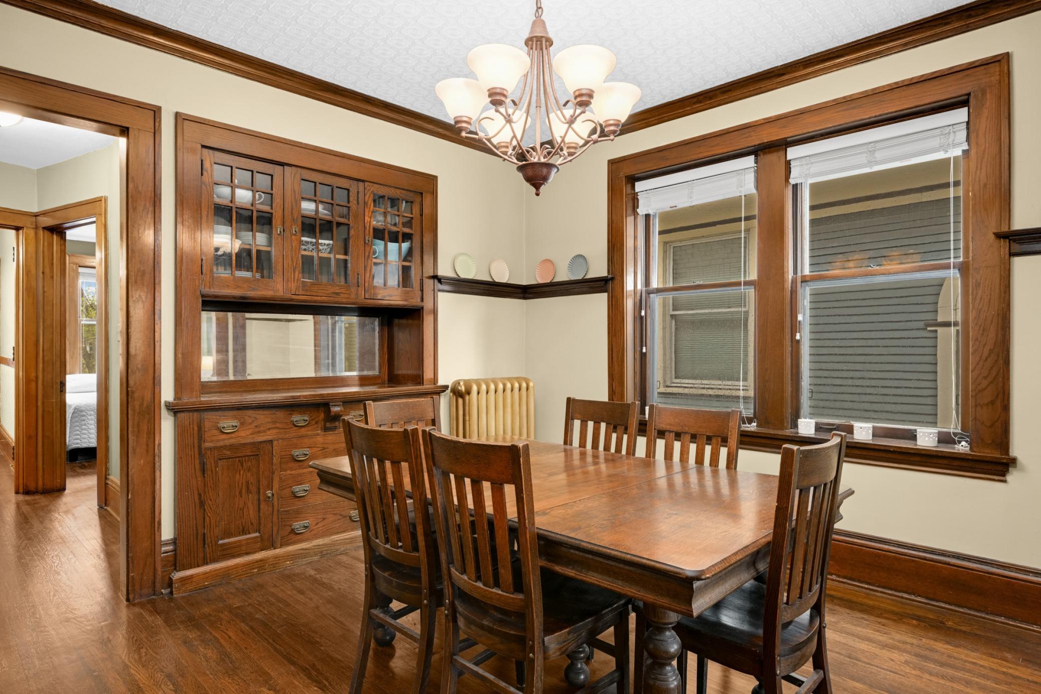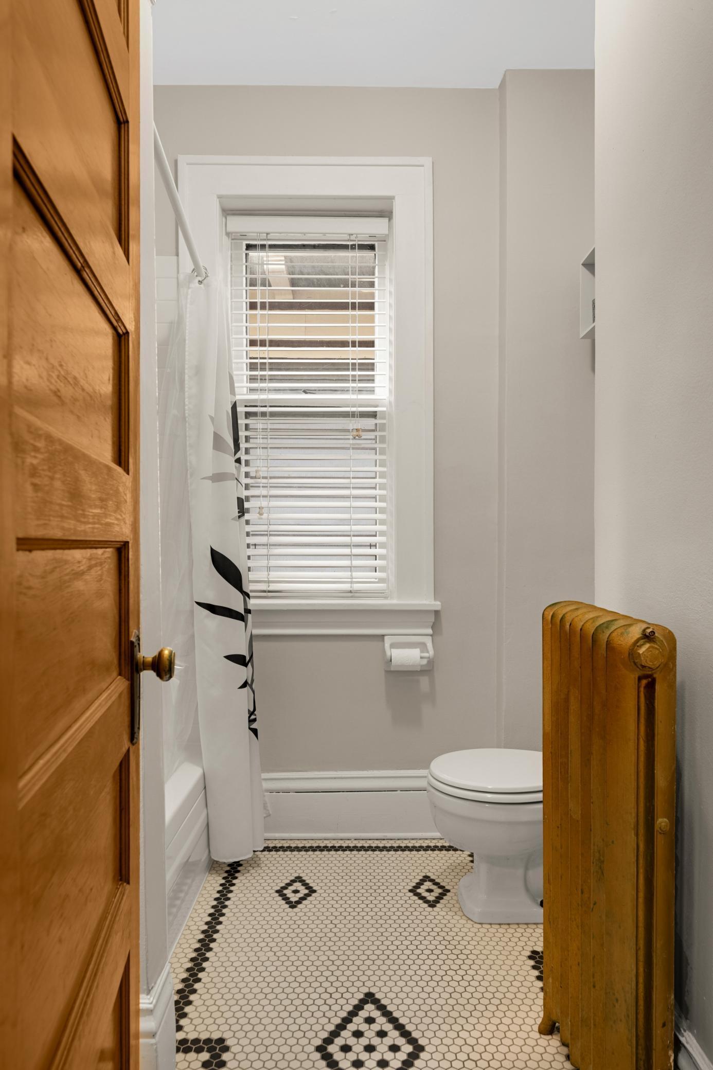 This beautifully maintained one-bedroom condo combines old-world charm with modern updates, offering the convenience of easy, one-level living. Gleaming hardwood floors flow throughout, creating a warm and inviting atmosphere, A bright, sun-filled sunroom provides the perfect space for a home office or cozy retreat. The spacious dining room features a classic built-in buffet, ideal for entertaining or additional storage. The updated bathroom showcases elegant ceramic tile and a stunning tiled floor. The fully renovated custom kitchen is a standout, complete with stainless steel appliances, quartz countertops, and stylish finishes. Enjoy abundant closet space throughout, plus an additional storage locker in the lower level. An off-street parking pad adds extra convenience. Ideally located just steps from popular restaurants, shopping, and easy highway access, this condo offers the perfect blend of character, comfort, and location.