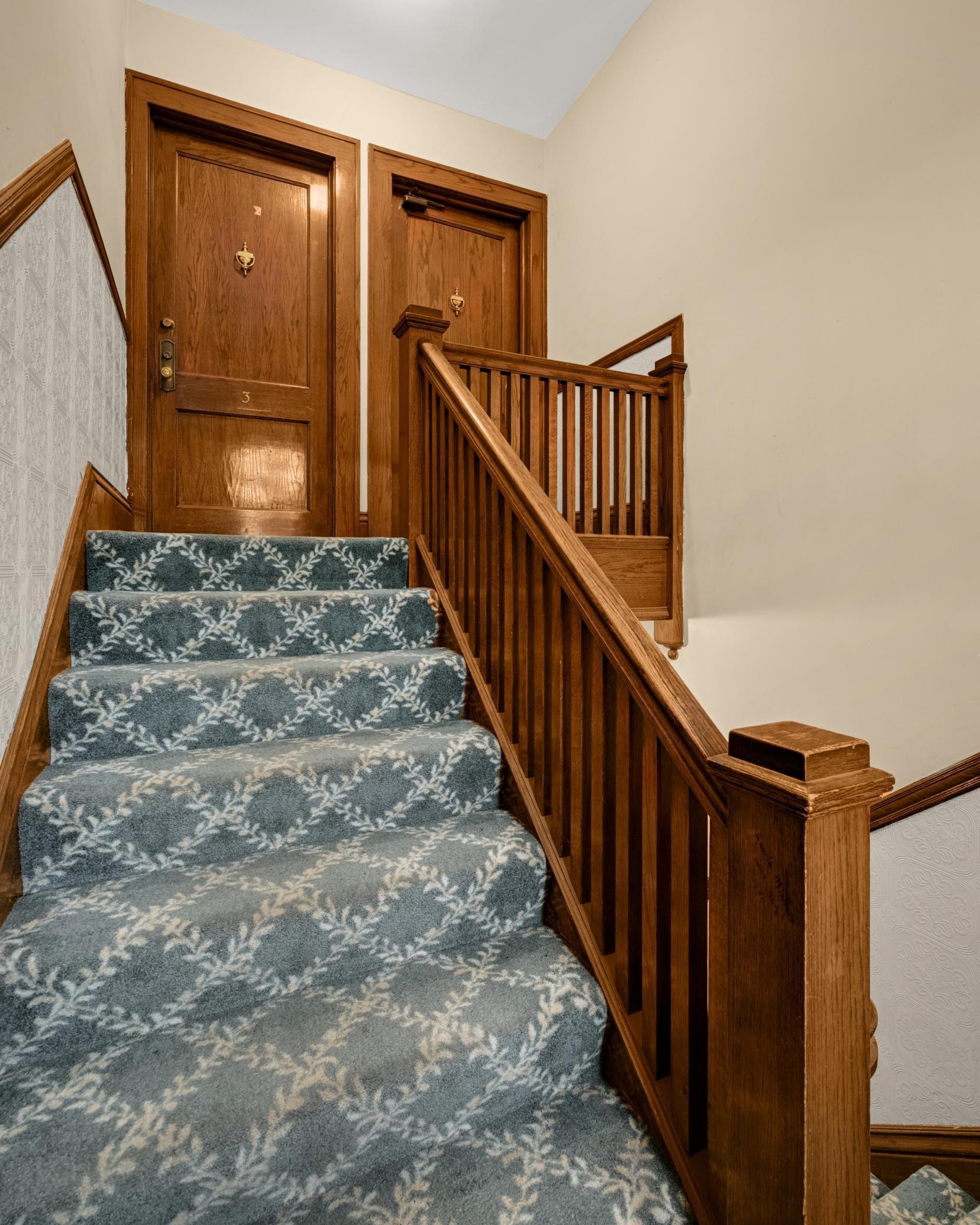 Public Remarks: This beautifully maintained one-bedroom condo combines old-world charm with modern updates, offering the convenience of easy, one-level living. Gleaming hardwood floors flow throughout, creating a warm and inviting atmosphere, A bright, sun-filled sunroom provides the perfect space for a home office or cozy retreat. The spacious dining room features a classic built-in buffet, ideal for entertaining or additional storage. The updated bathroom showcases elegant ceramic tile and a stunning tiled floor. The fully renovated custom kitchen is a standout, complete with stainless steel appliances, quartz countertops, and stylish finishes. Enjoy abundant closet space throughout, plus an additional storage locker in the lower level. An