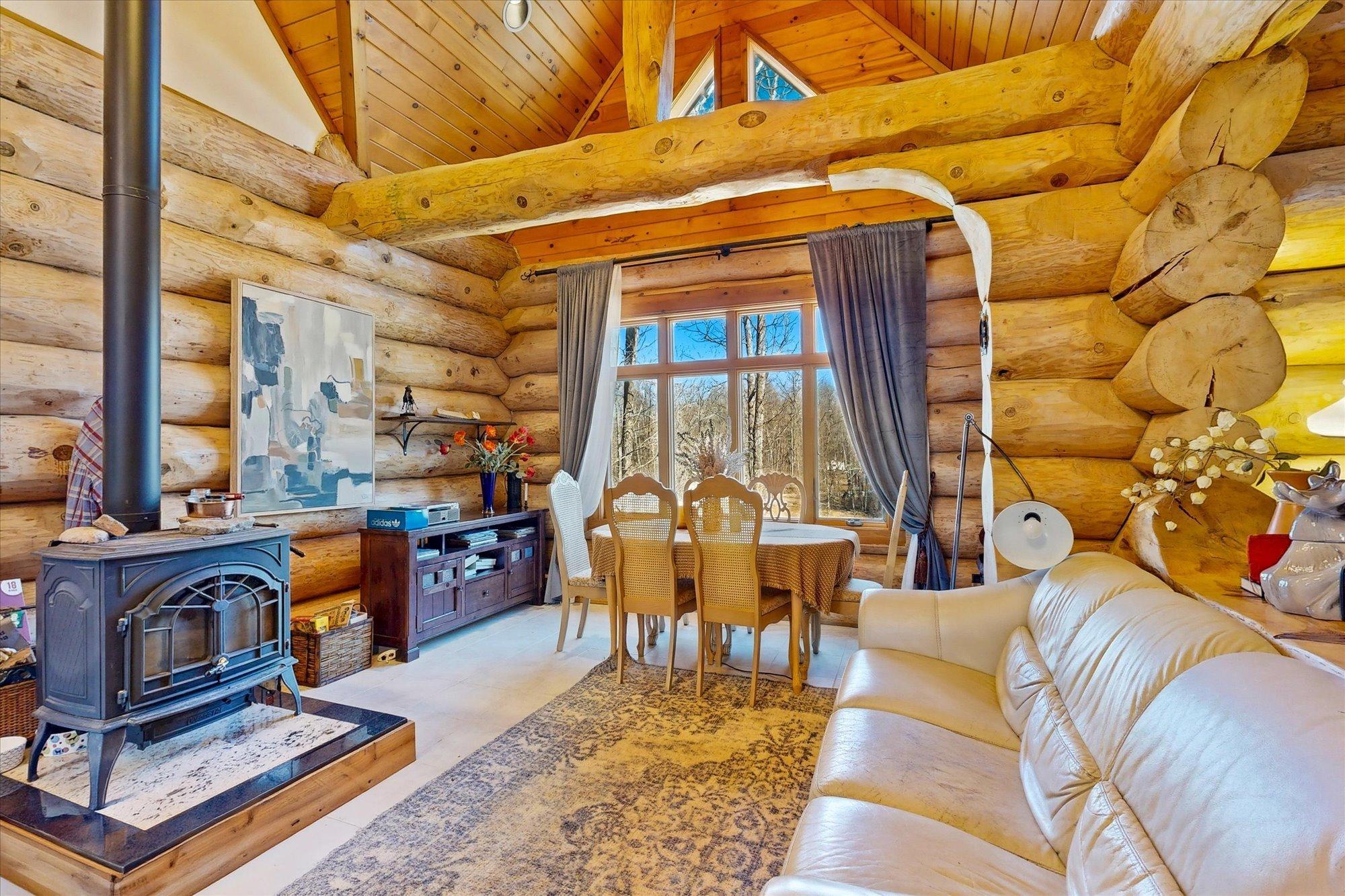 Public Remarks: Charming log cabin in a spectacular location above the gentle Tamarack River, within St. Croix State Forest. This home offers 3 bedrooms, 3 bathrooms, and over 2,000 finished sq ft, plus a bonus upper level, sauna, and a hidden workshop in the basement. Enjoy peaceful living with direct access to state forest land—perfect for relaxing, fishing, hunting and outdoor adventures.