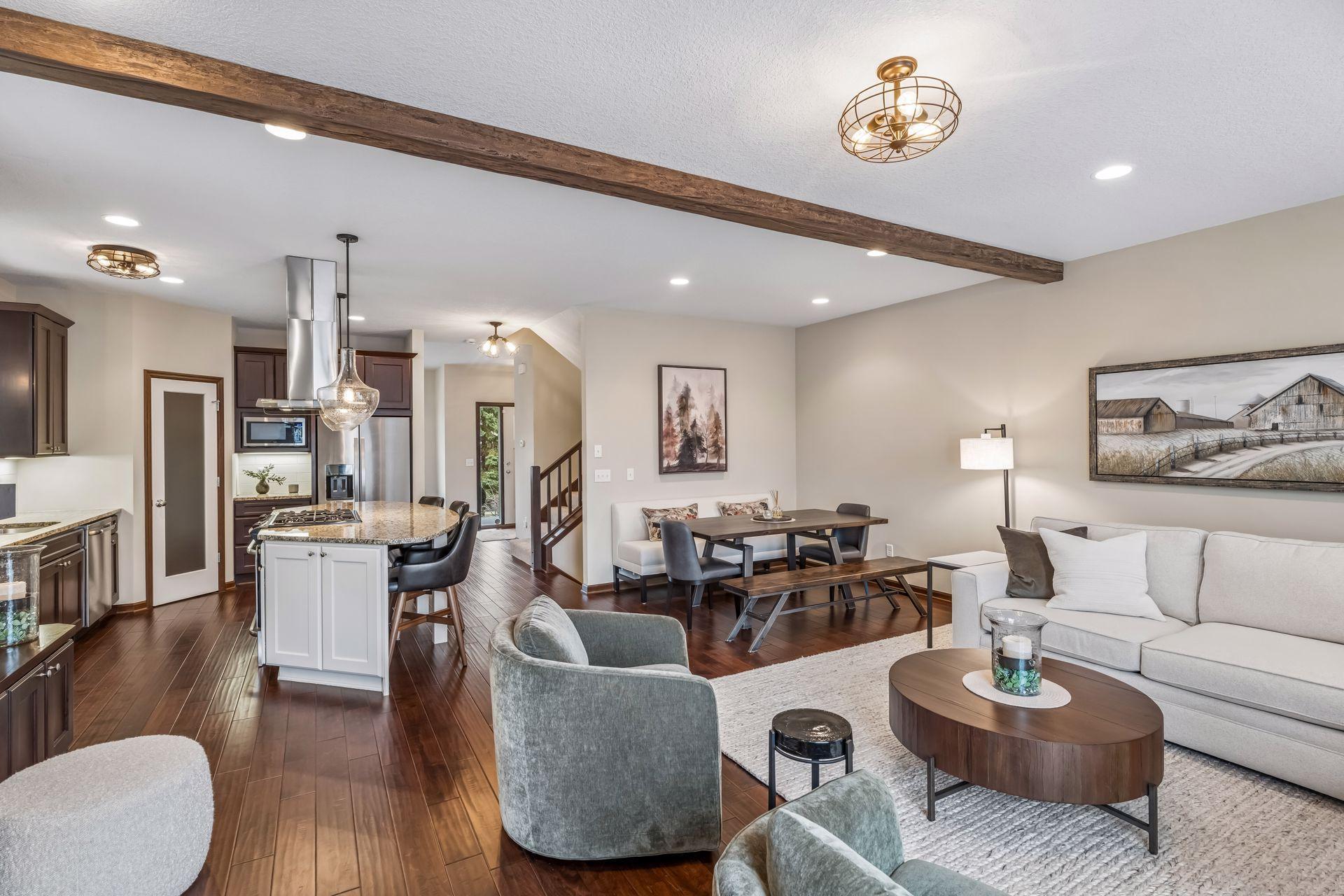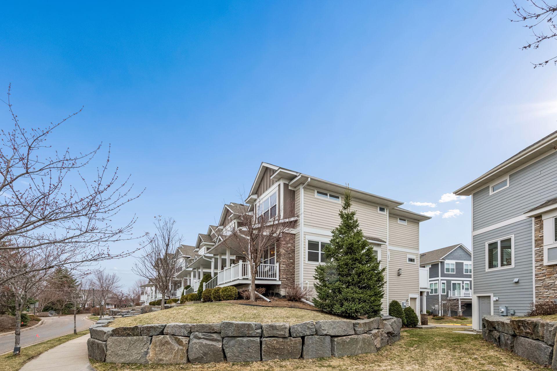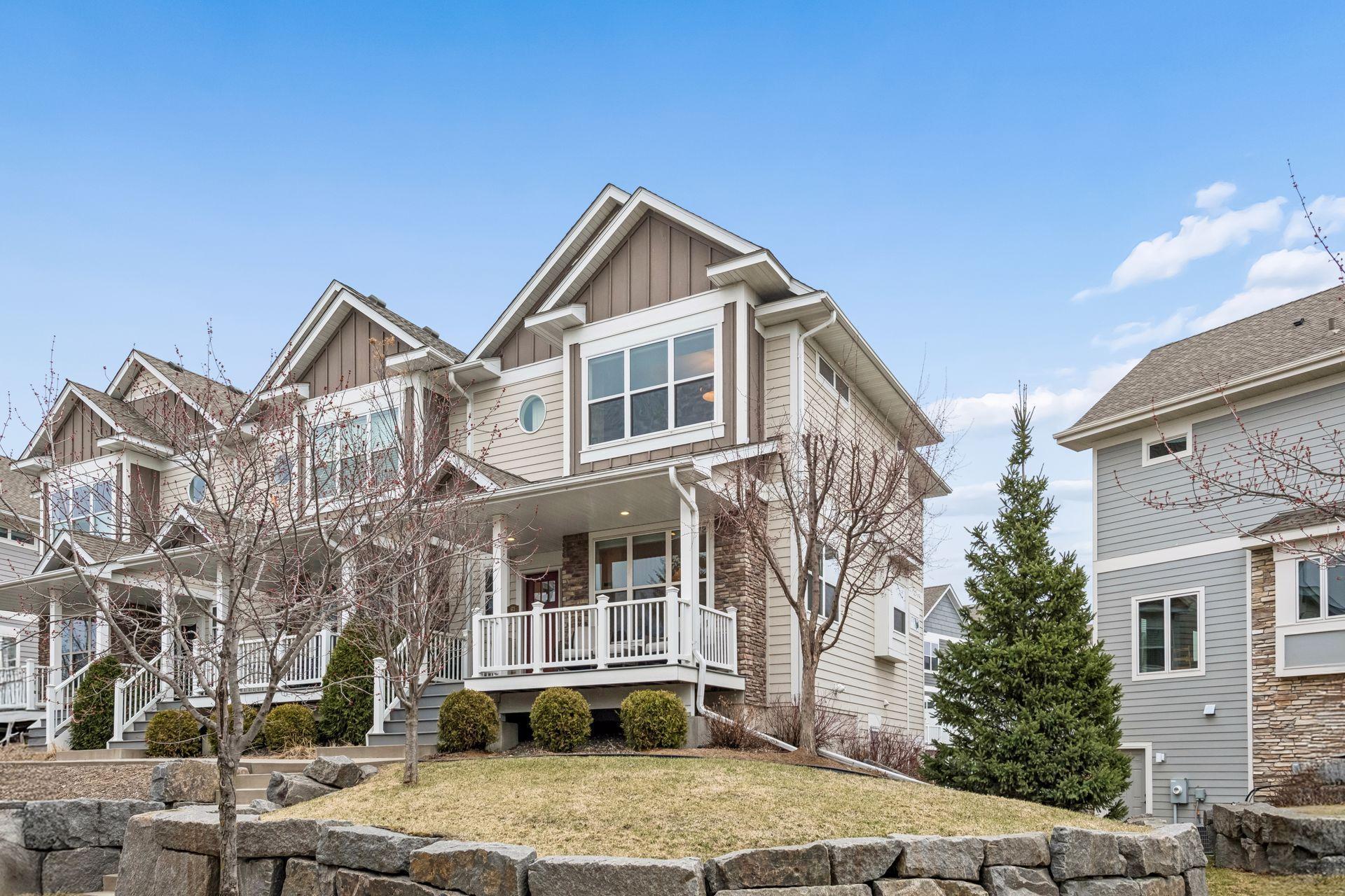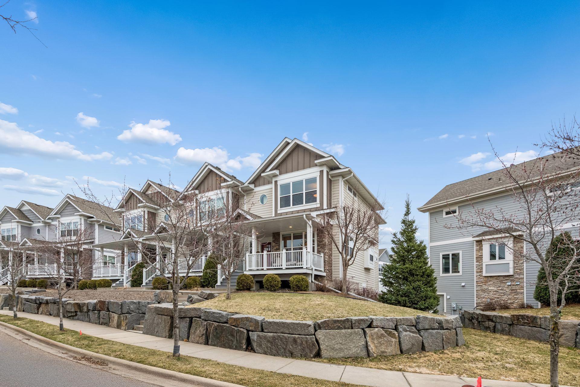 Public Remarks: Like model home, end unit in Stone Bay Community! Bright and open floor plan with 9 ft ceilings and lots of windows. Beamed ceilings, hardwood floors, new light fixtures, Sonos stereo system, owner's suite with fireplace and closet organizers. Fantastic kitchen with center island, granite counters with stainless hood and walk-in pantry. Spacious great room with gas fireplace and built-ins. Perfect for entertaining. Sun Room overlooking the front porch is great sitting room to relax or a main floor office. Upper level has two bedrooms and a loft area for a tv room, sitting room, office or study space. Owner's suite has a walk-in closet and luxurious bathroom with large walk-in shower and soaking tub. Lower level has an exercise family room with a convenient three-quarter bath. Heated garage with epoxy floor and "diamond plated" crown molding and trim is amazing. Easy access to trails, lakes, Baker Park, and downtown Wayzata. House currently has Ring Security System. Upon sale of the home, furniture in the house is available for sale.