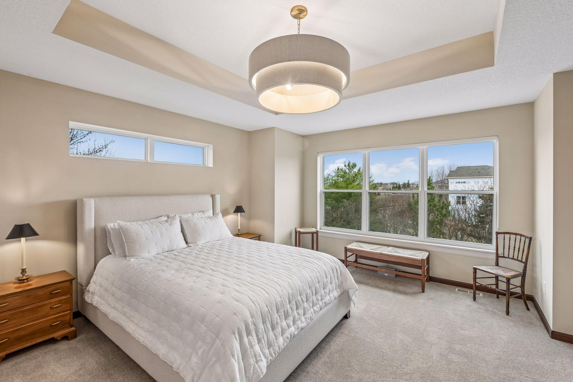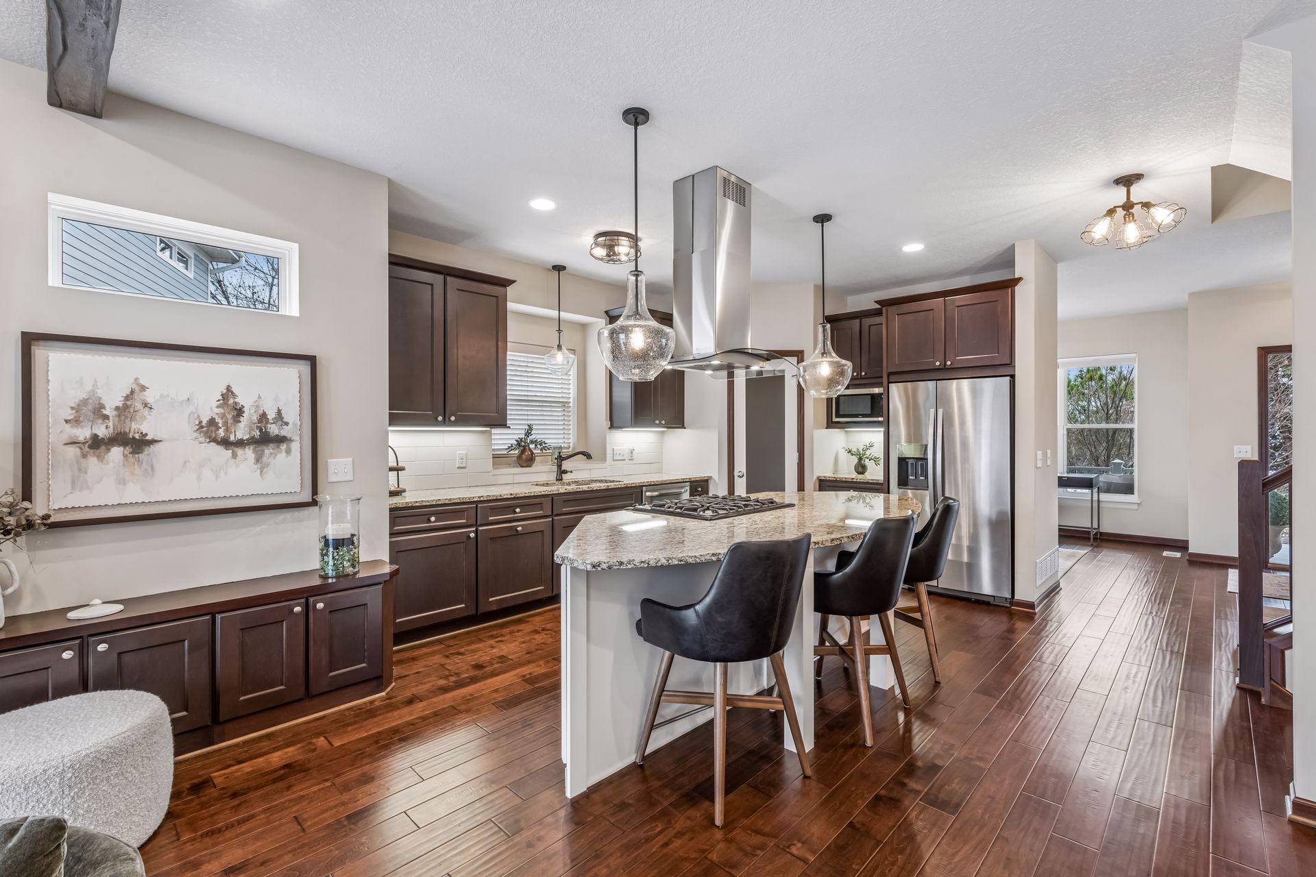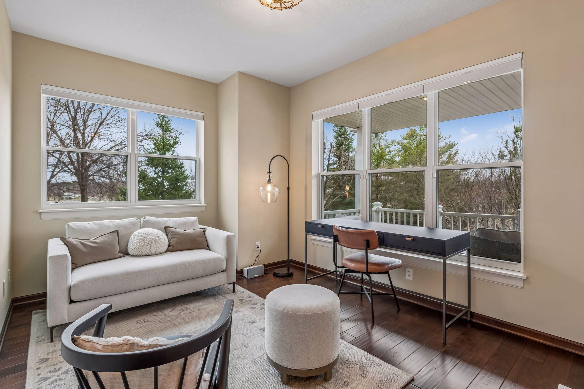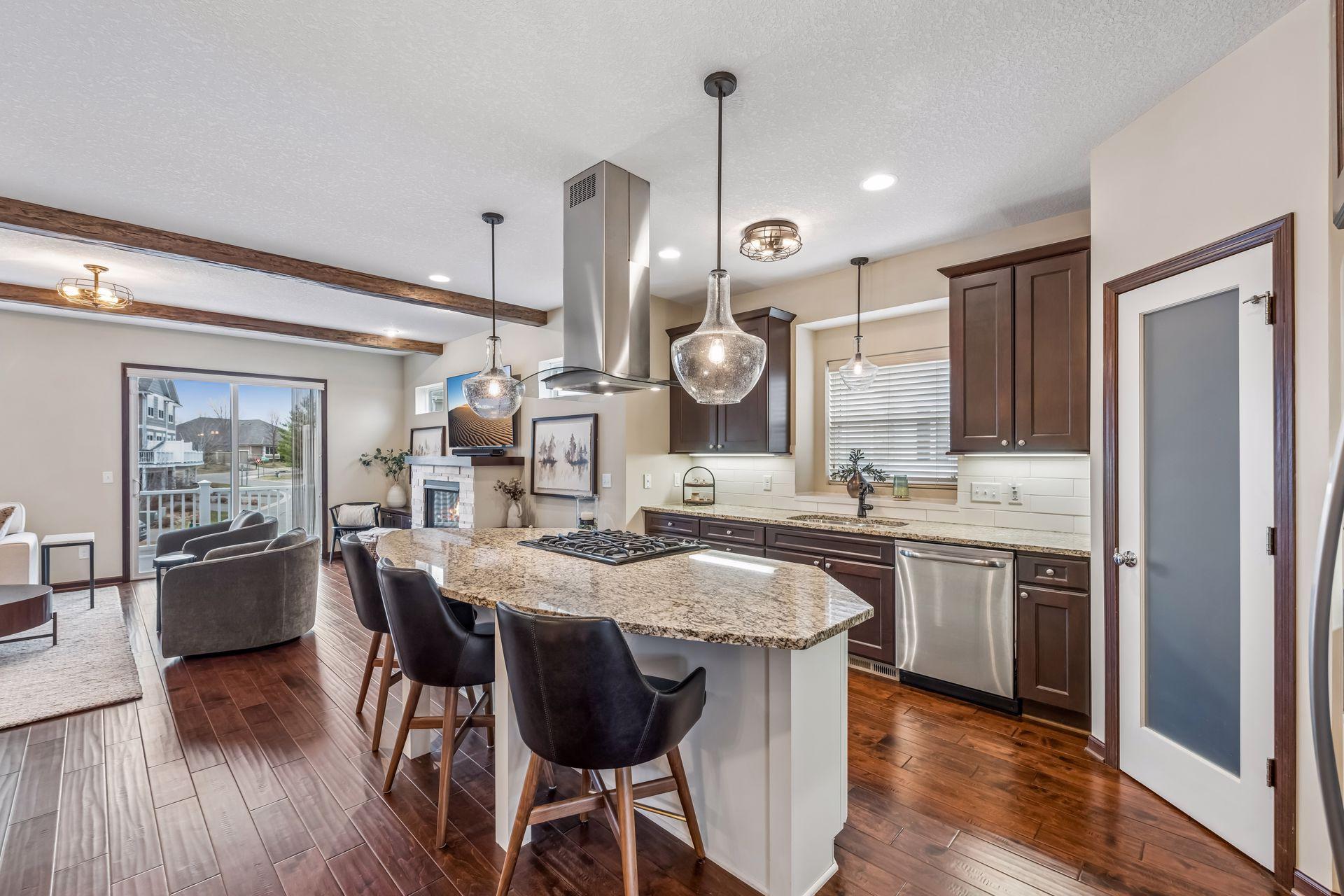 Public Remarks: Like model home, end unit in Stone Bay Community! Bright and open floor plan with 9 ft ceilings and lots of windows. Beamed ceilings, hardwood floors, new light fixtures, Sonos stereo system, owner's suite with fireplace and closet organizers. Fantastic kitchen with center island, granite counters with stainless hood and walk-in pantry. Spacious great room with gas fireplace and built-ins. Perfect for entertaining. Sun Room overlooking the front porch is great sitting room to relax or a main floor office. Upper level has two bedrooms and a loft area for a tv room, sitting room, office or study space. Owner's suite has a walk-in closet and luxurious bathroom with large walk-in shower and soaking tub. Lower level has an exercise family room with a convenient three-quarter bath. Heated garage with epoxy floor and "diamond plated" crown molding and trim is amazing. Easy access to trails, lakes, Baker Park, and downtown Wayzata. House currently has Ring Security System. Upon sale of the home, furniture in the house is available for sale.