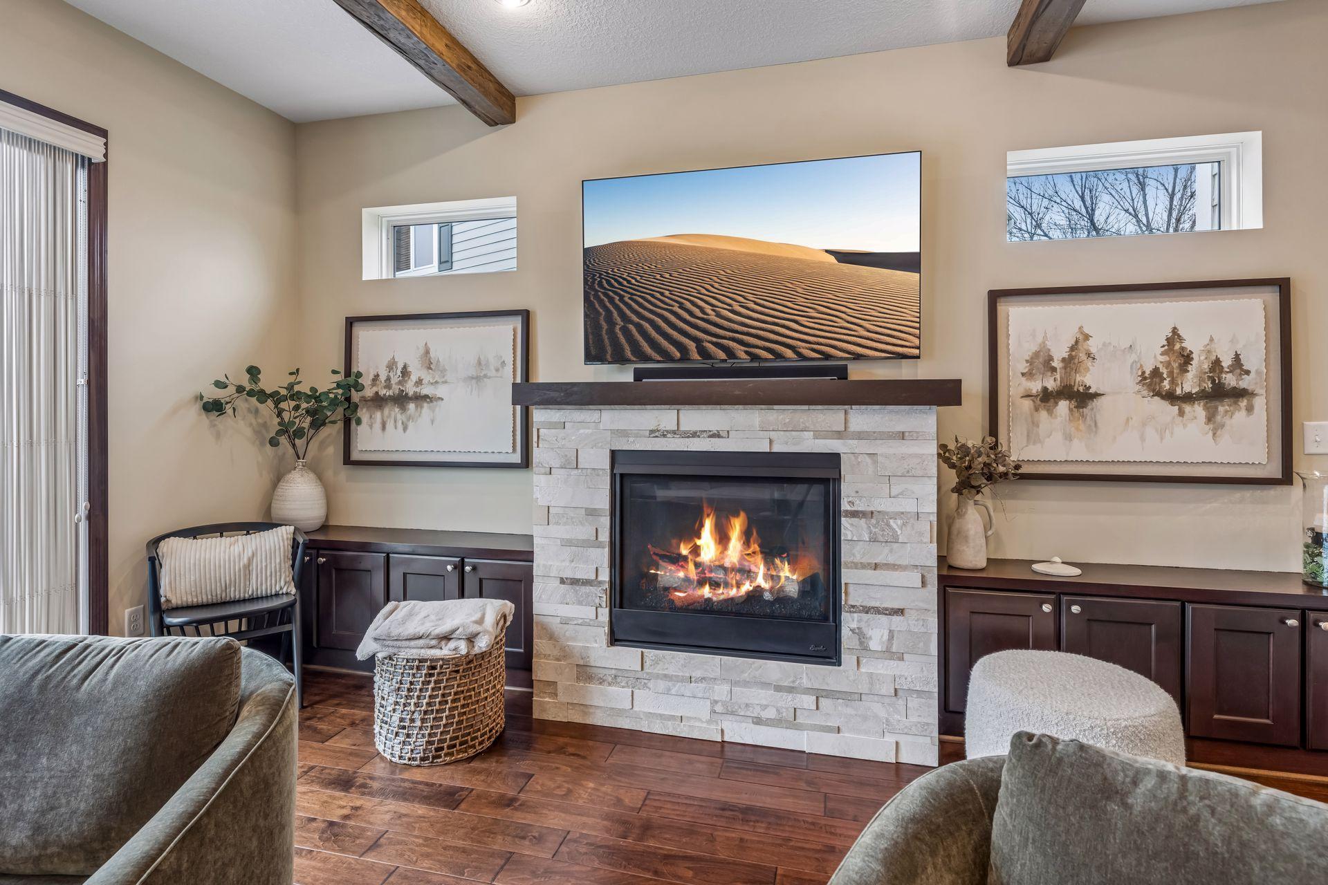 Fireplace Characteristics: Electric; Gas Burning; Living Room; Primary Bedroom